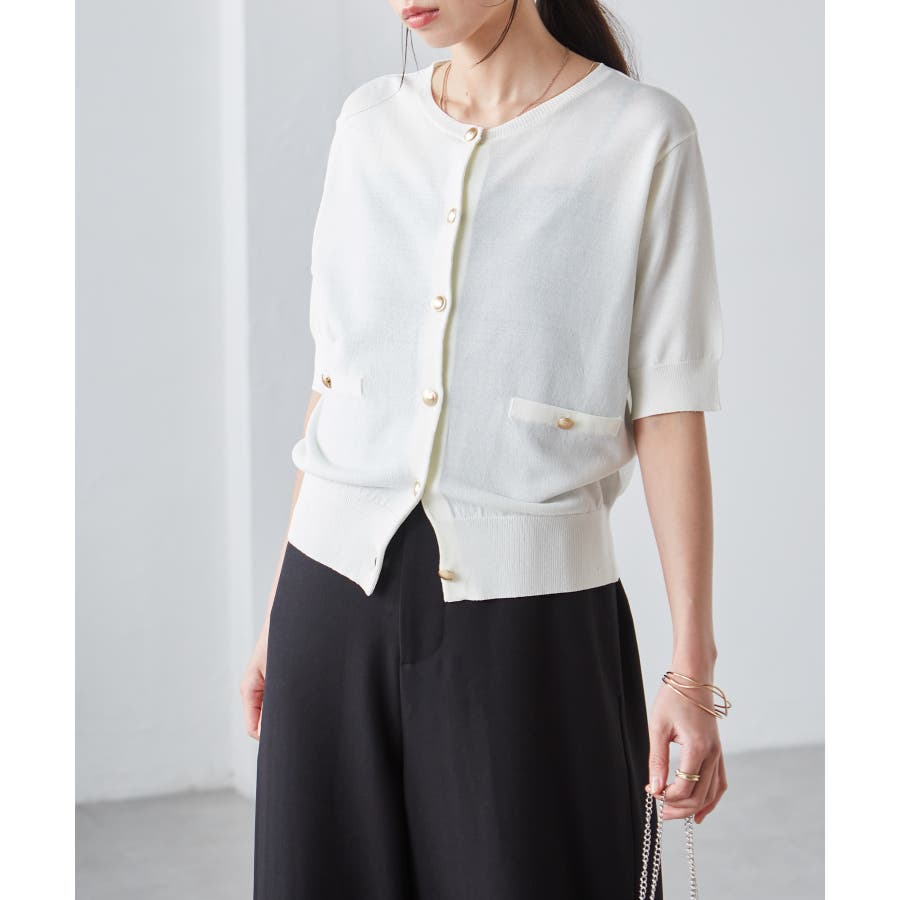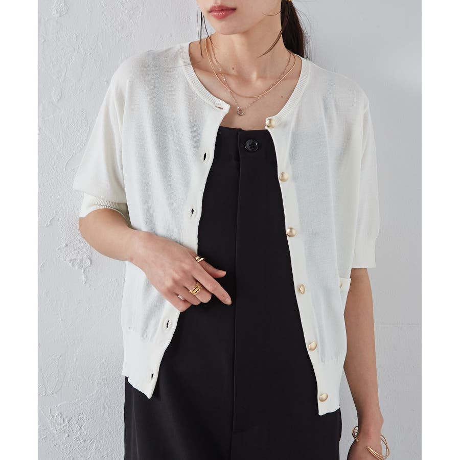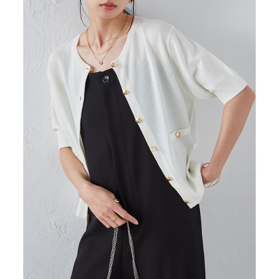 ご好評いただいているゴールド調ボタンニットカーデの夏バージョンが登場!!
