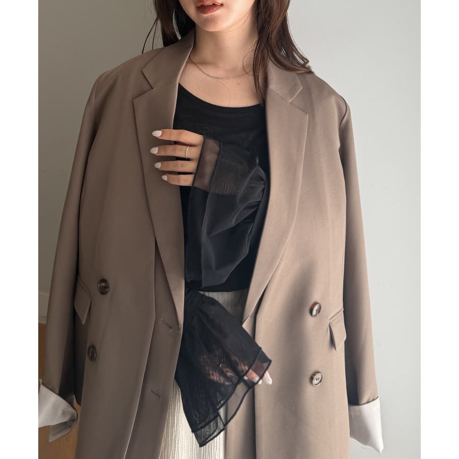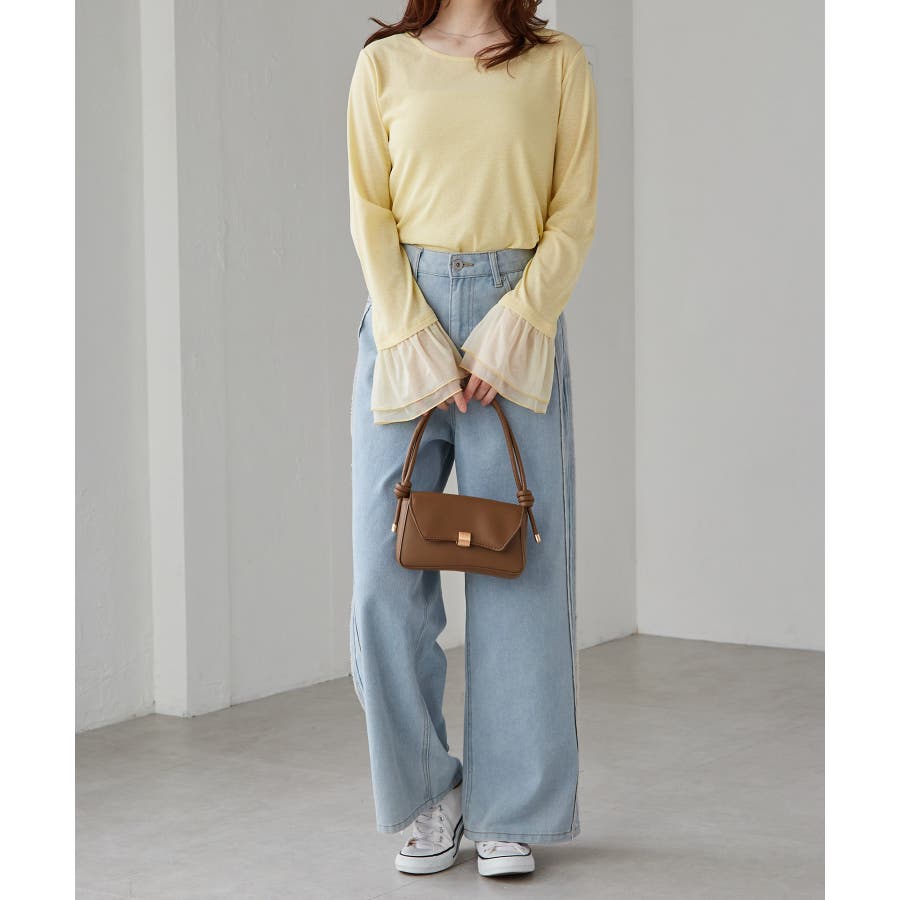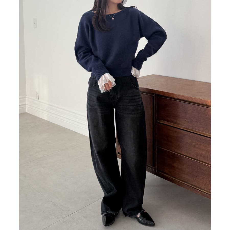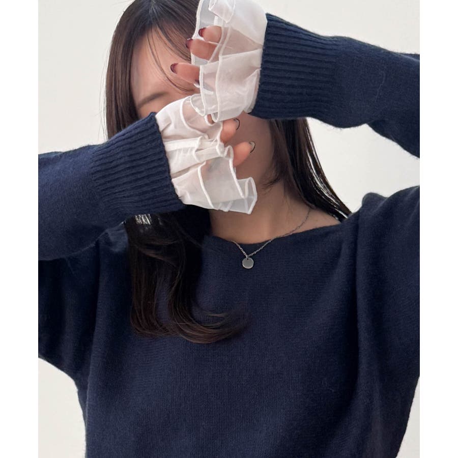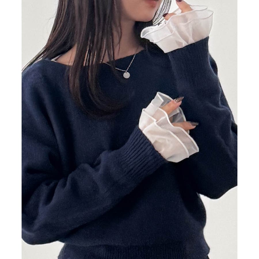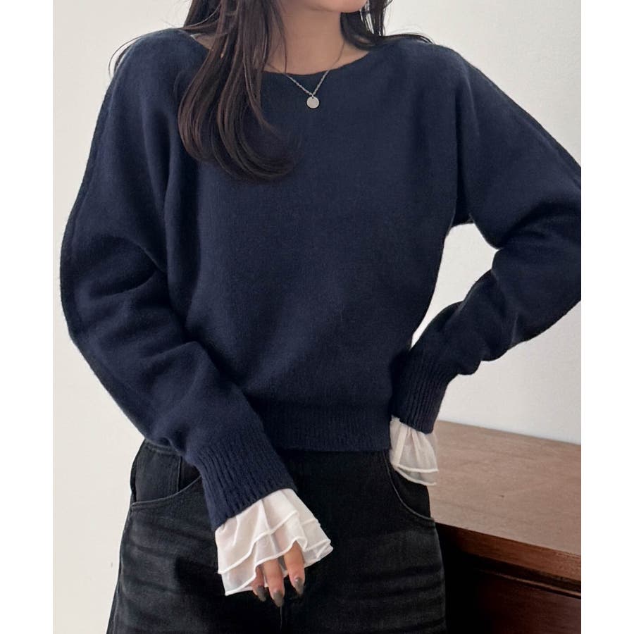 袖口のフレアー袖が女性らしさを演出しニットやスウェット合わせのレイヤードスタイルも決まります。