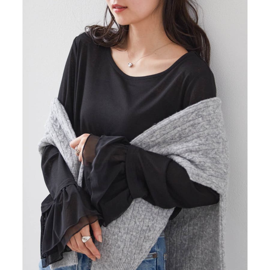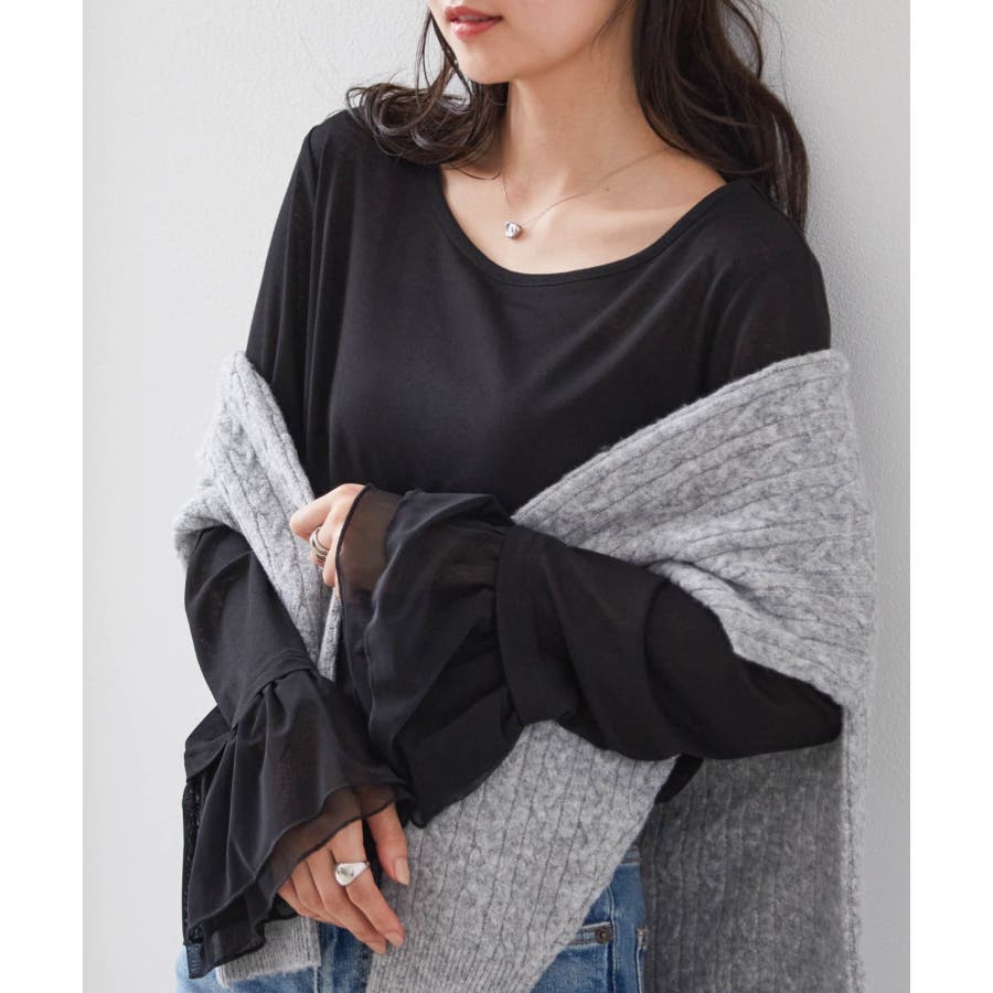 フレアーチュール袖スラブシアーT