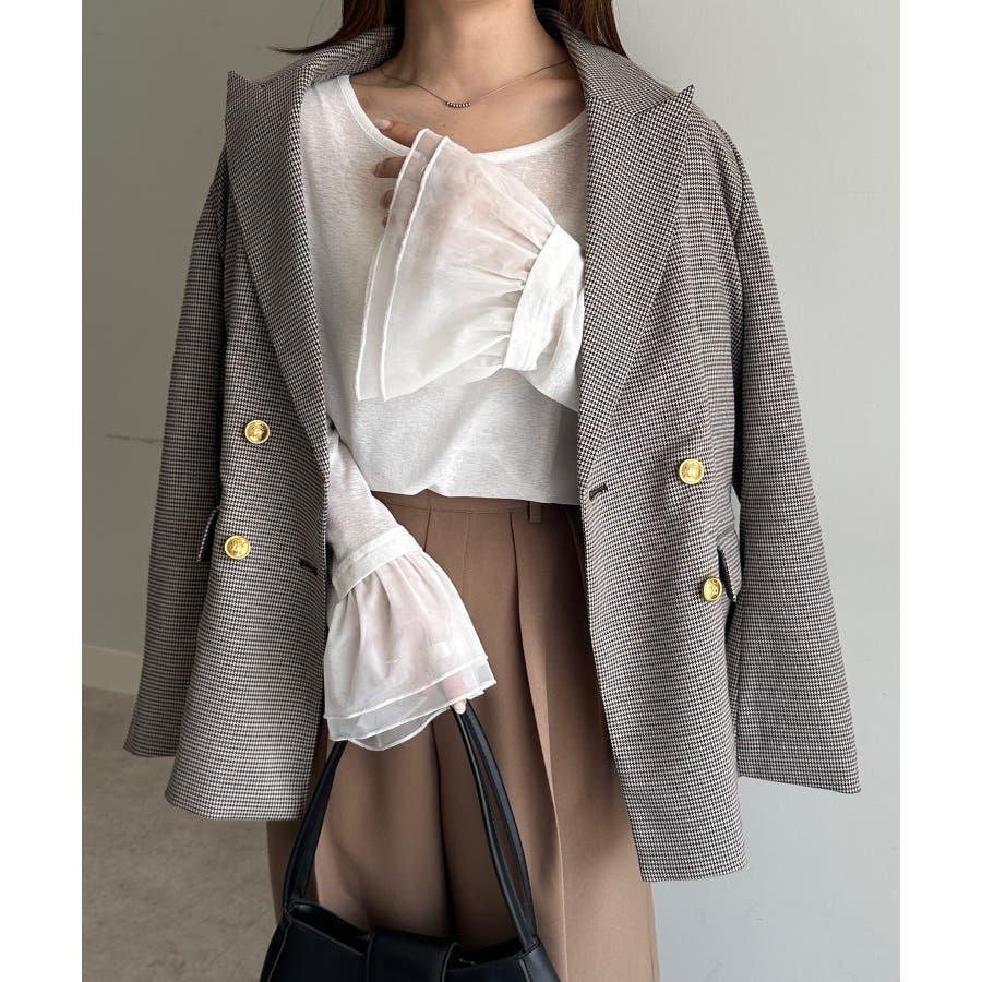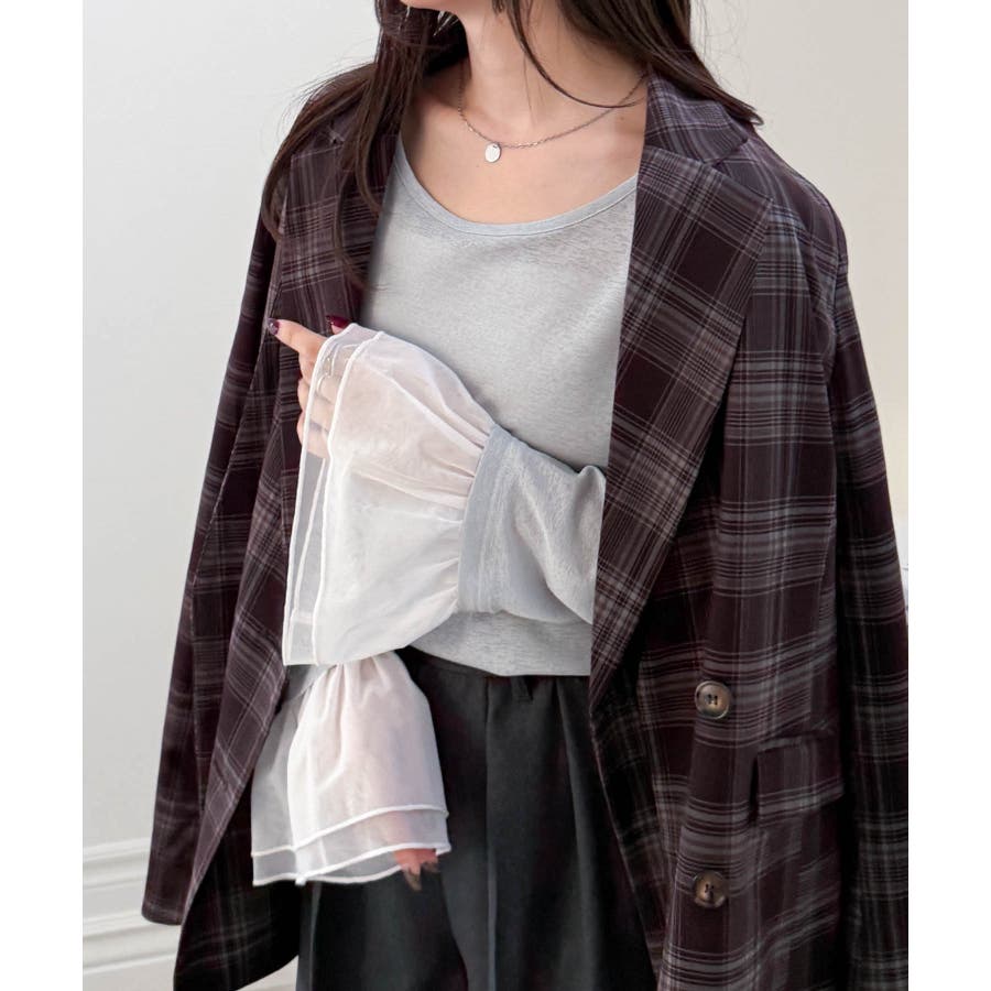 カジュアルなボトムに合わせて頂くとバランス良く、大人女性らしい落ち着いたフェミニンスタイルに仕上がります。