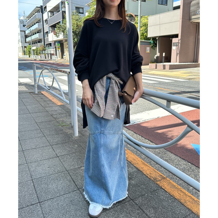 デニムパンツでカジュアルに、ナロースカートやスラックス合わせでキレイめにと合わせるアイテムによってテイストを変えられる万能アイテムです。