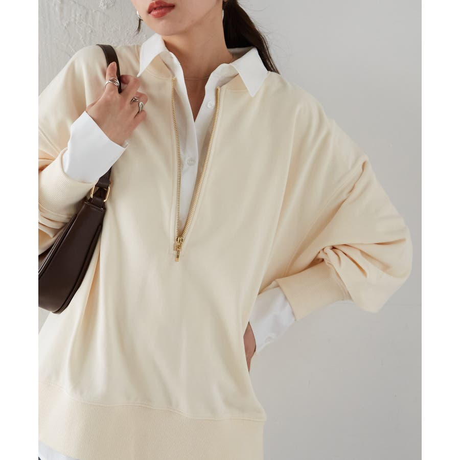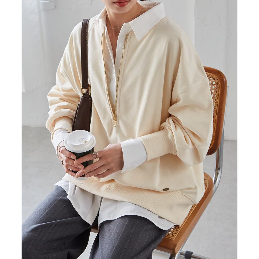 トレンドライクなハーフジップデザインが目を惹く一枚です。