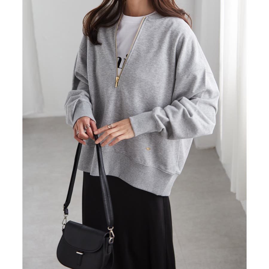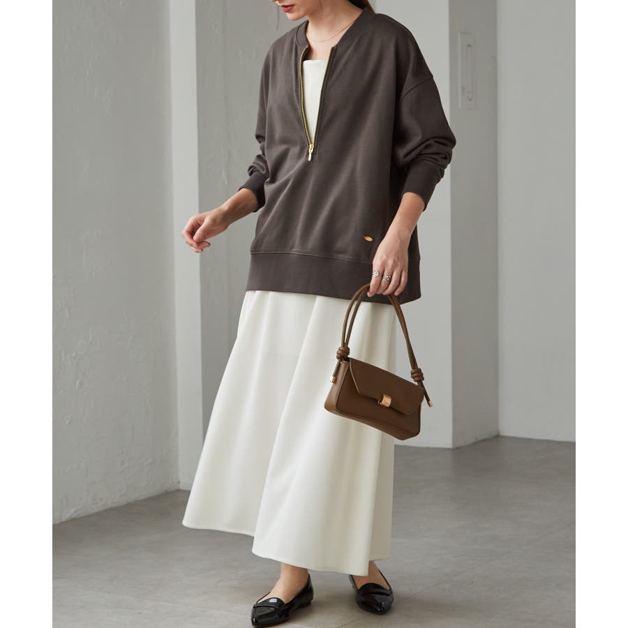 ジップをざっくり開けて、メンズライクなパンツやタイトスカートと合わせれば、抜け感のある大人カジュアルコーデが完成します。