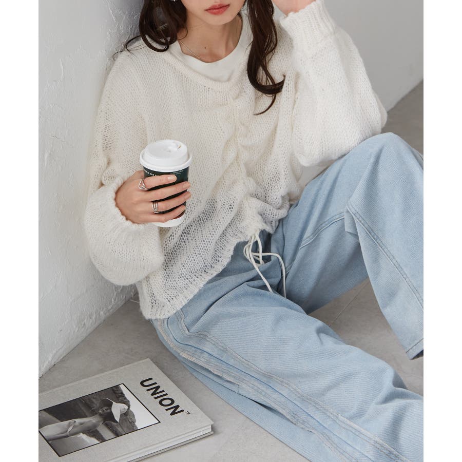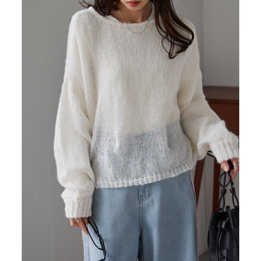 ざっくりと編んだシアー感が魅力の、モヘアライクなニットプルオーバー。