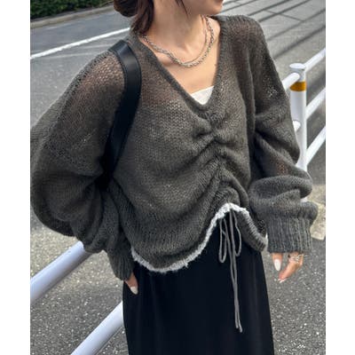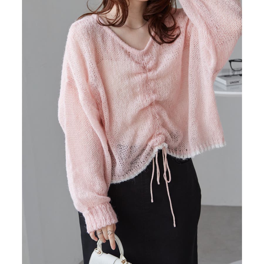 ・透け感のある編地が大人可愛いモヘアタッチニット