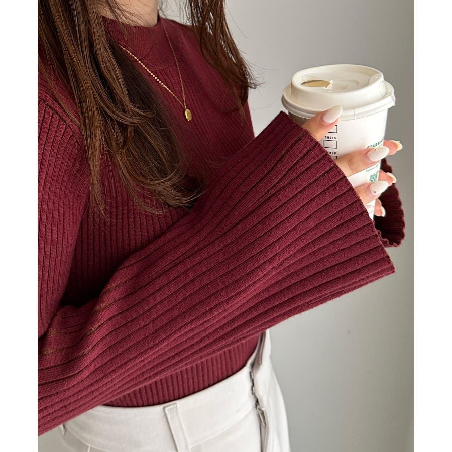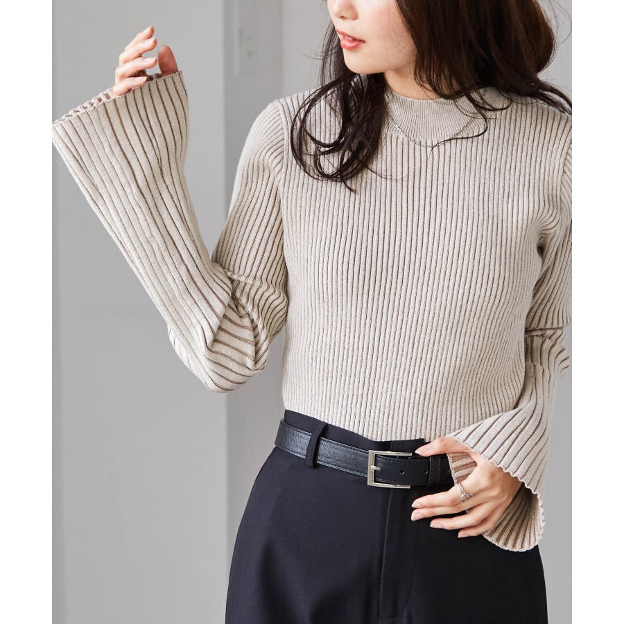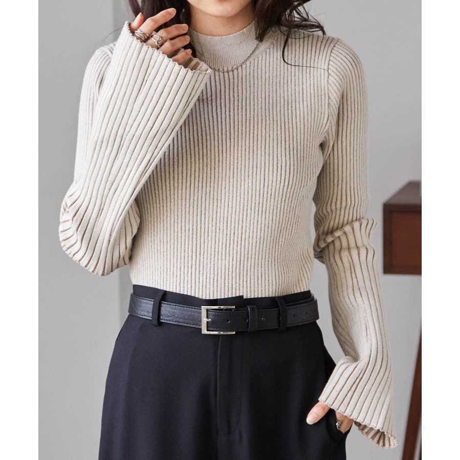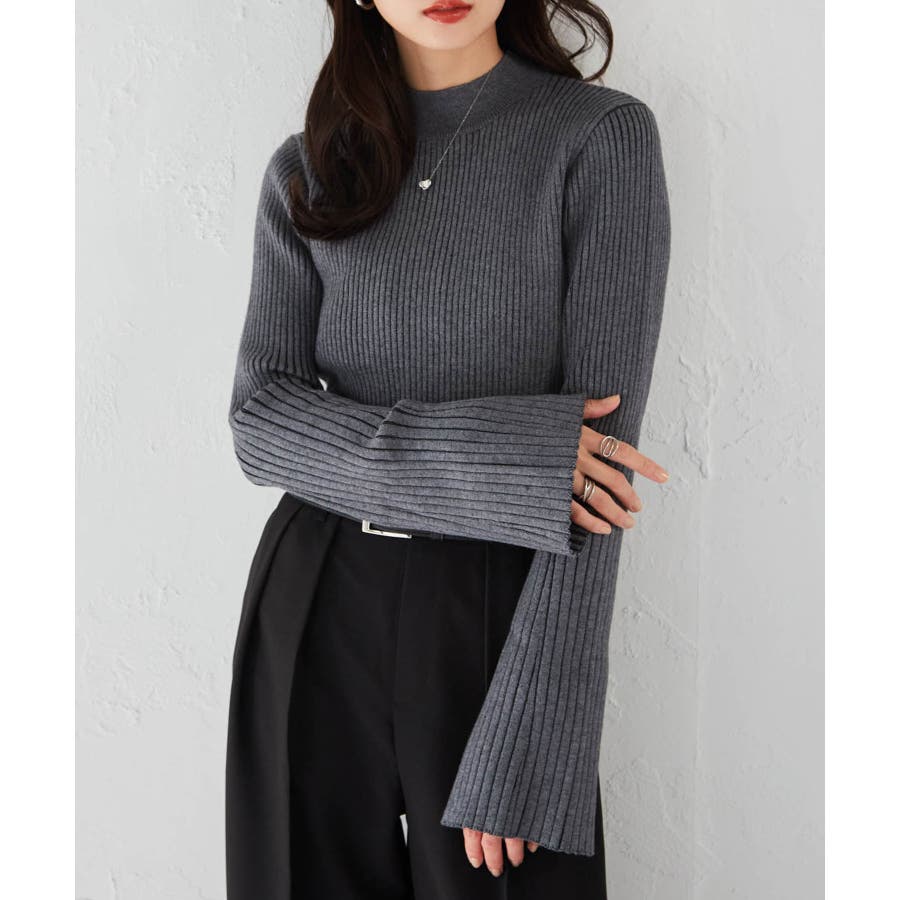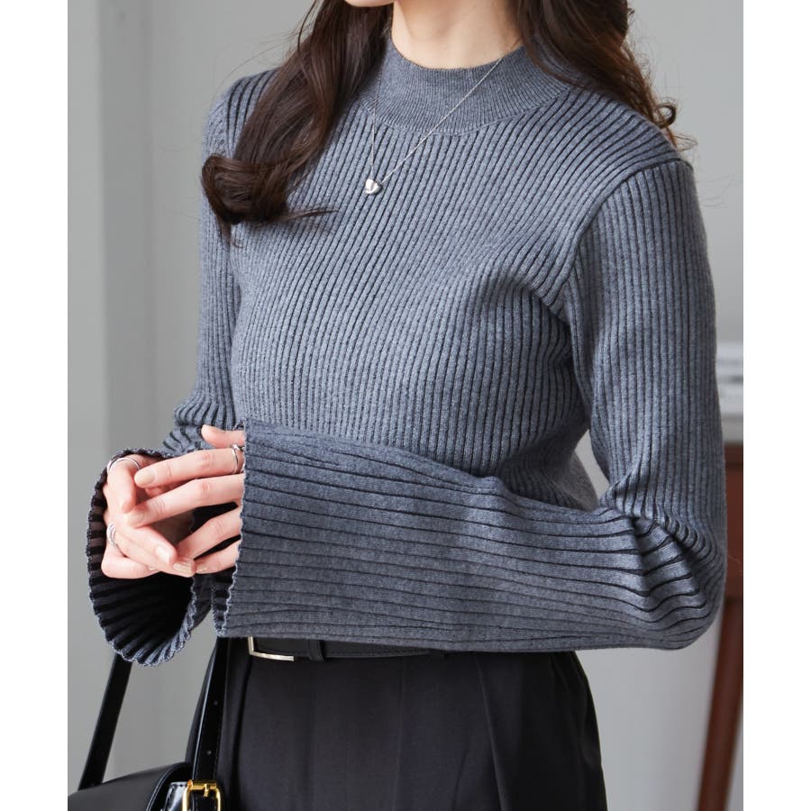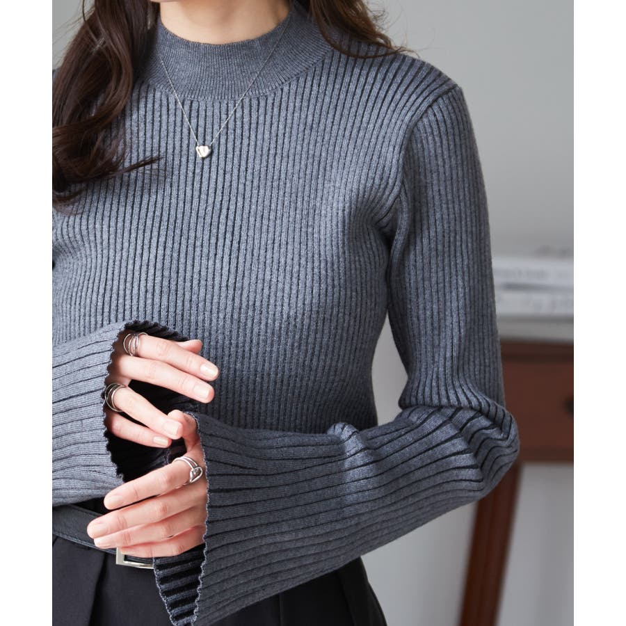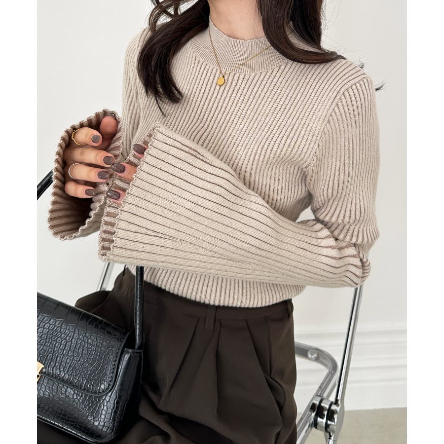 袖口に向かってリブ幅を広く変化させた、長めのフレアスリーブがポイントです◎