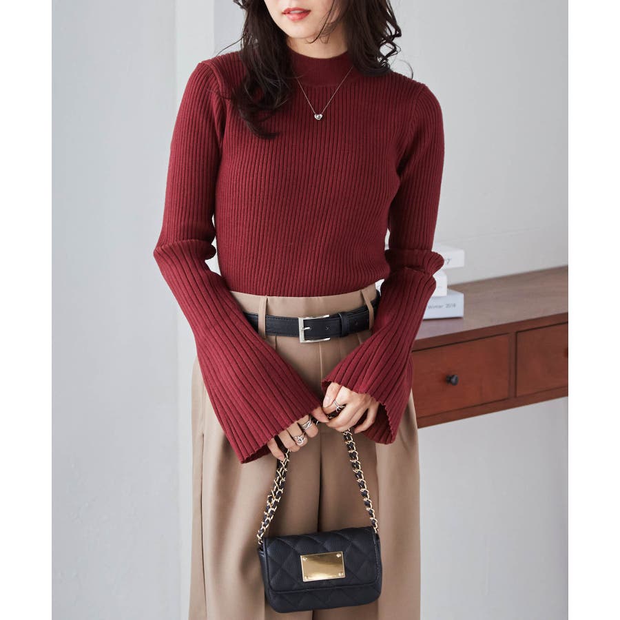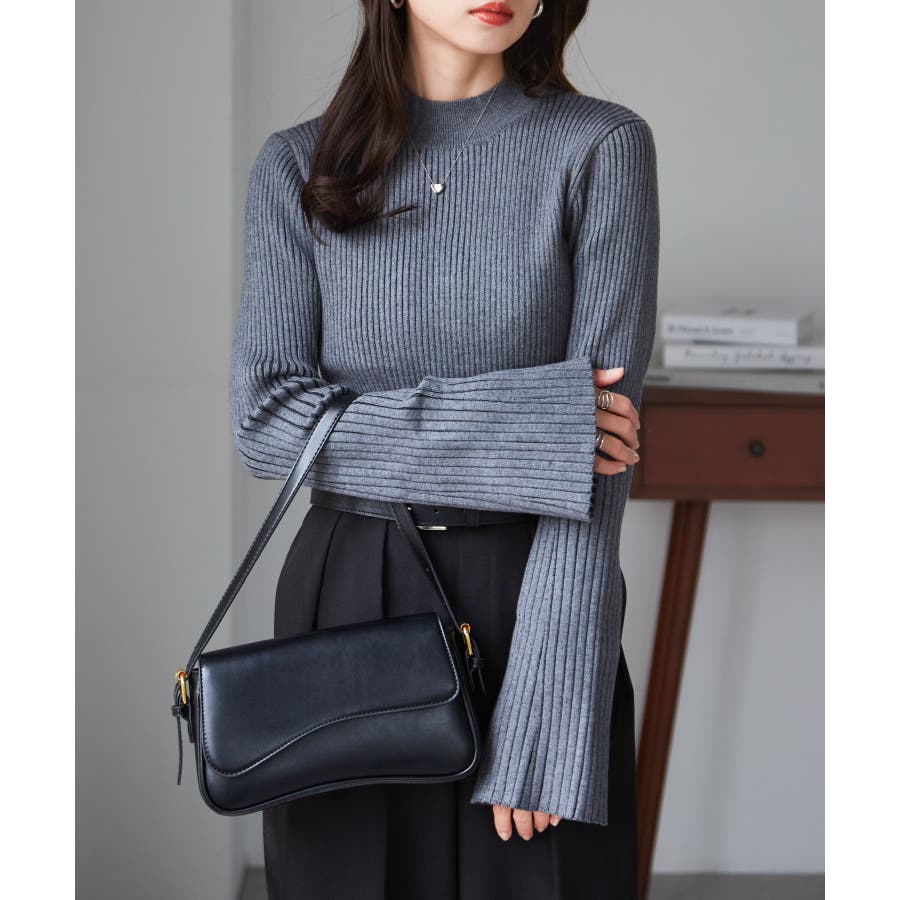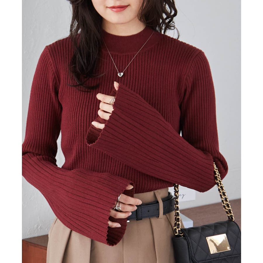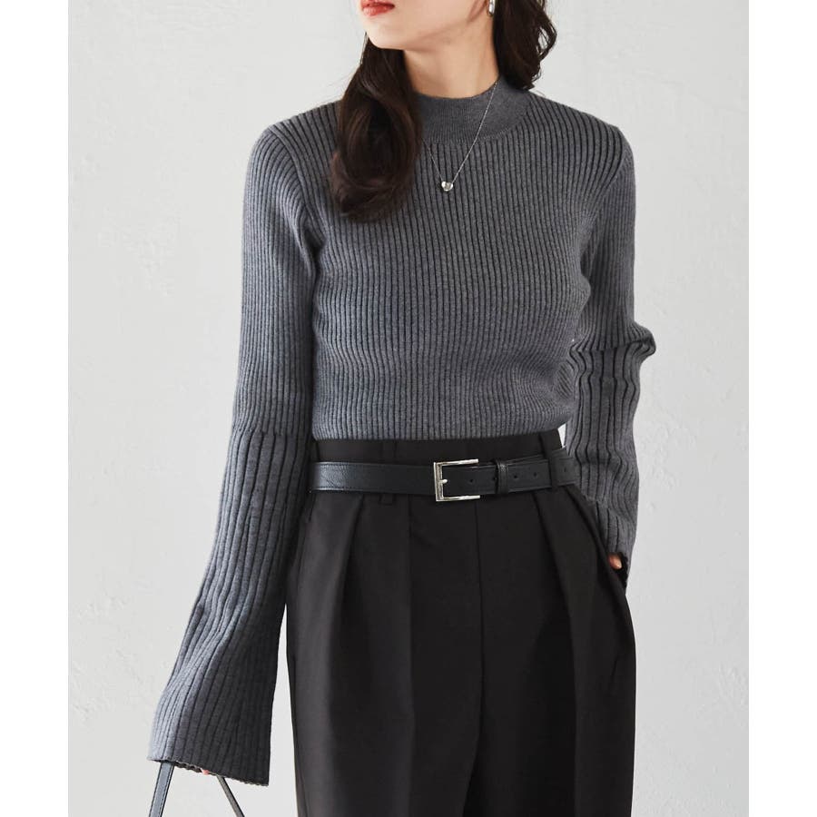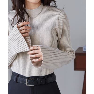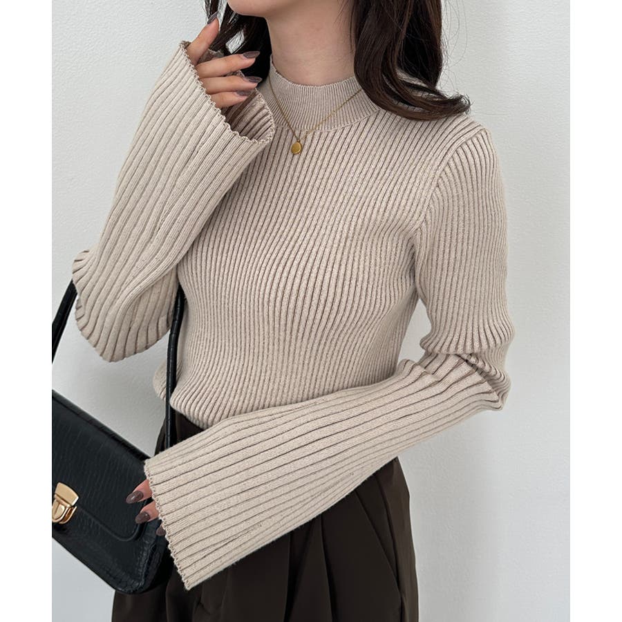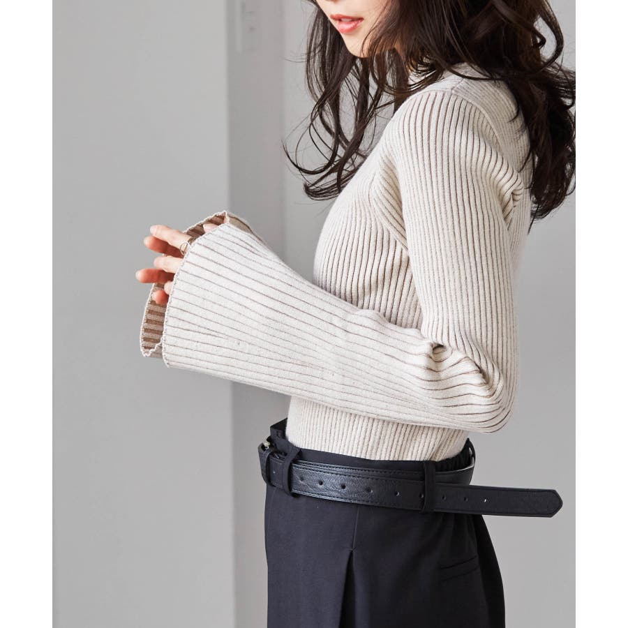 袖口に向かってリブ幅を広く変化させた、長めのフレアスリーブがポイントです◎