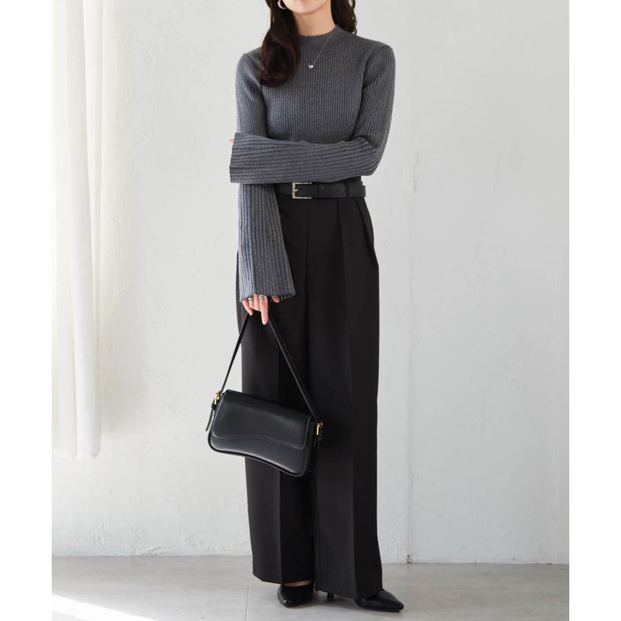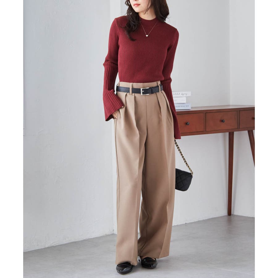 スラックスやタックパンツなどと合わせることで、ウエスト周りもすっきりとした印象に。