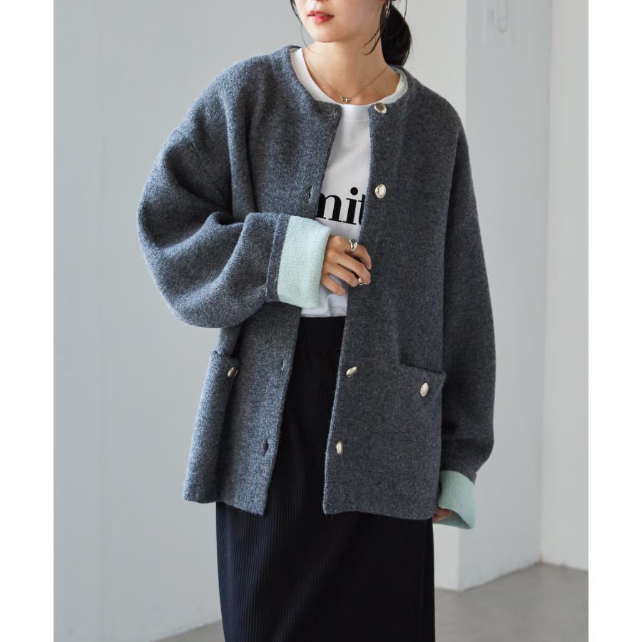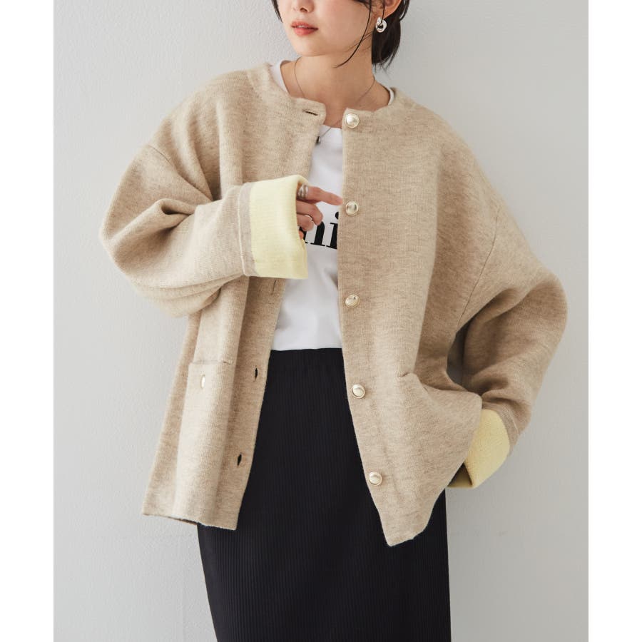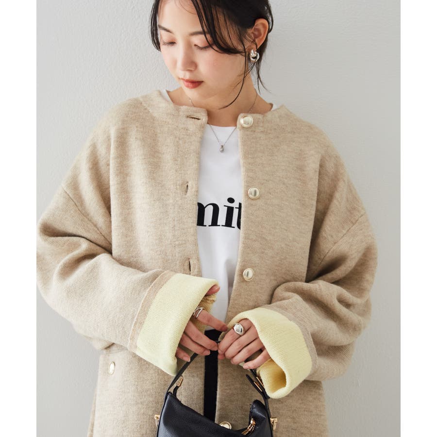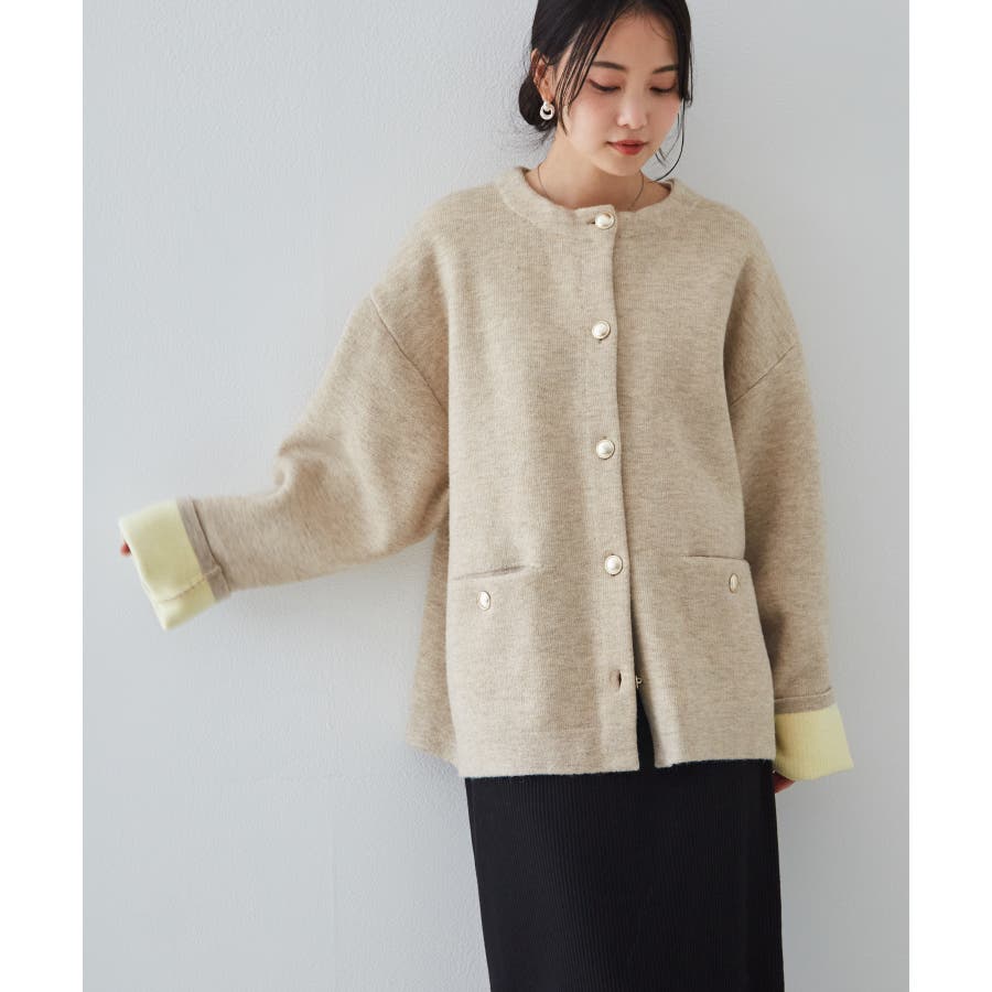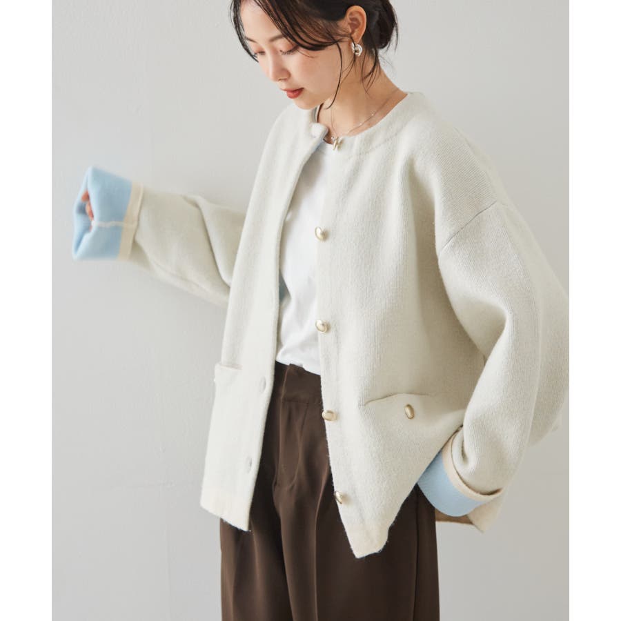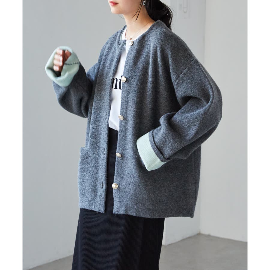 裏面のカラー配色が新鮮でおしゃれ見えするニットカーデ。