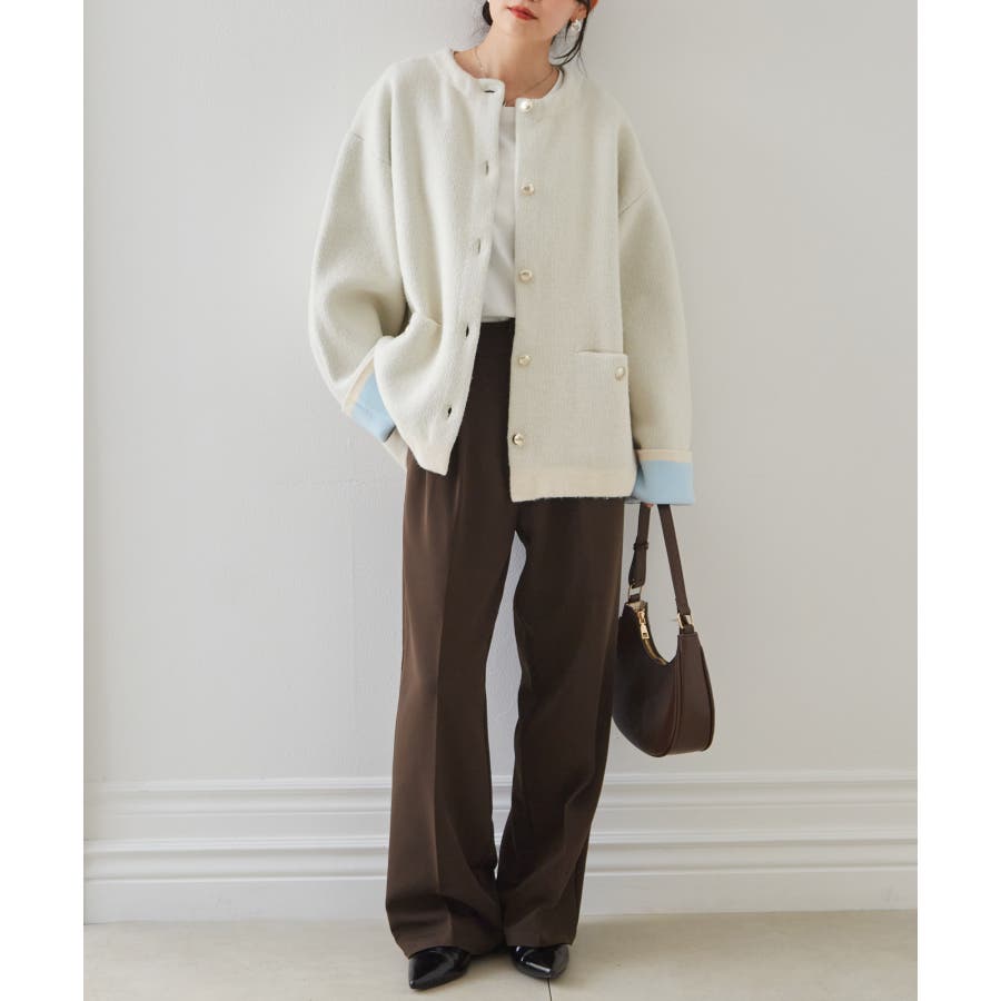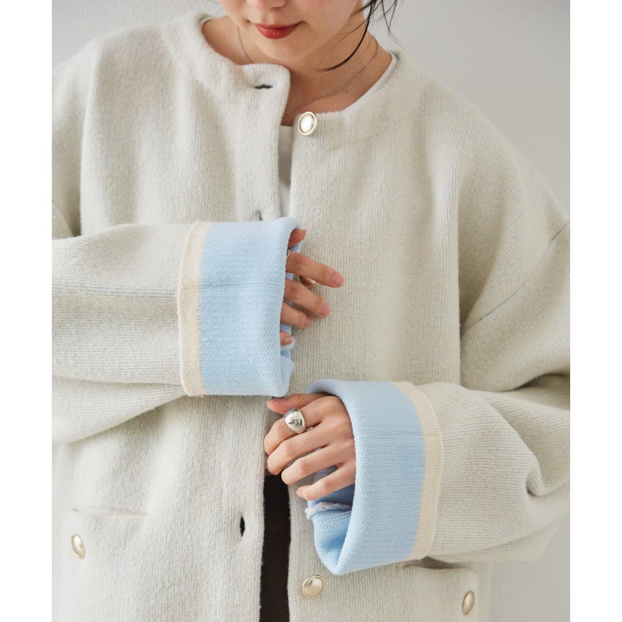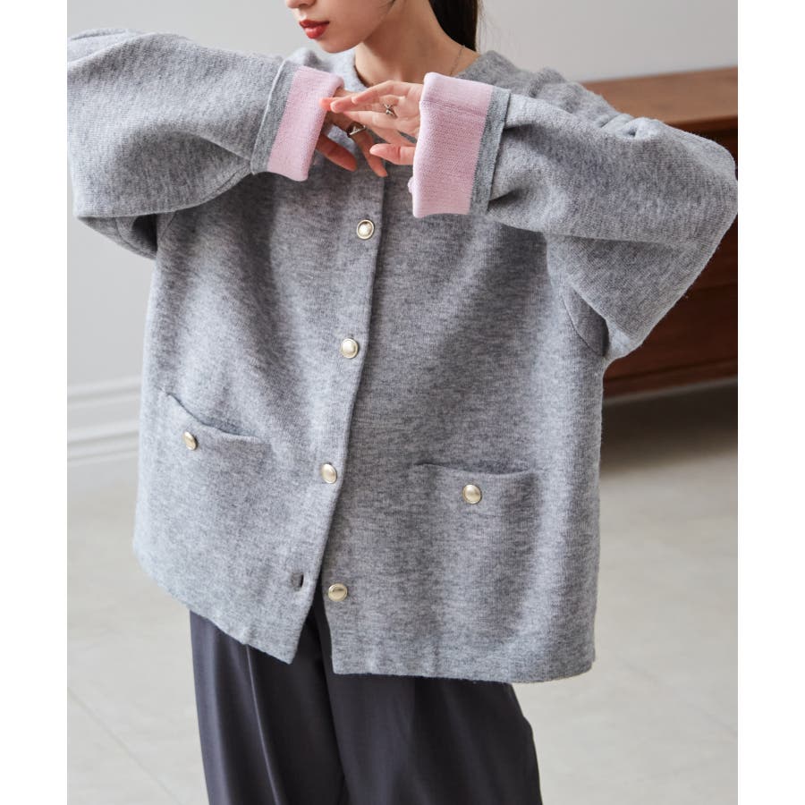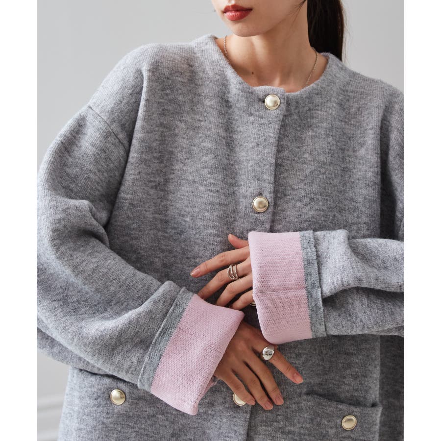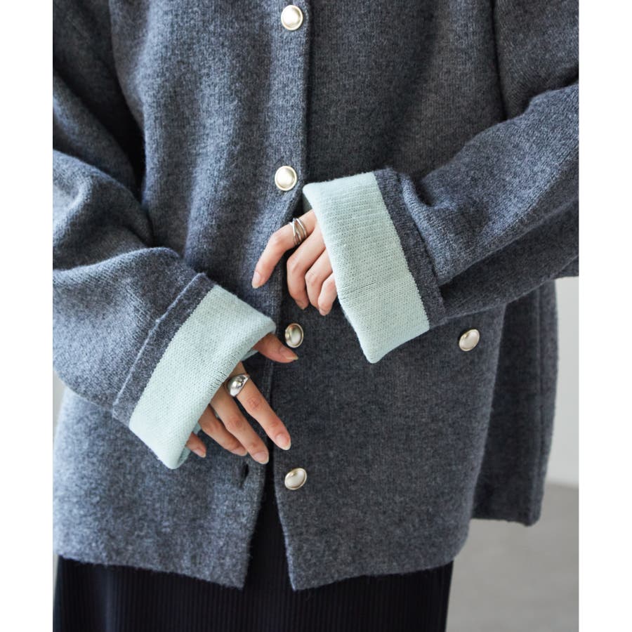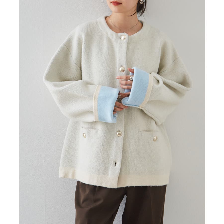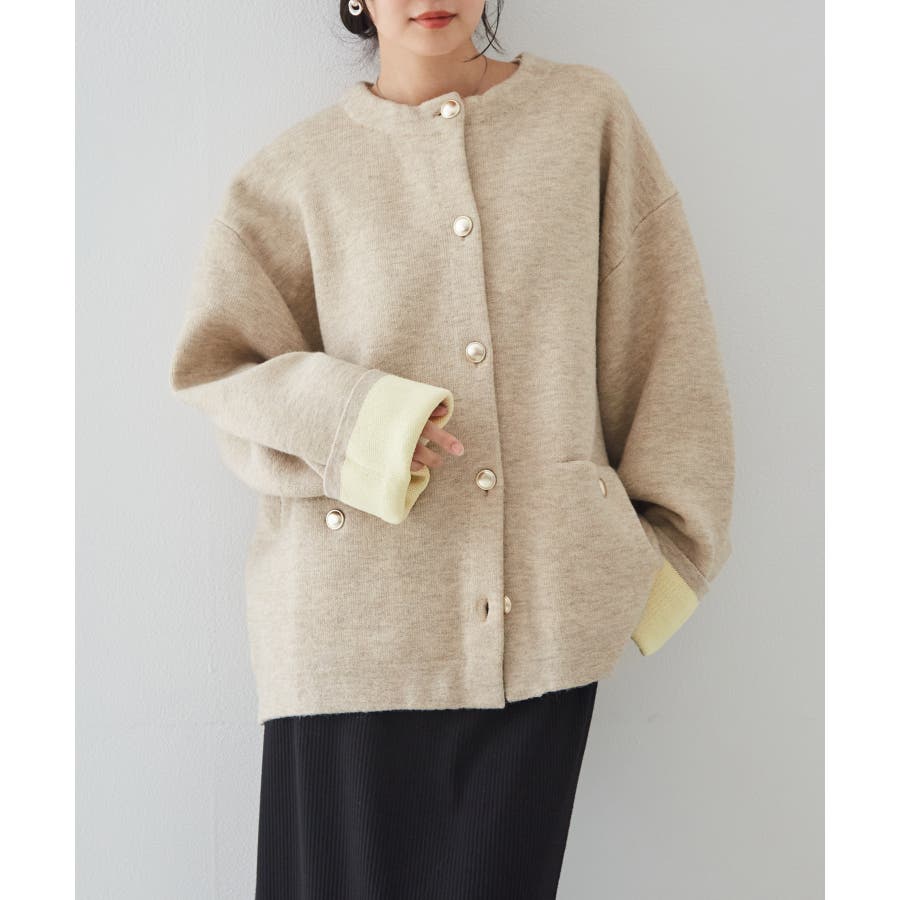 裏面のカラー配色が新鮮でおしゃれ見えするニットカーデ。