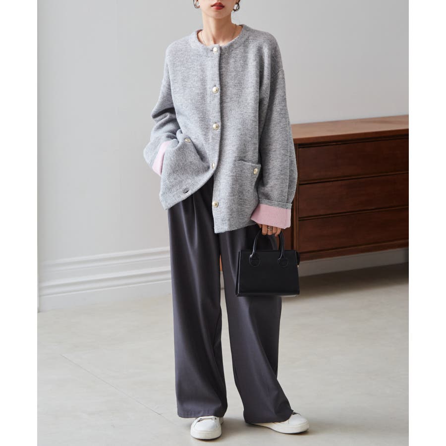 ・ゆったりしたサイズ感のアウターライクなカーディガン
