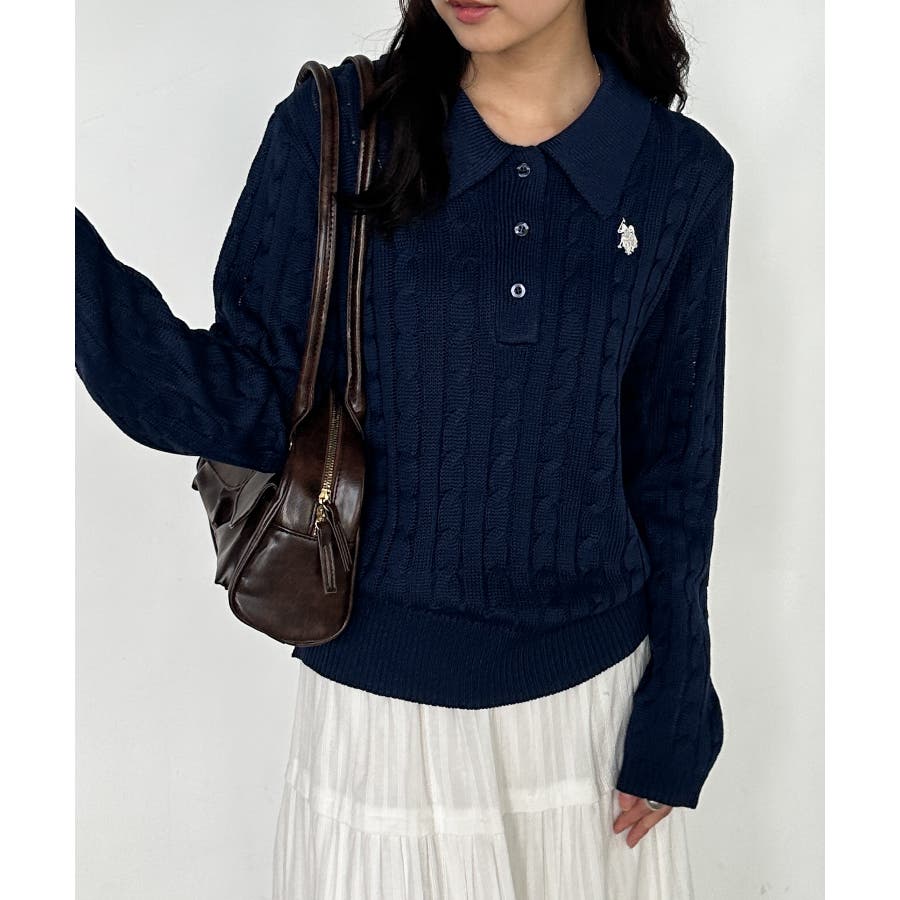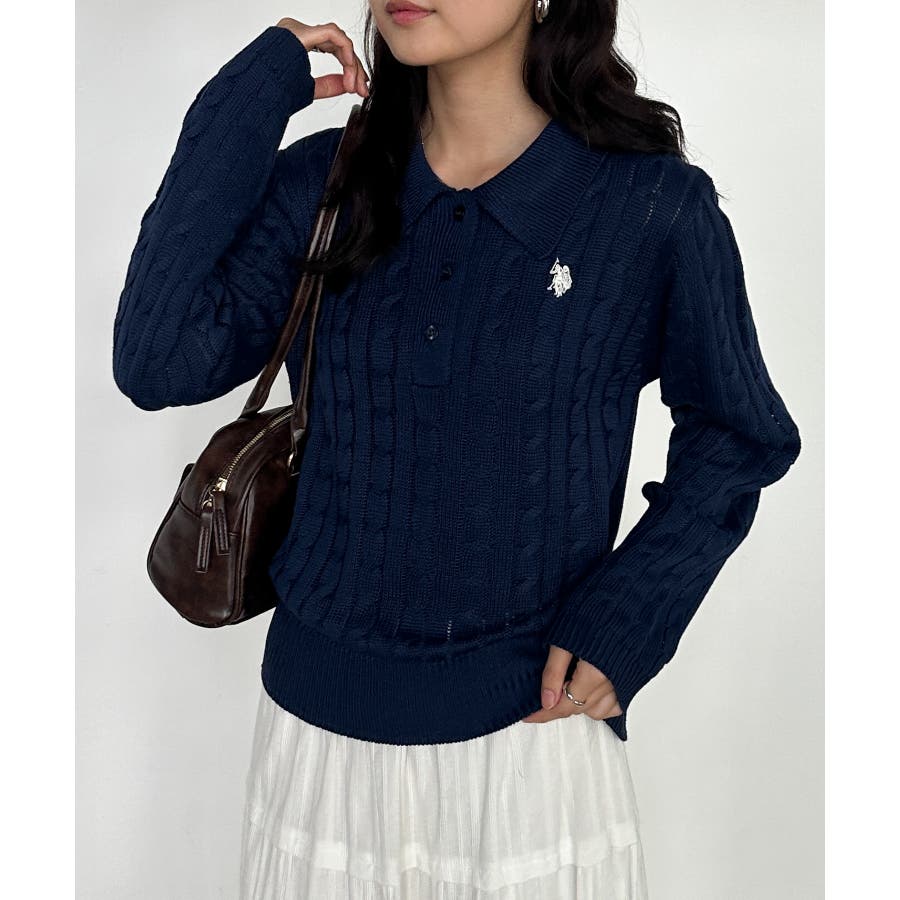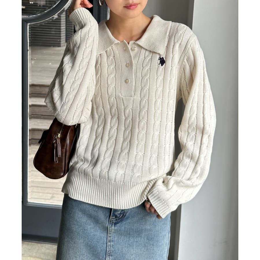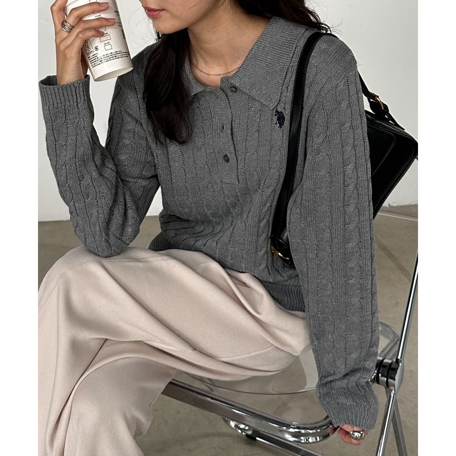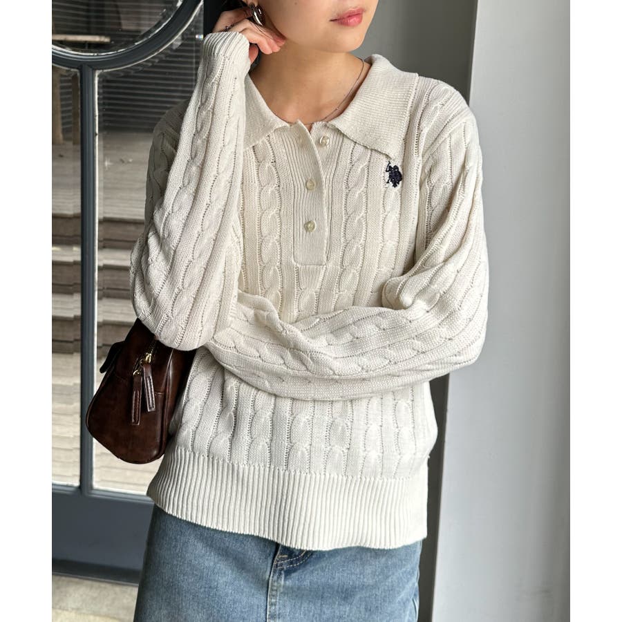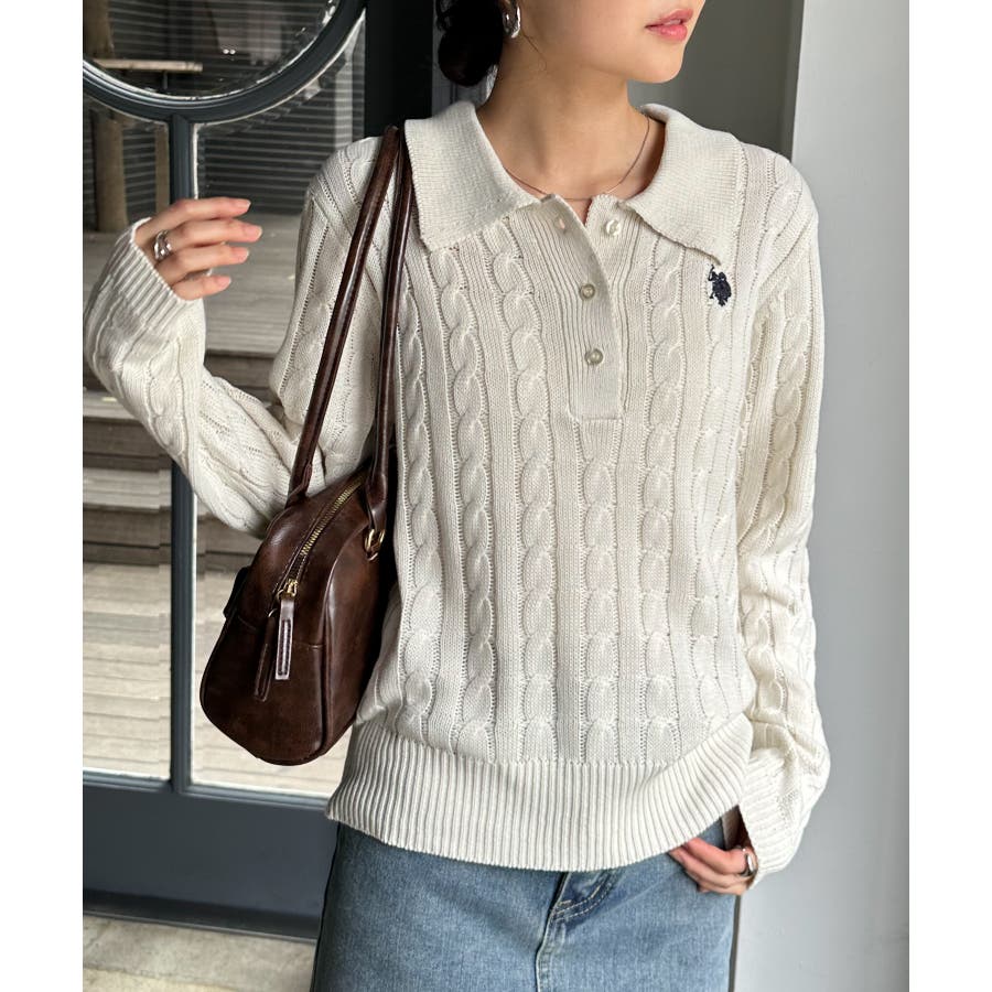 カジュアルにもキレイめにも着られるケーブルニットポロシャツ