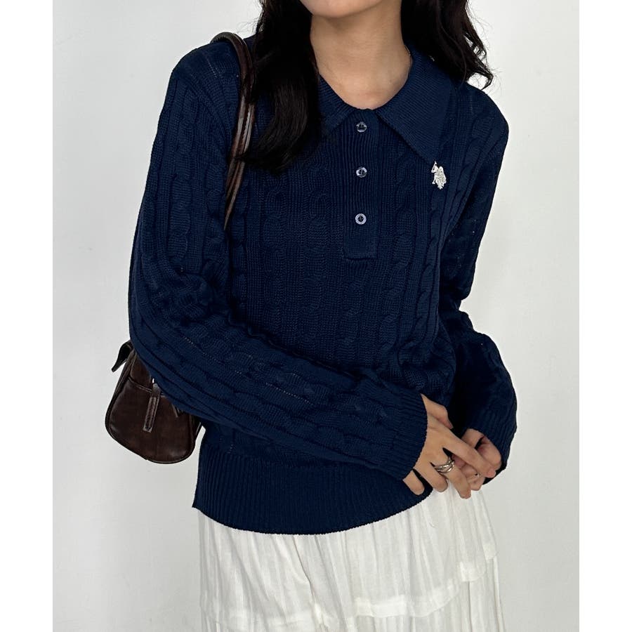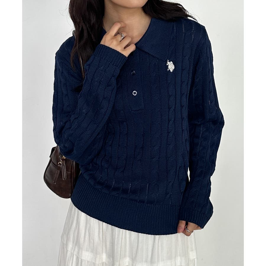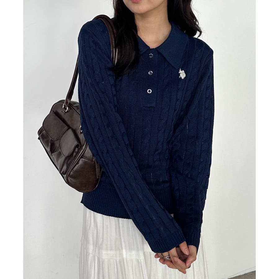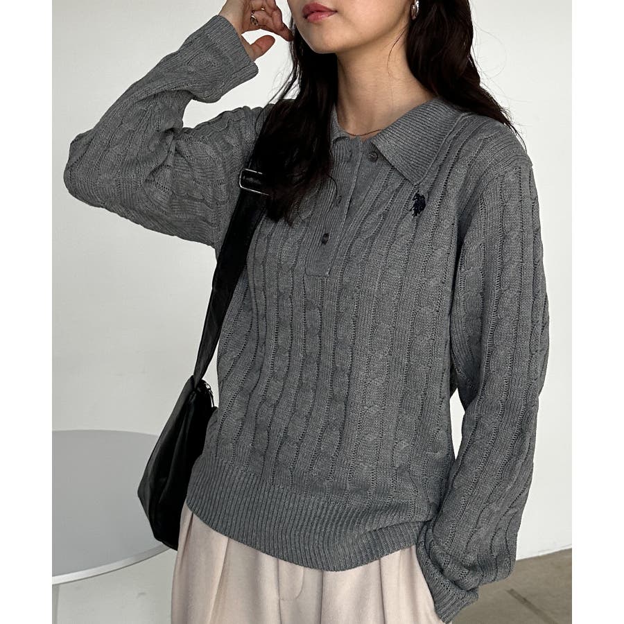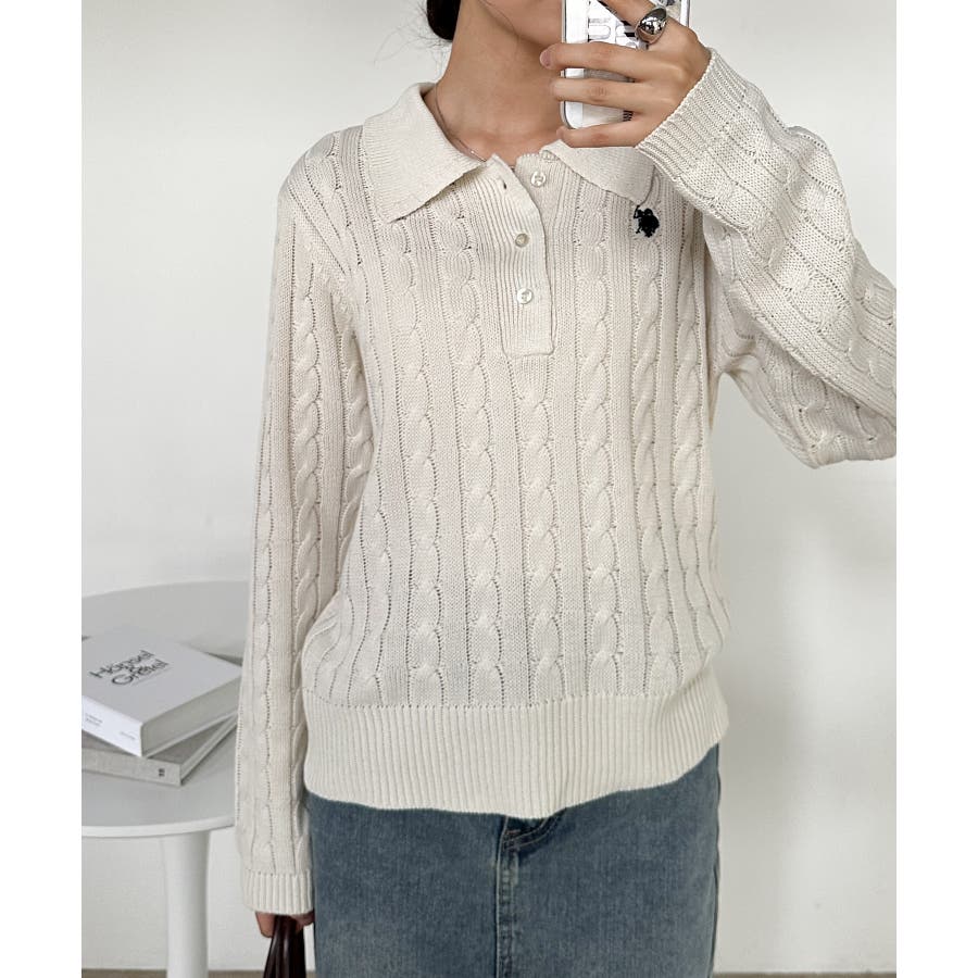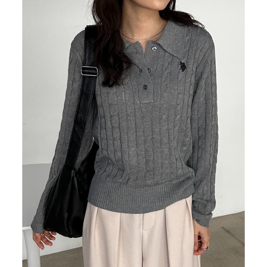 カジュアルにもキレイめにも着られるケーブルニットポロシャツ