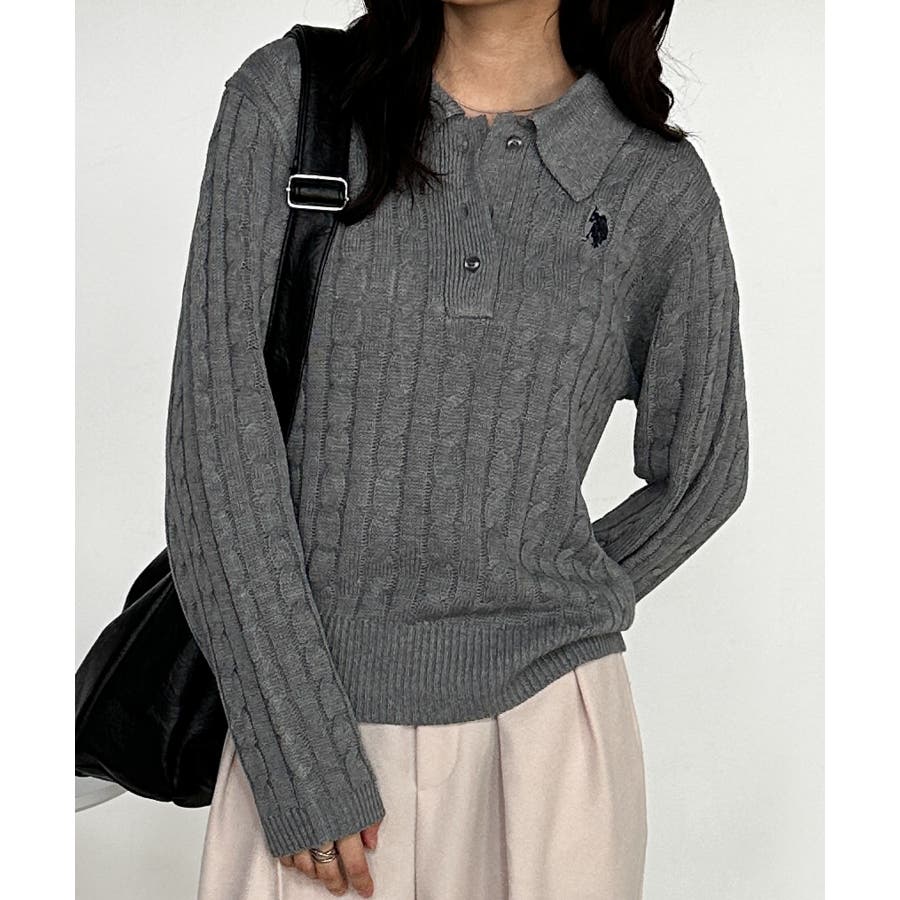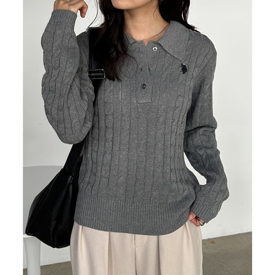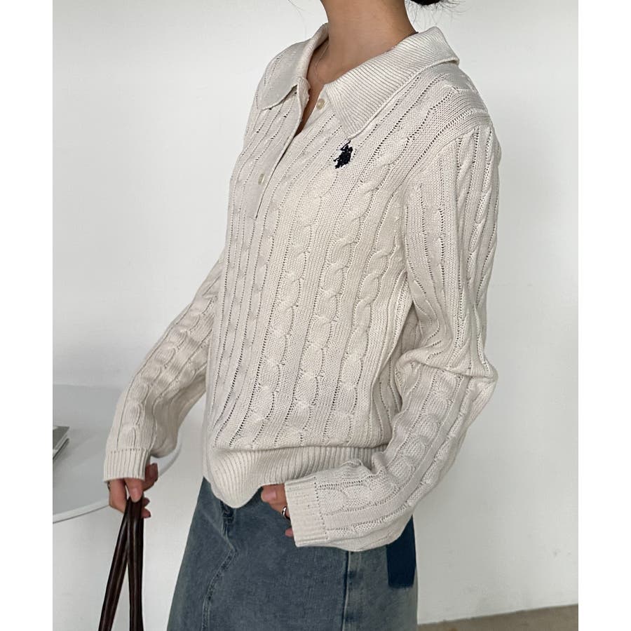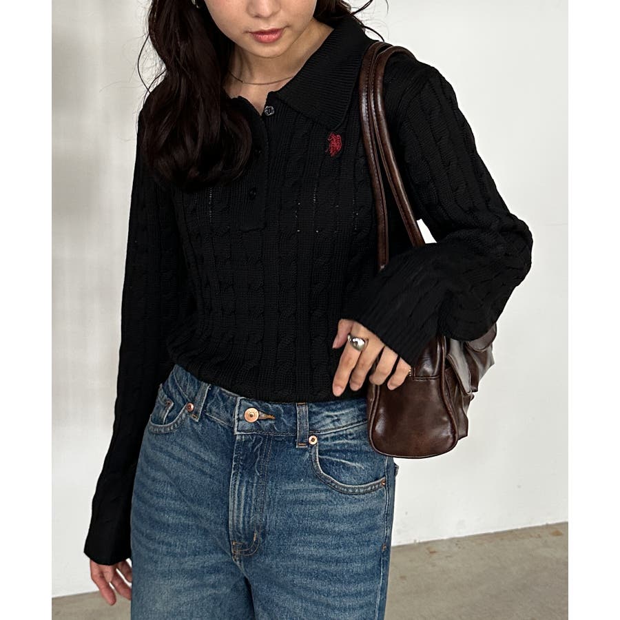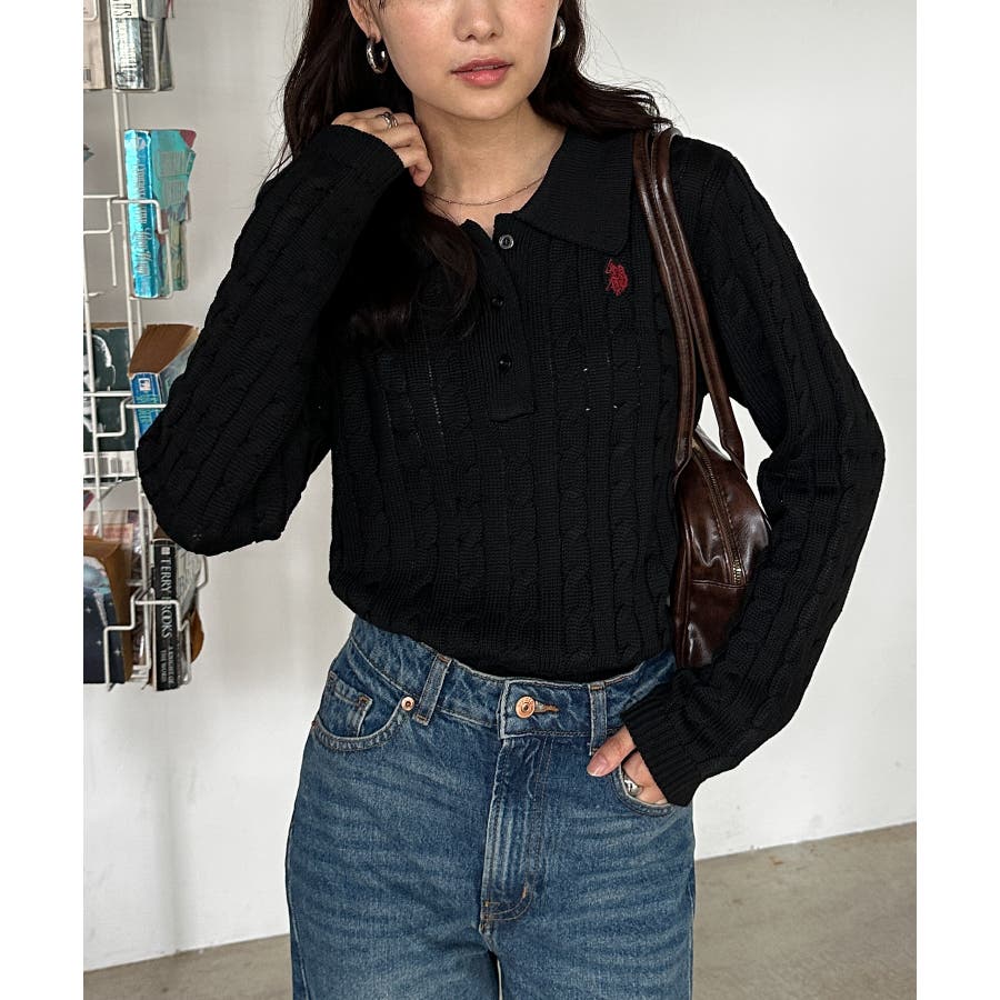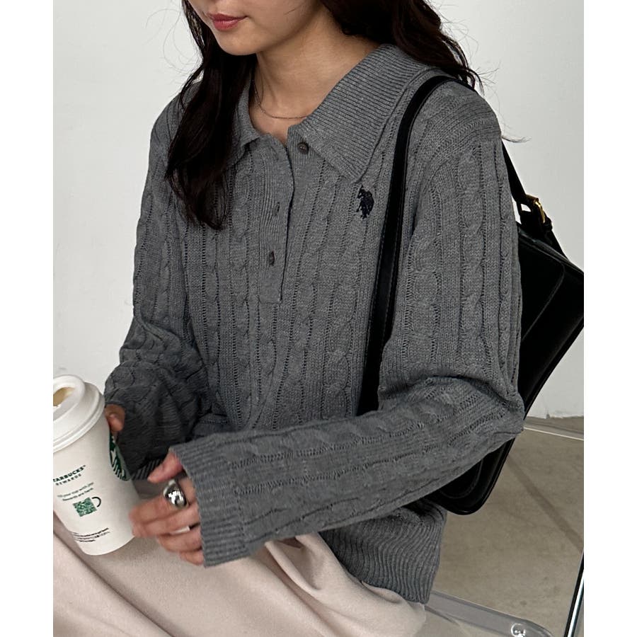 カジュアルにもキレイめにも着られるケーブルニットポロシャツ