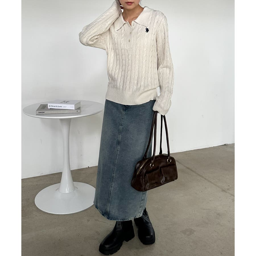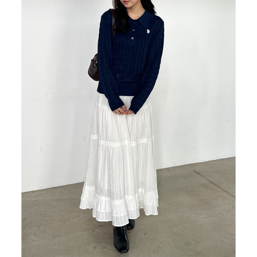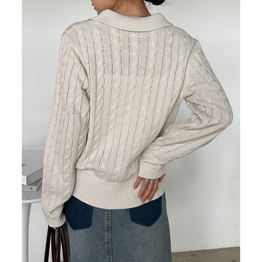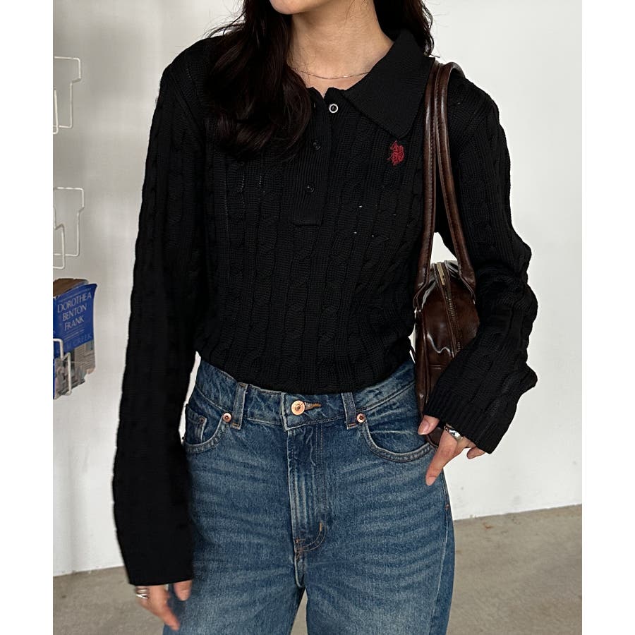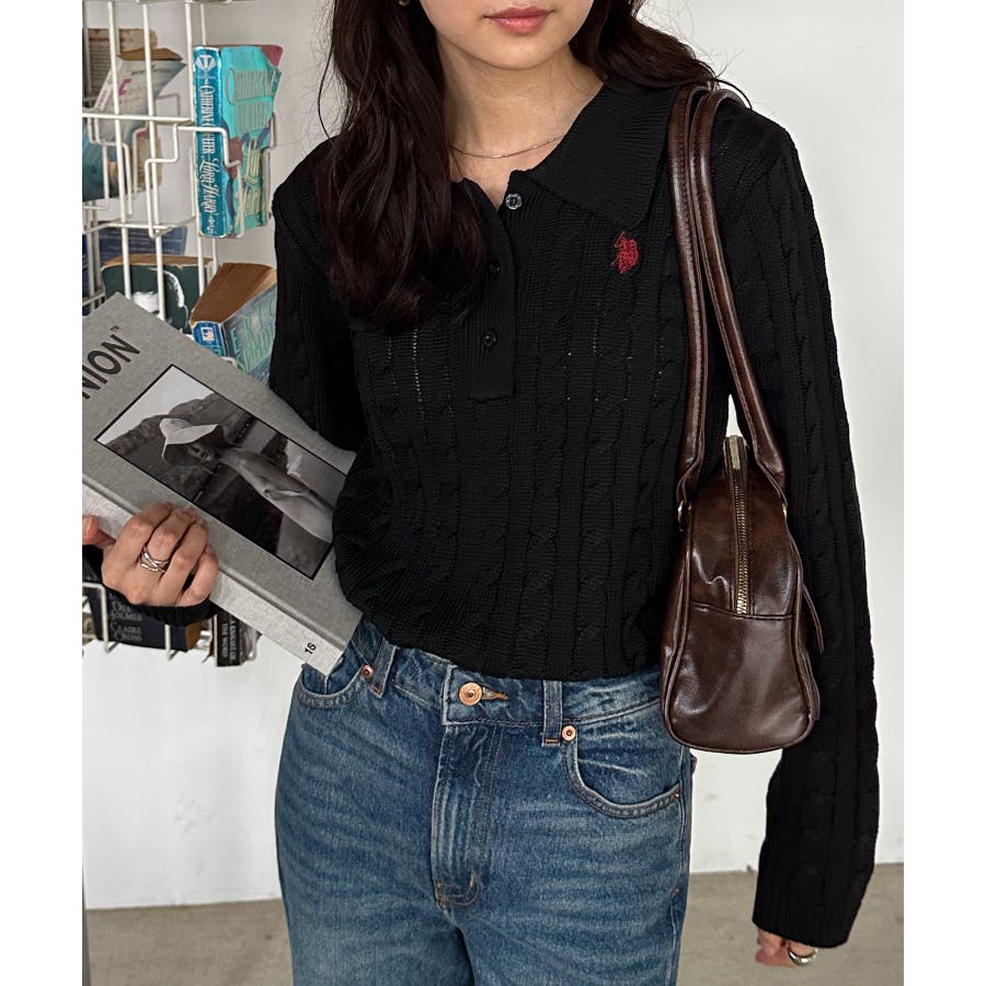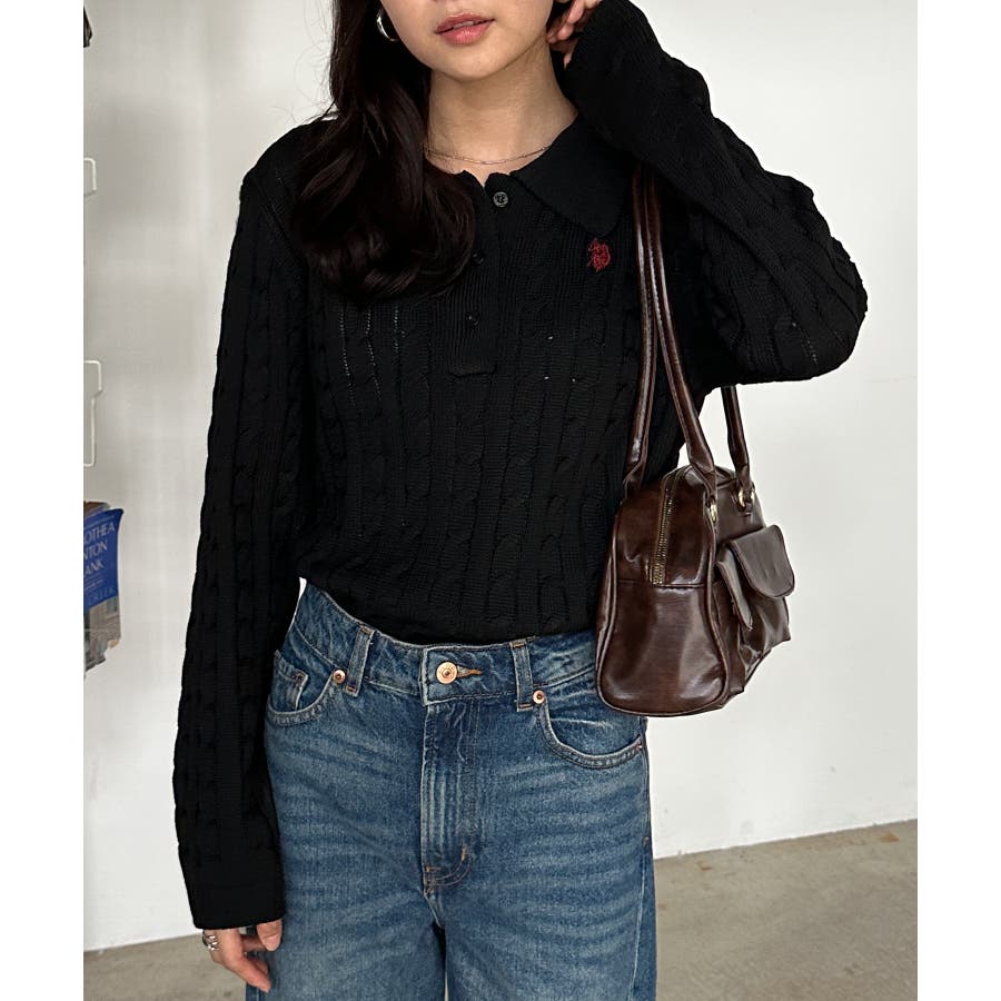 カジュアルにもキレイめにも着られるケーブルニットポロシャツ