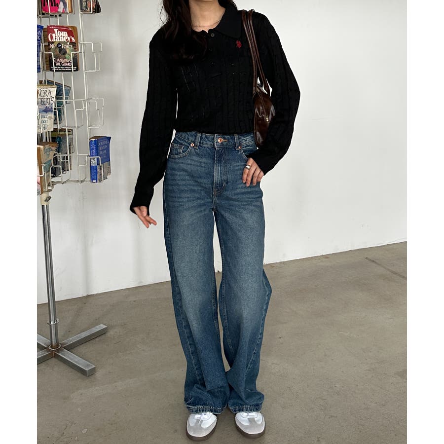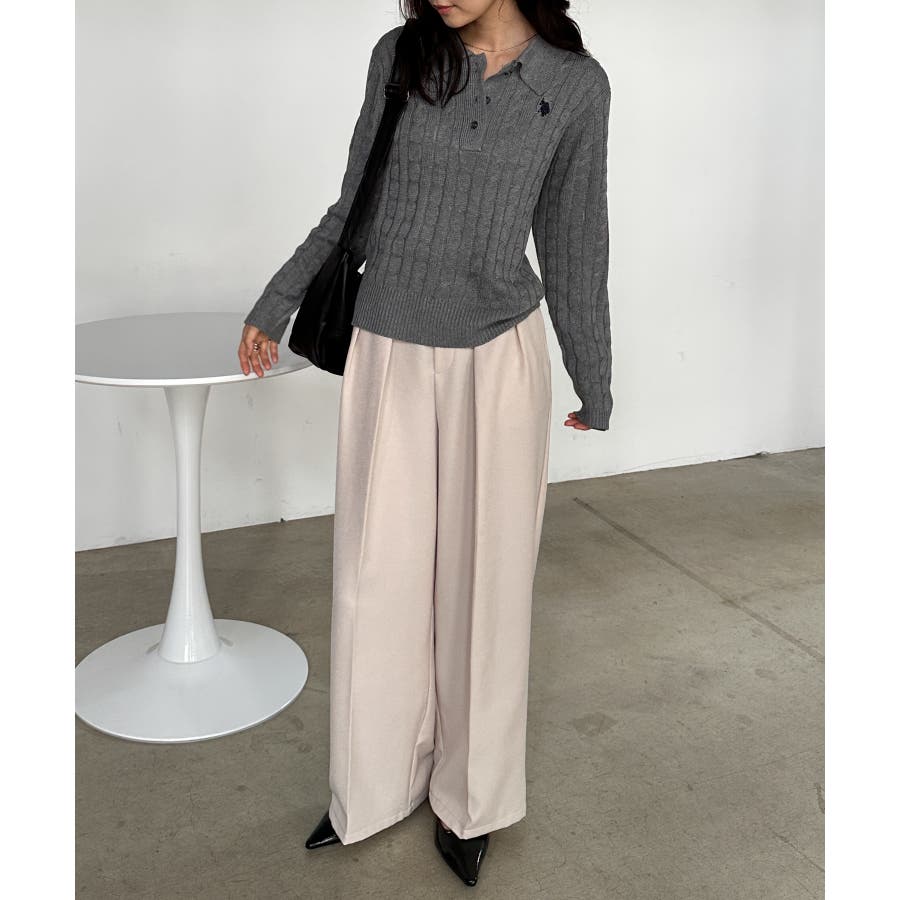 韓国トラッドな雰囲気の、幅広いスタイルにお召しいただけるニットポロシャツ♪