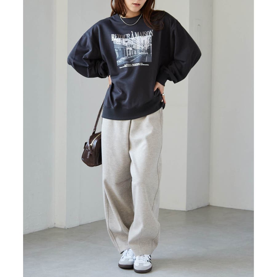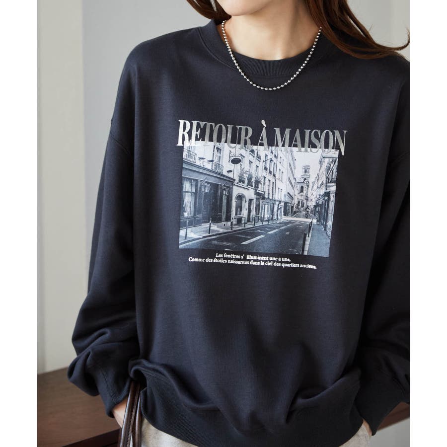 フォトプリントが可愛い、大人カジュアルなスウェットプルオーバー。