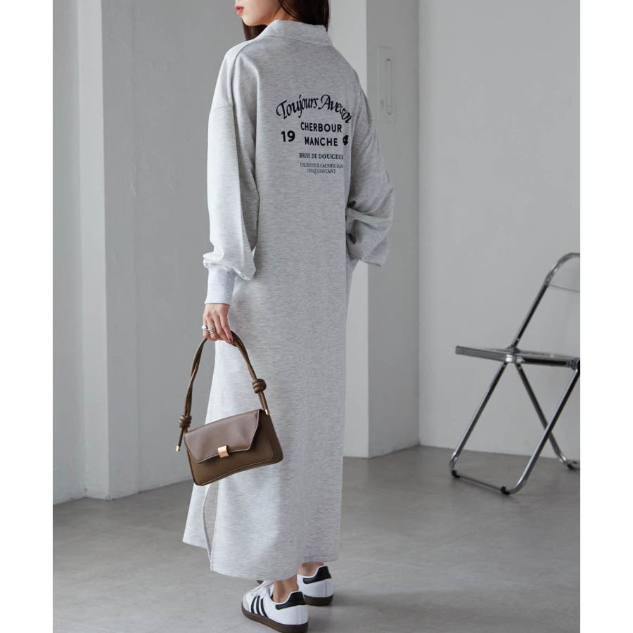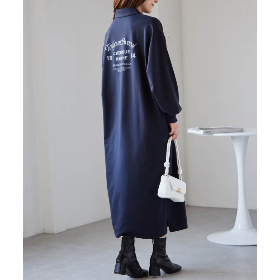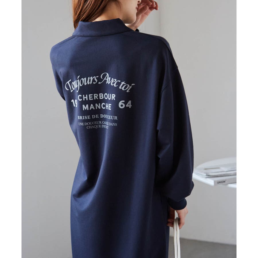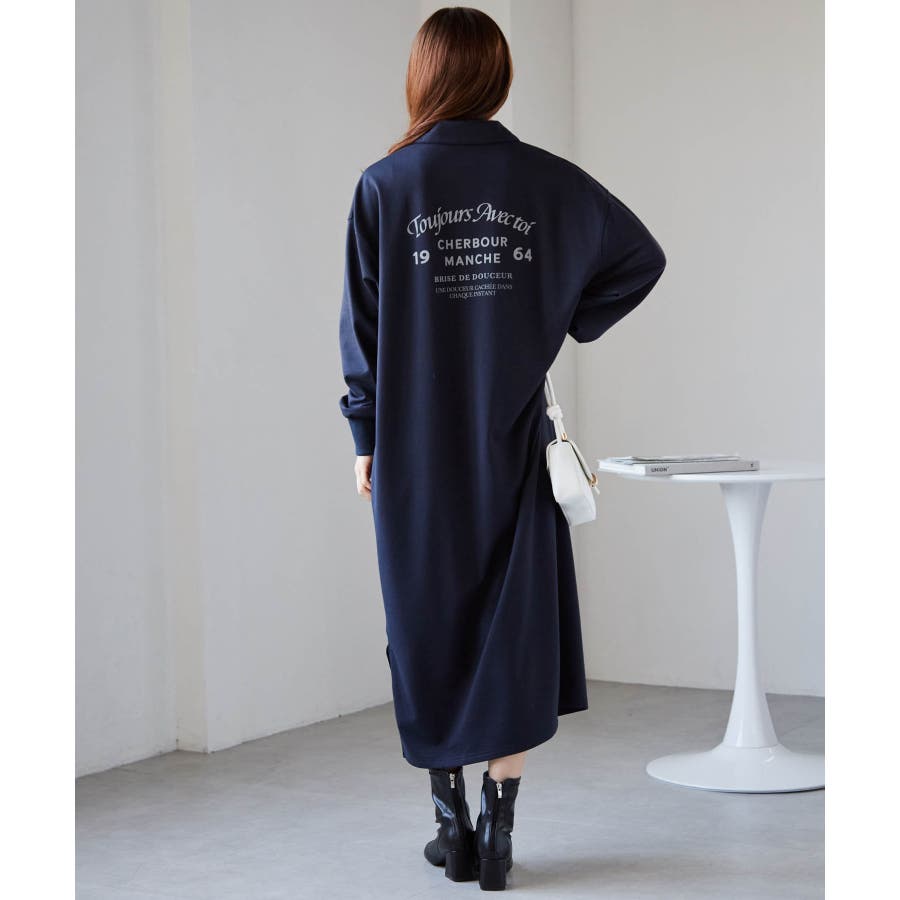 バックプリントポロ襟裏毛ワンピース