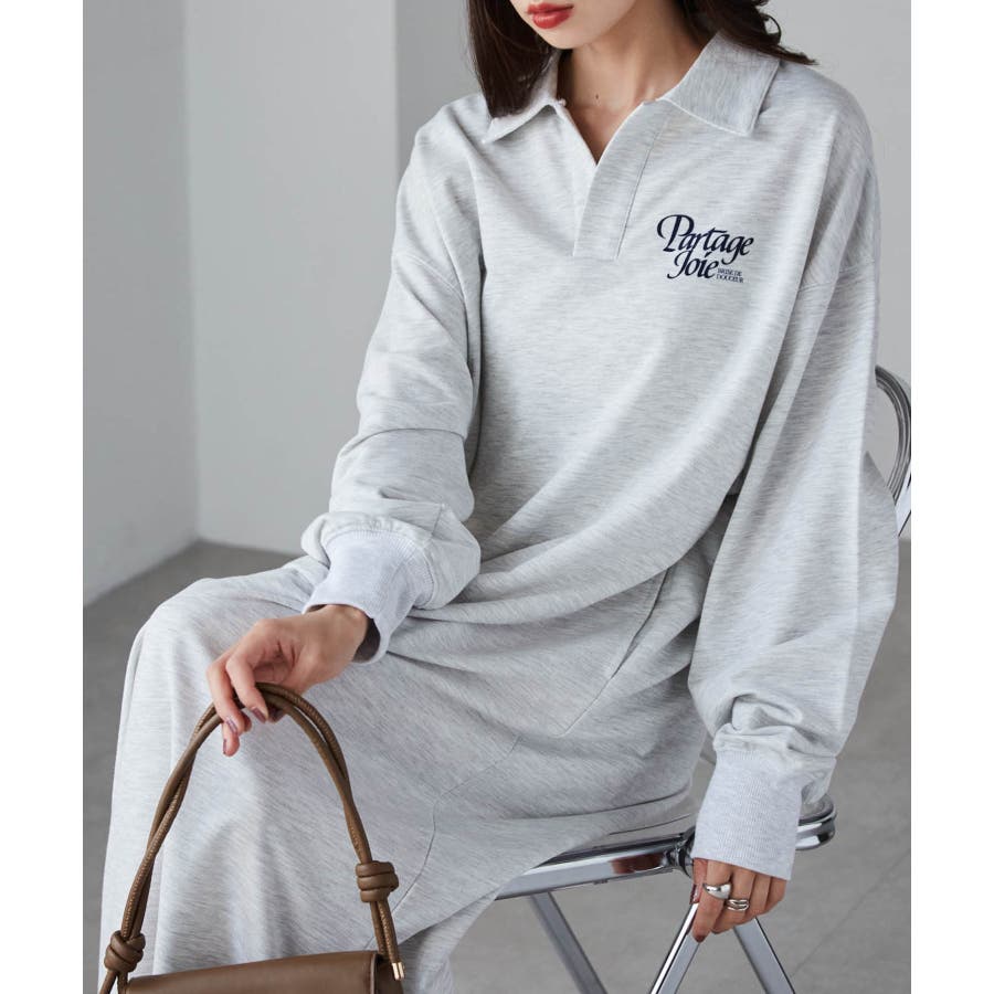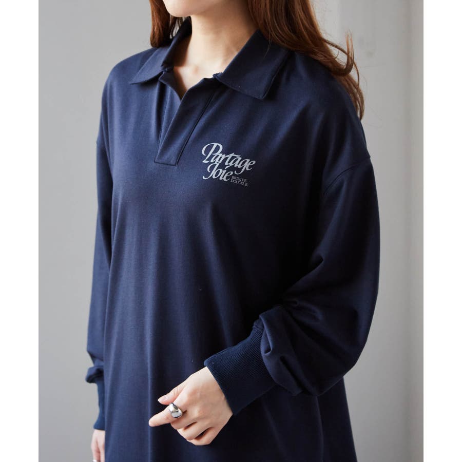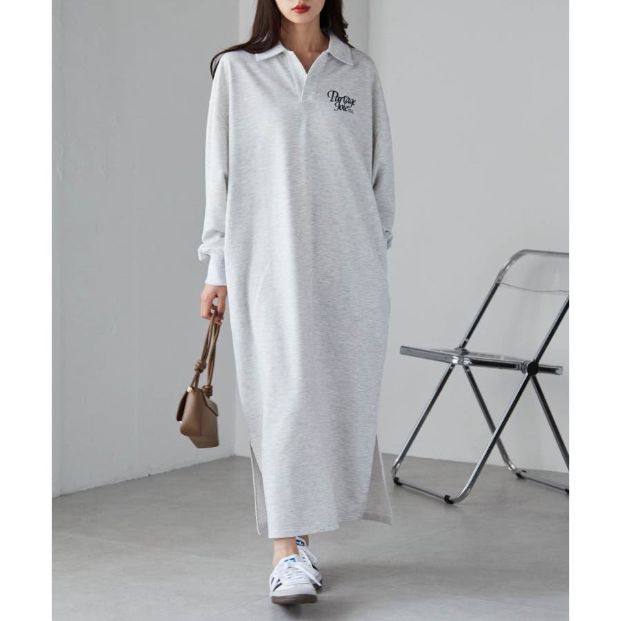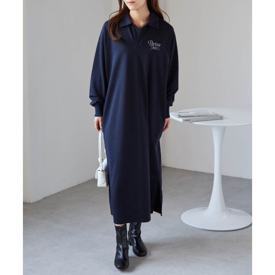 バックプリントポロ襟裏毛ワンピース