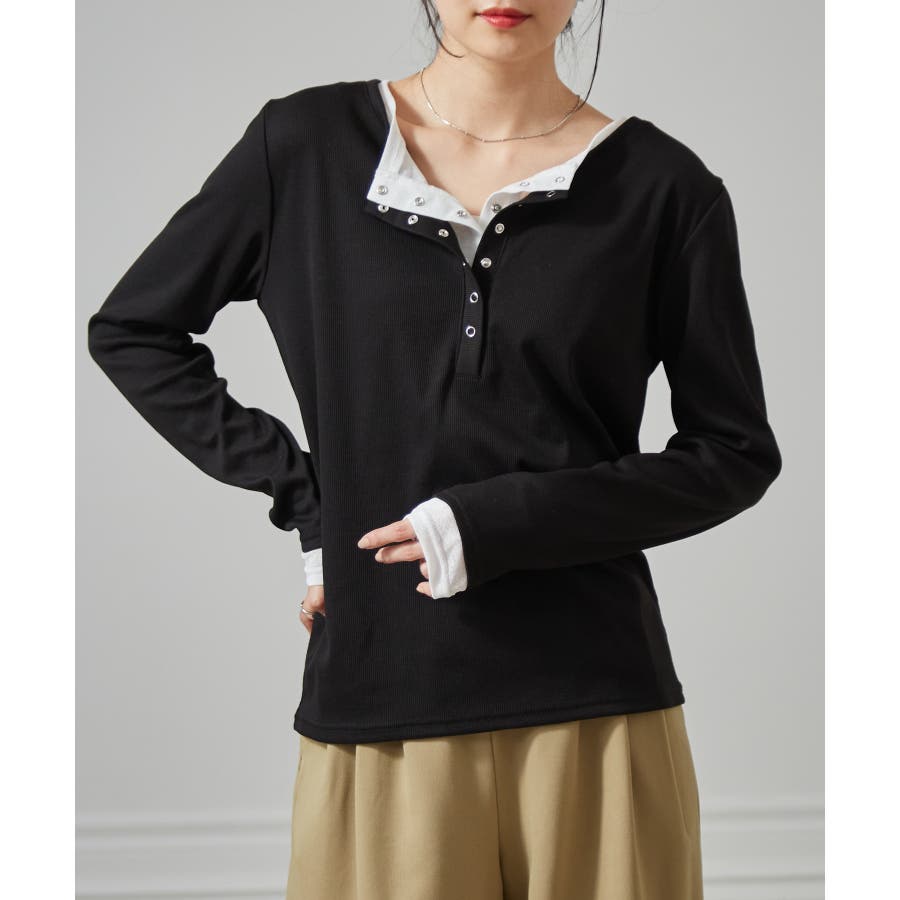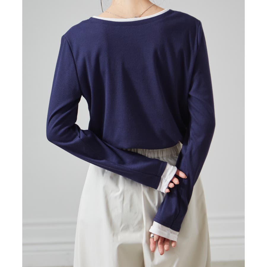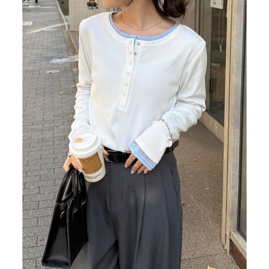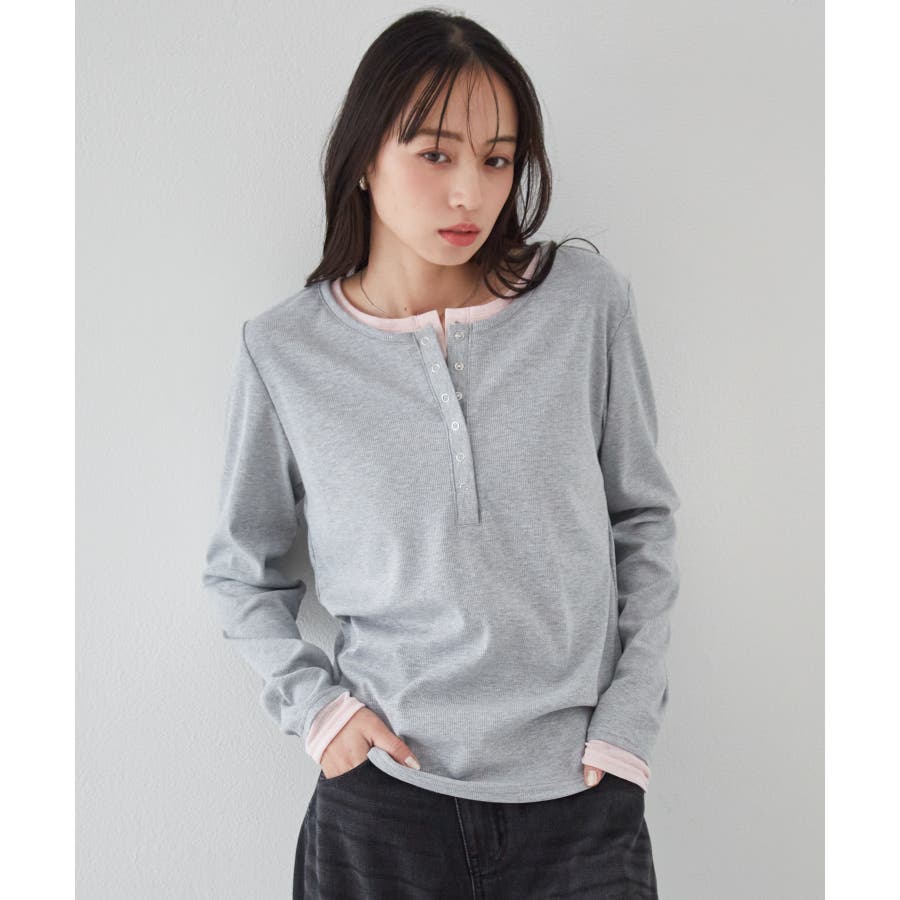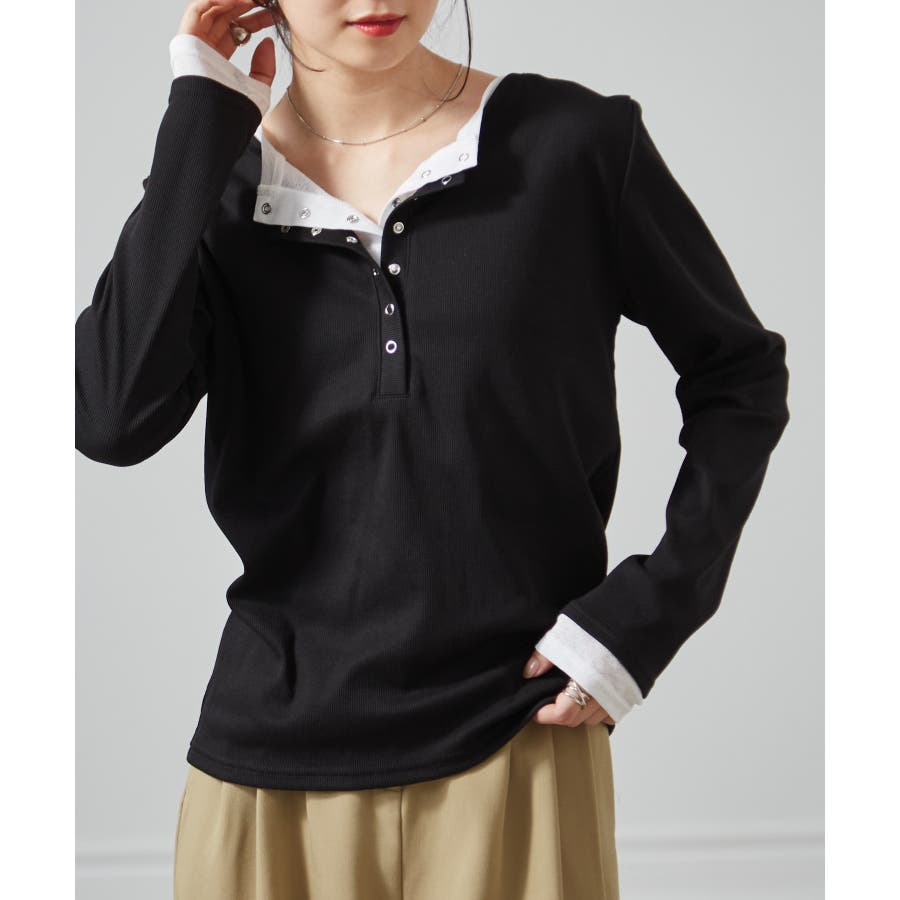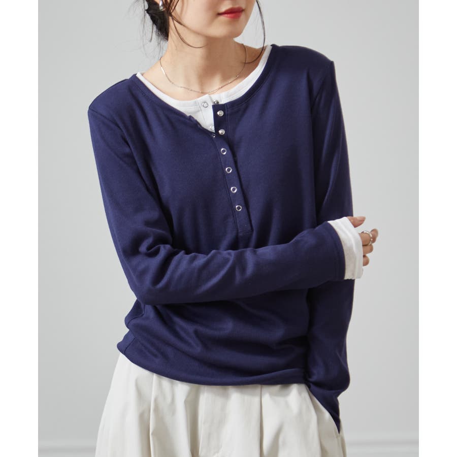 ・1枚でレイヤード風の着こなしを楽しめるカジュアルトップス。