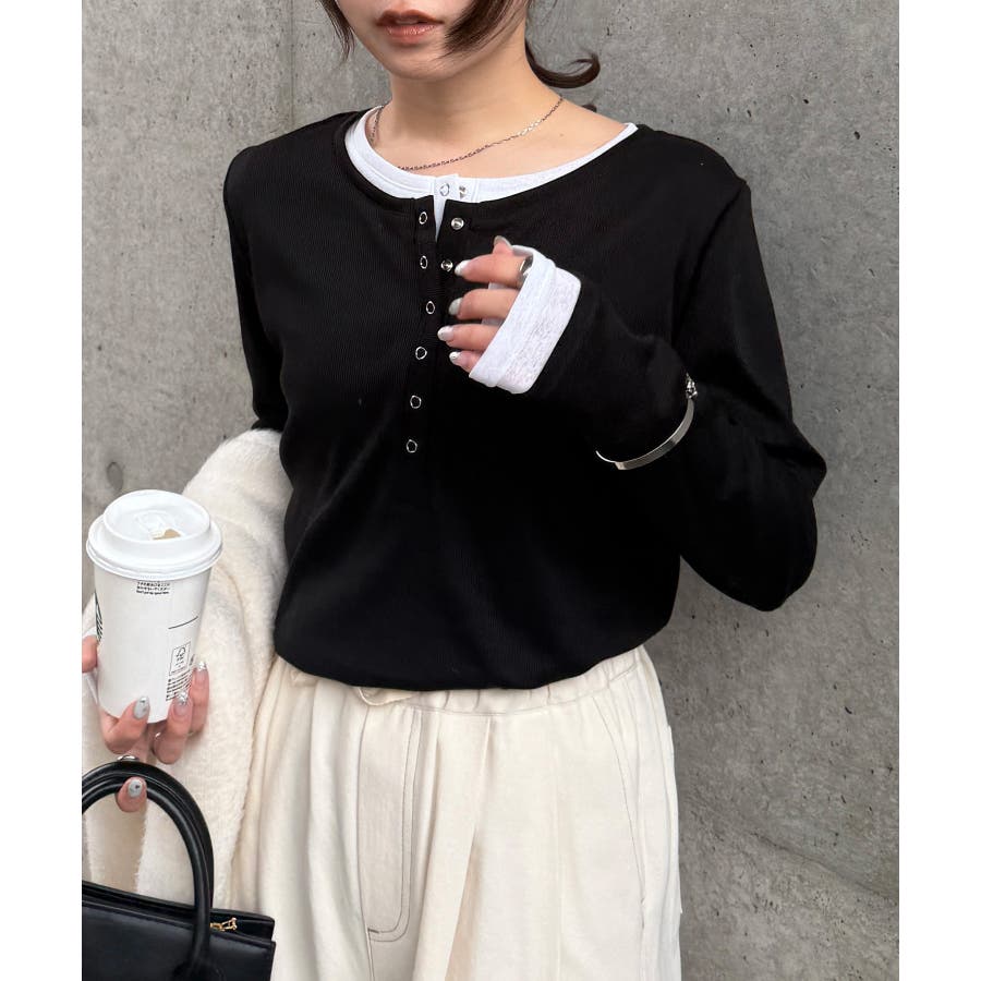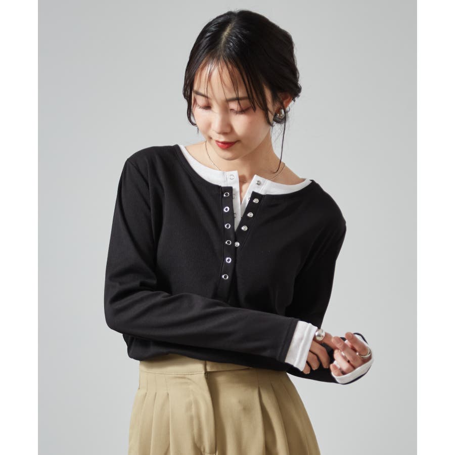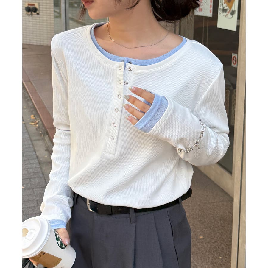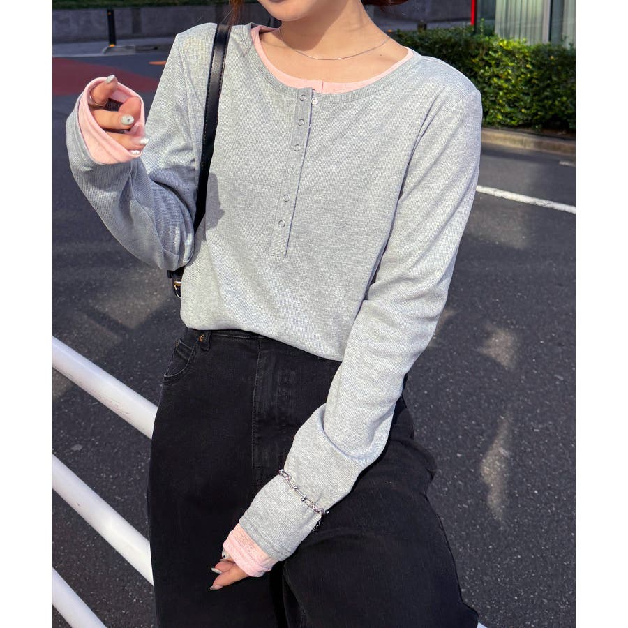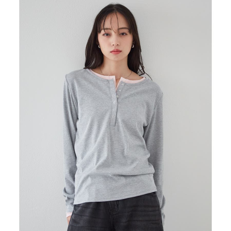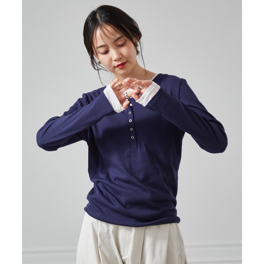 ・1枚でレイヤード風の着こなしを楽しめるカジュアルトップス。