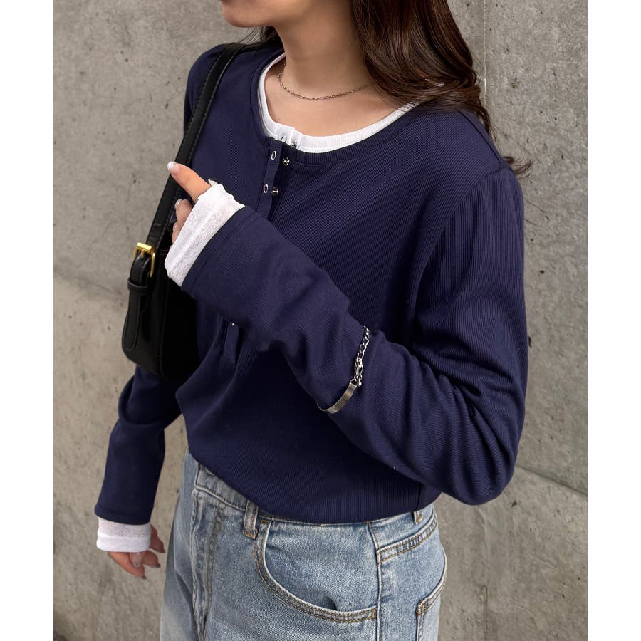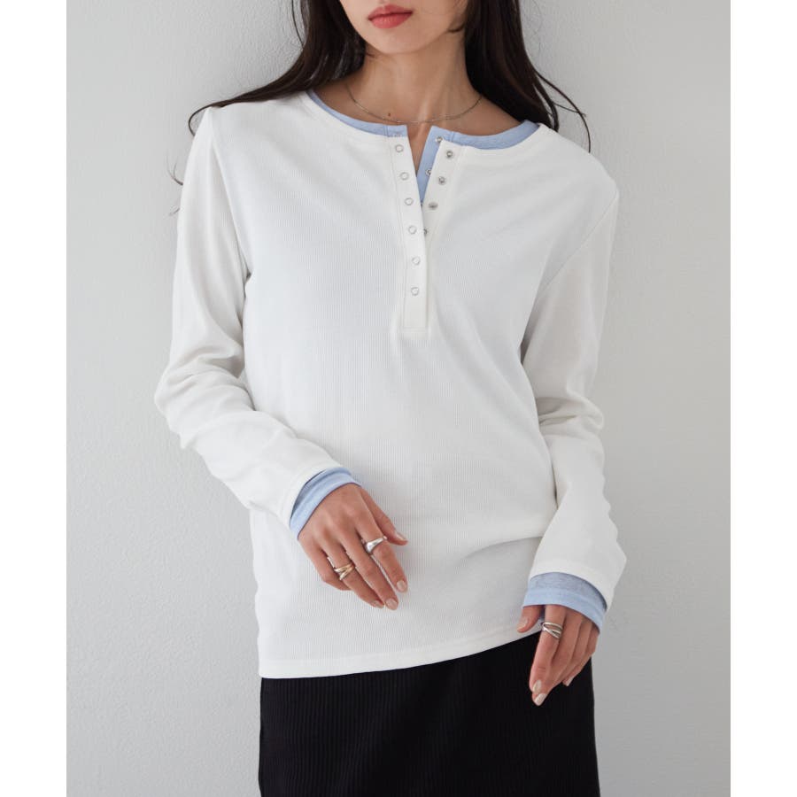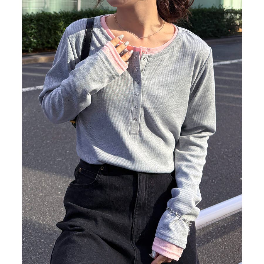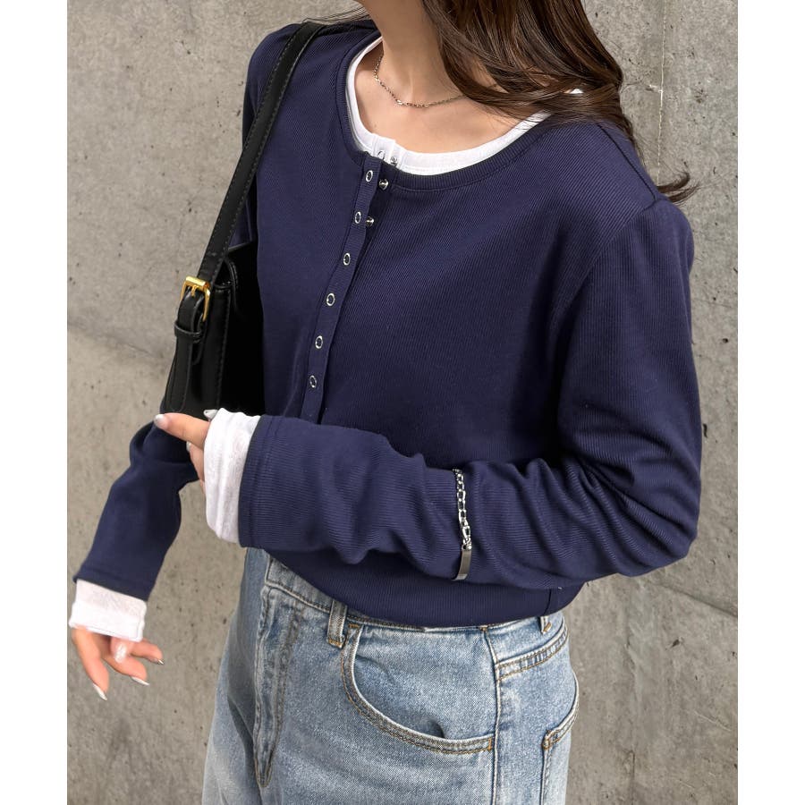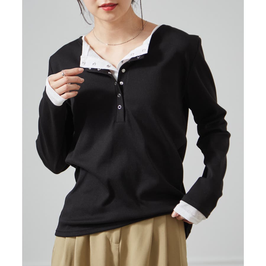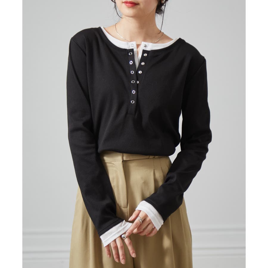 ・1枚でレイヤード風の着こなしを楽しめるカジュアルトップス。