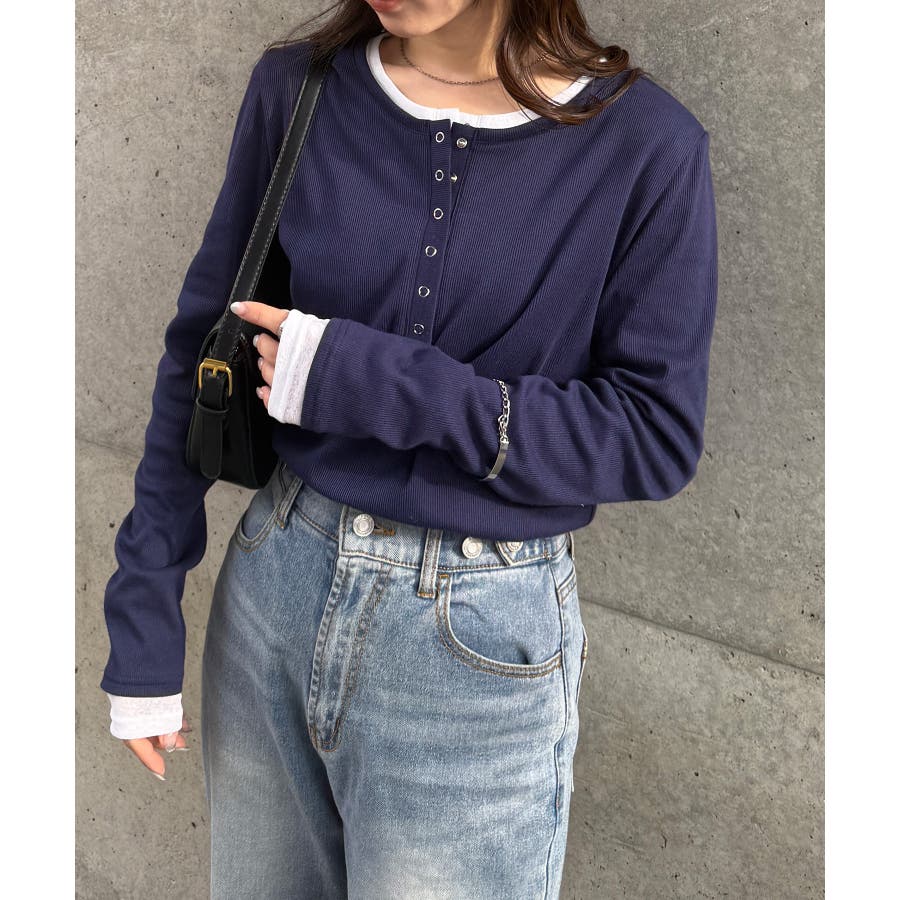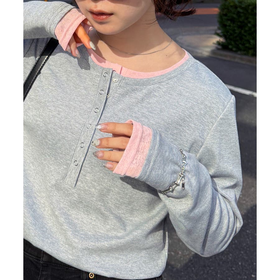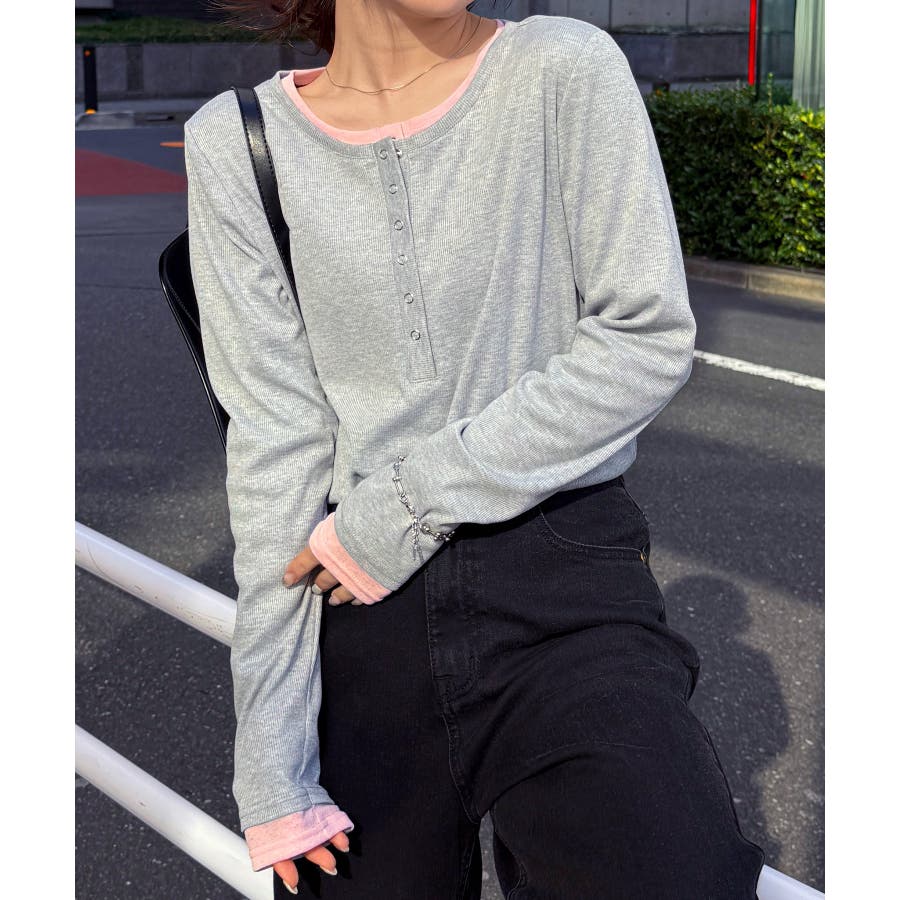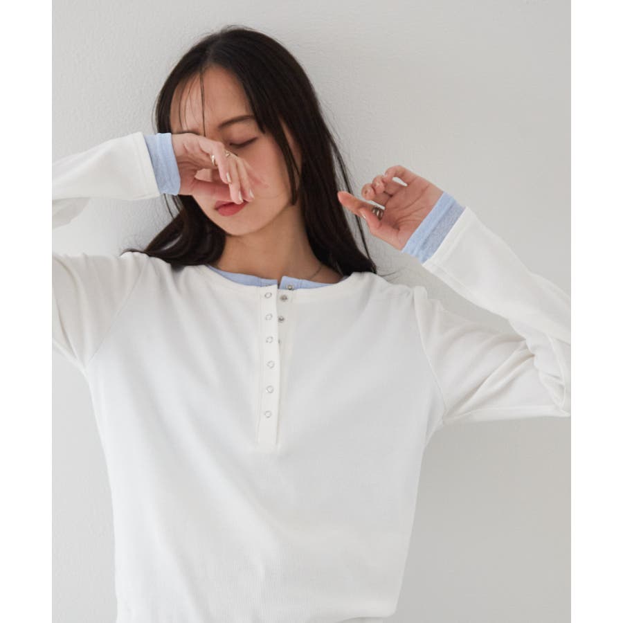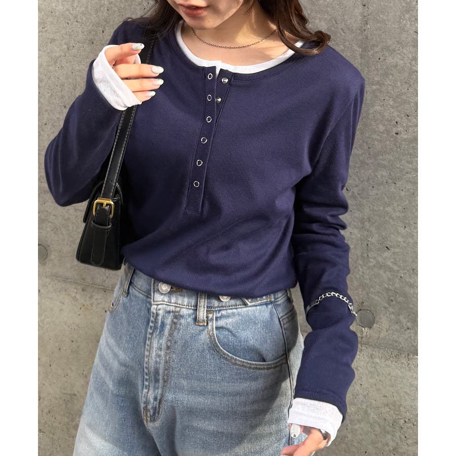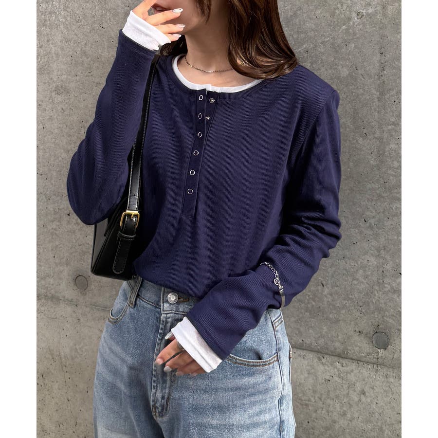 ・1枚でレイヤード風の着こなしを楽しめるカジュアルトップス。
