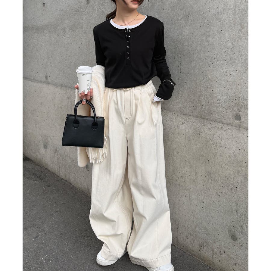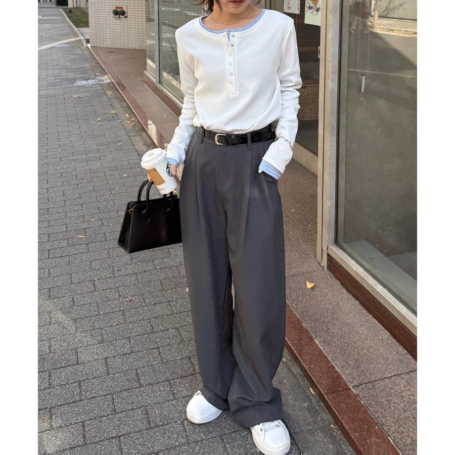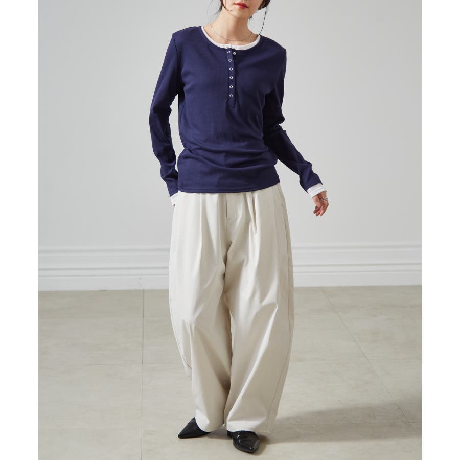 ボタンのアレンジ次第で表情が変わるヘンリーネックは、こなれ感を求める大人にぴったりの一着です。