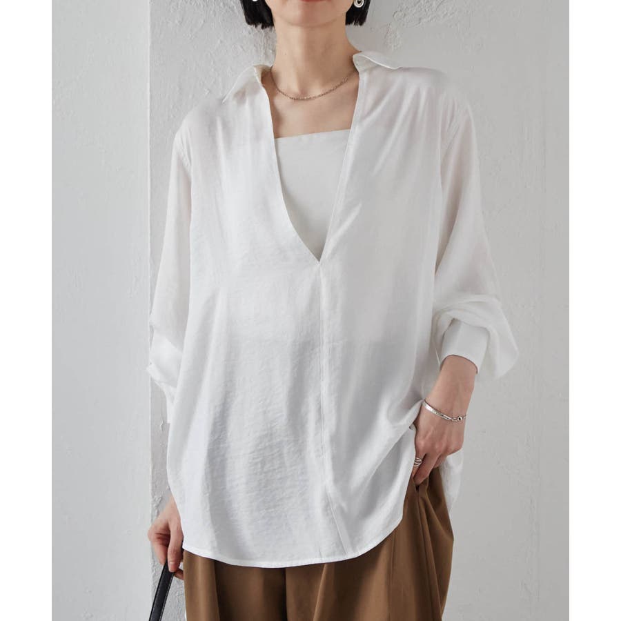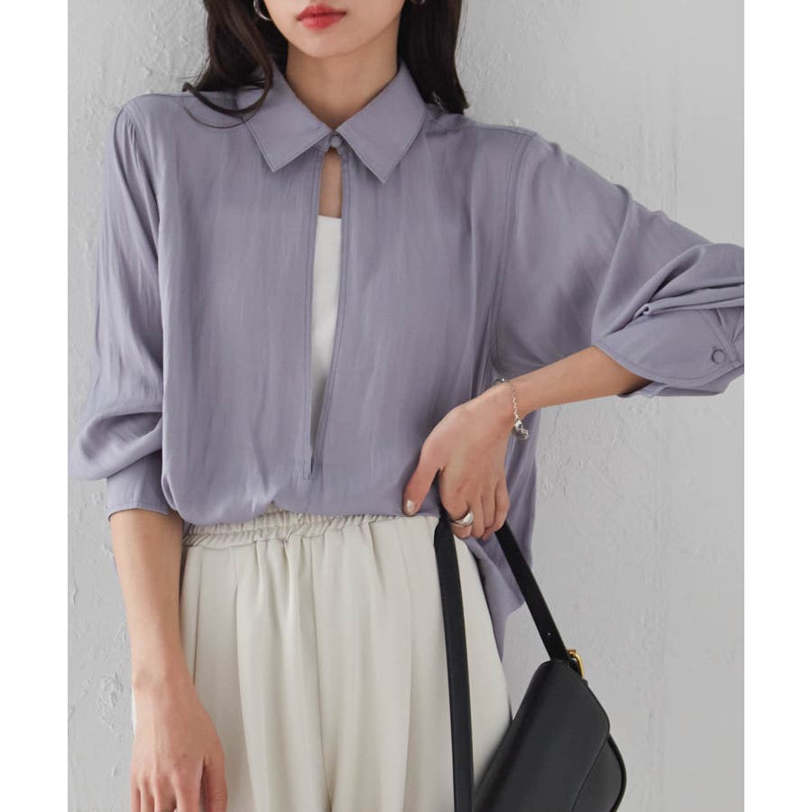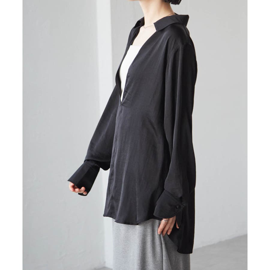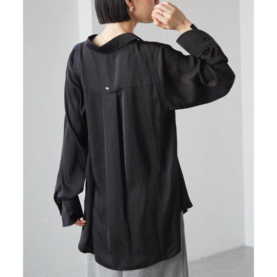 ・上品な光沢感が魅力のサテン生地で仕立てたスキッパーシャツ