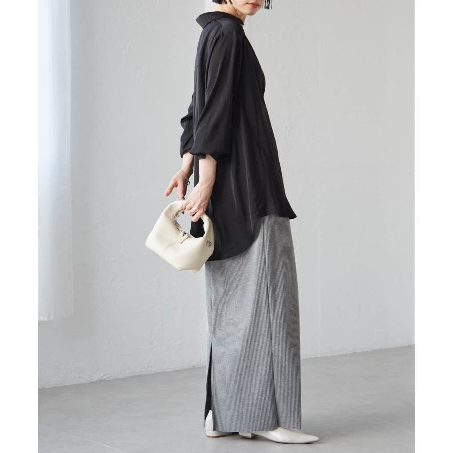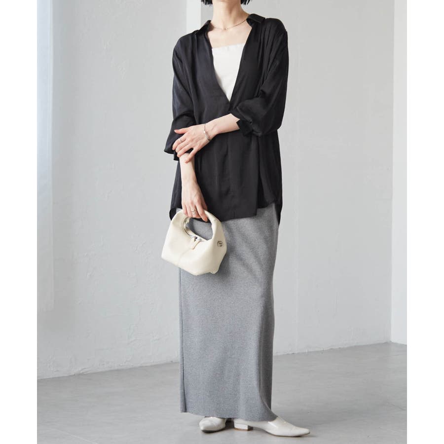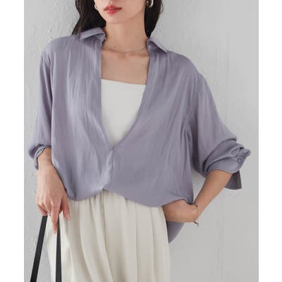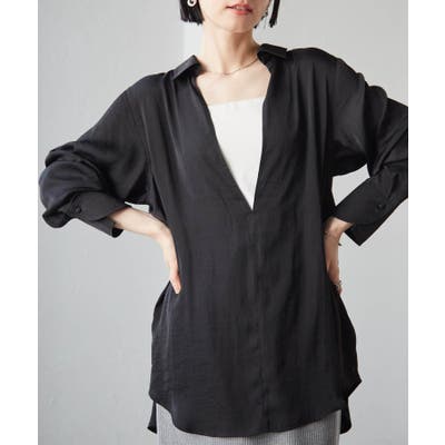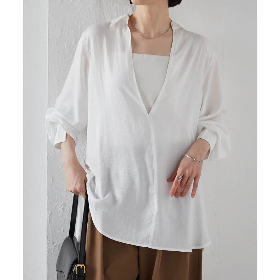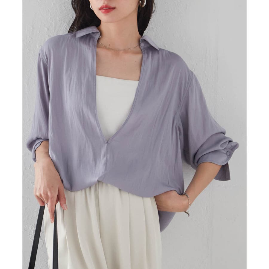・上品な光沢感が魅力のサテン生地で仕立てたスキッパーシャツ