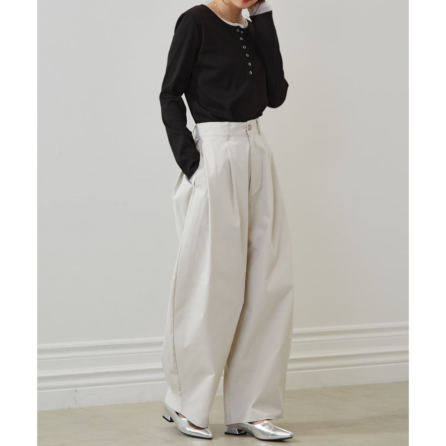 サイドタックと上品なコクーンラインで魅了するこだわりシルエットパンツ♪