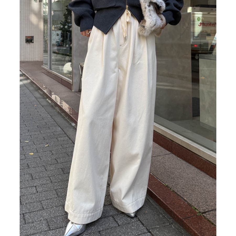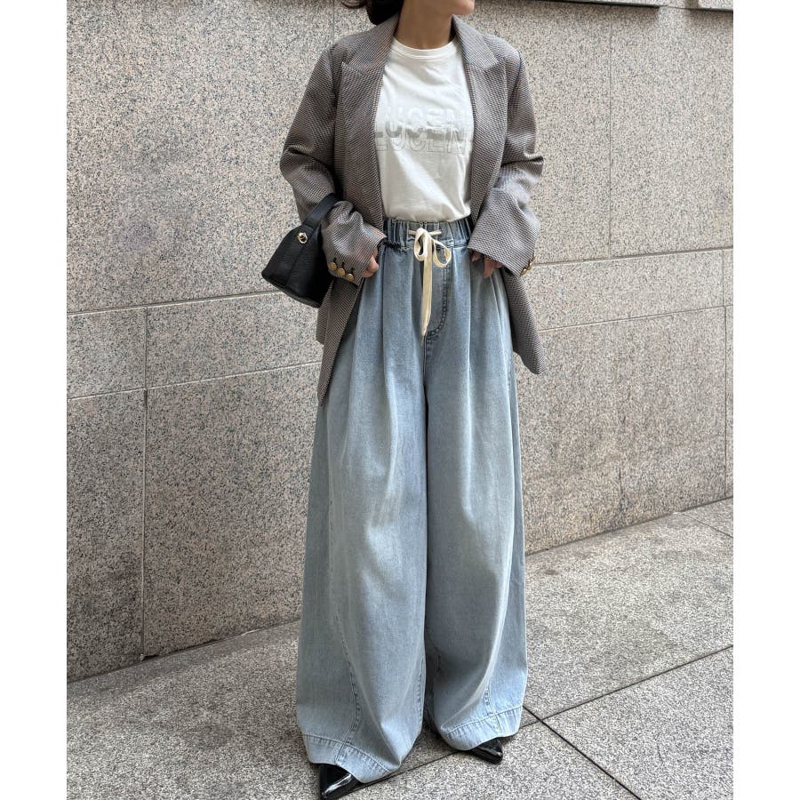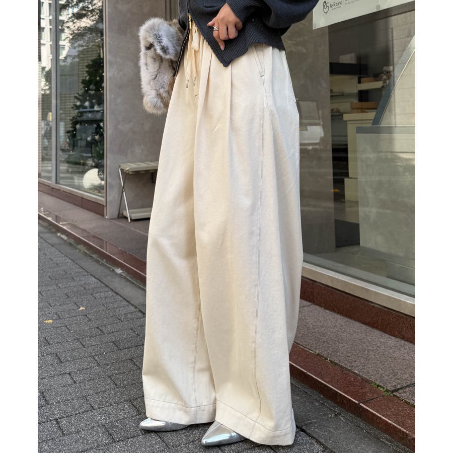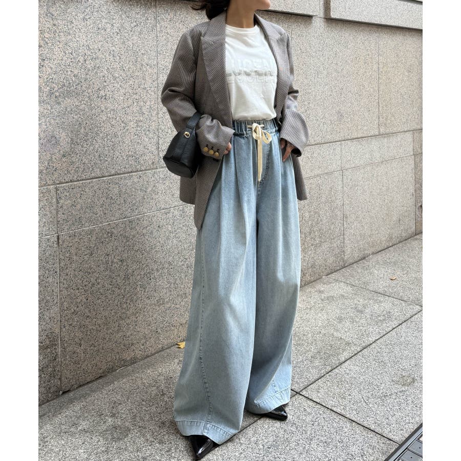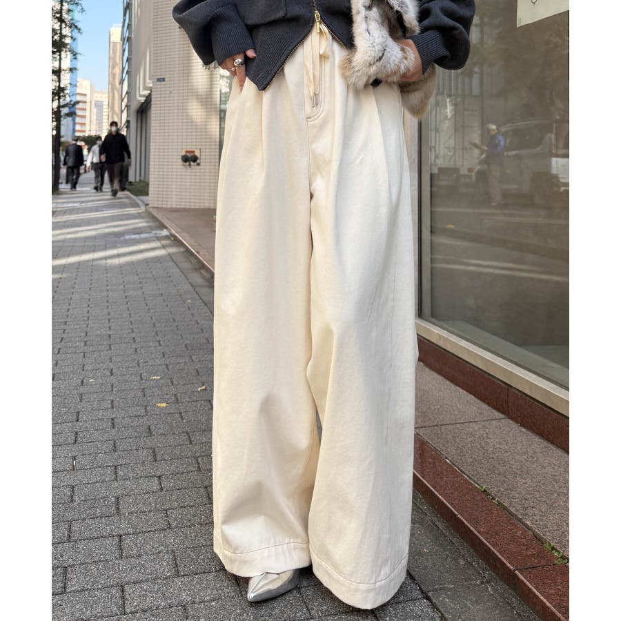 ワイドシルエットなので、少し丈が短いトップスとも相性抜群です◎