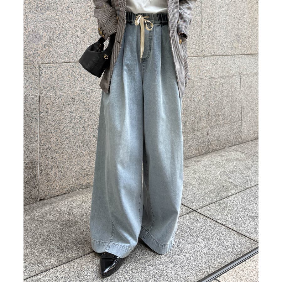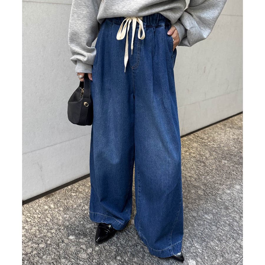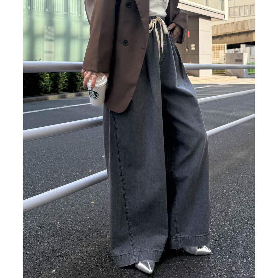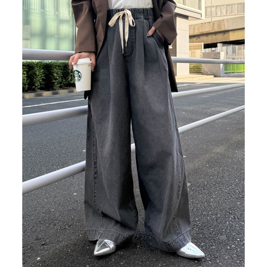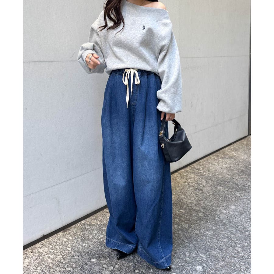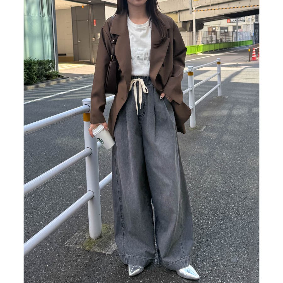ワイドシルエットなので、少し丈が短いトップスとも相性抜群です◎