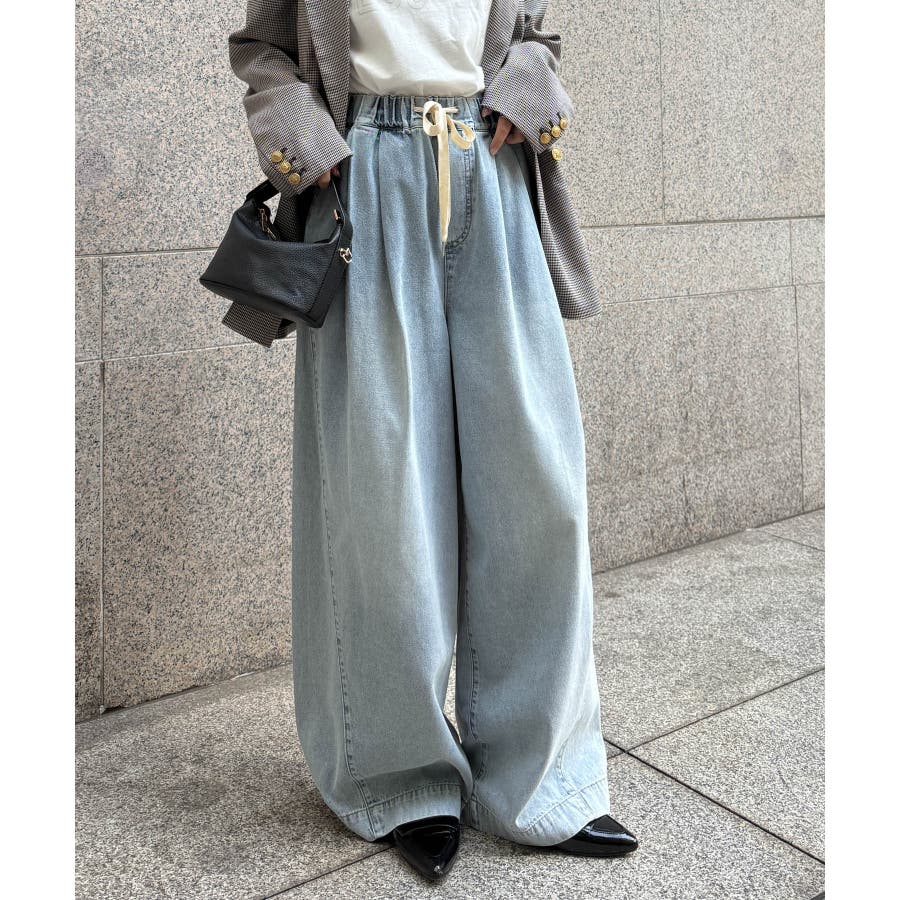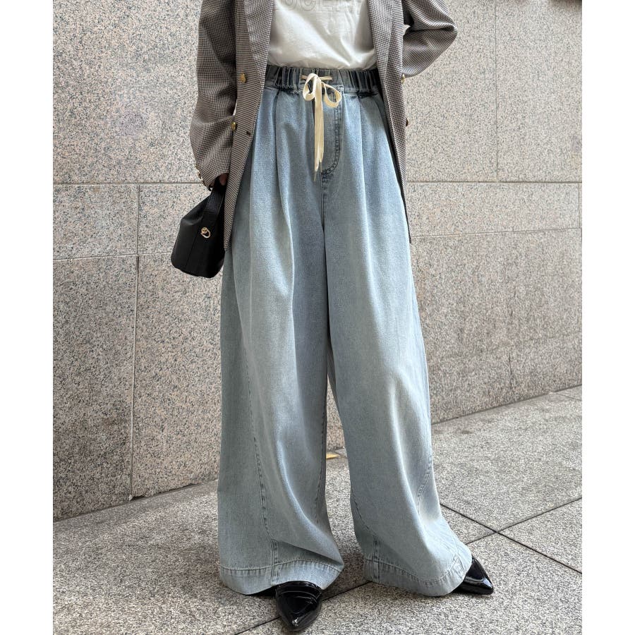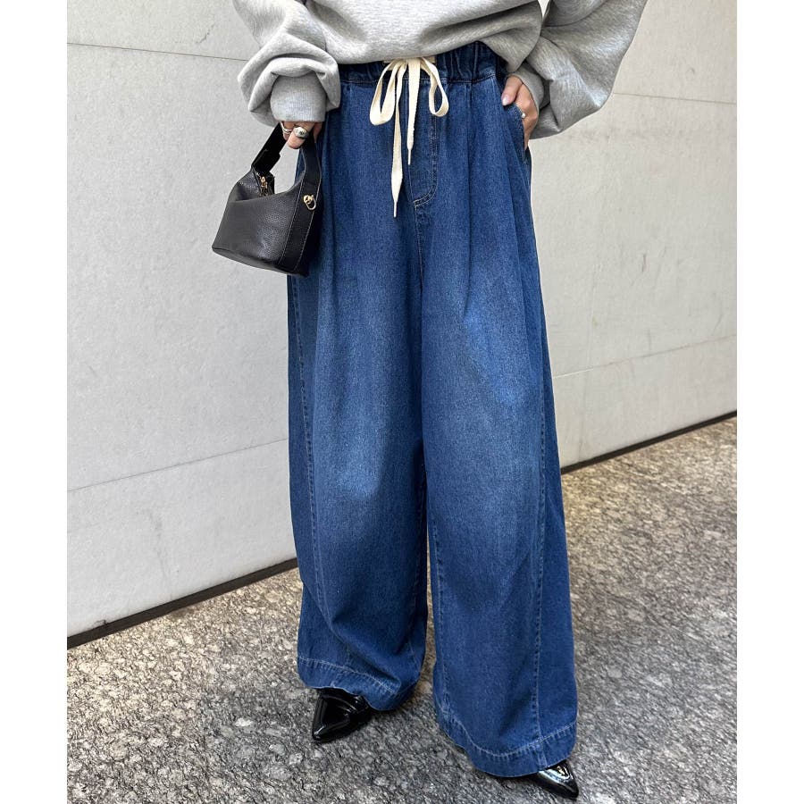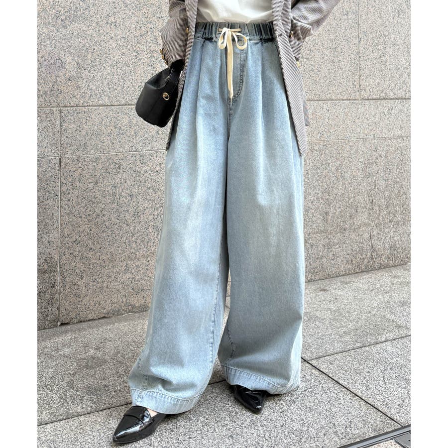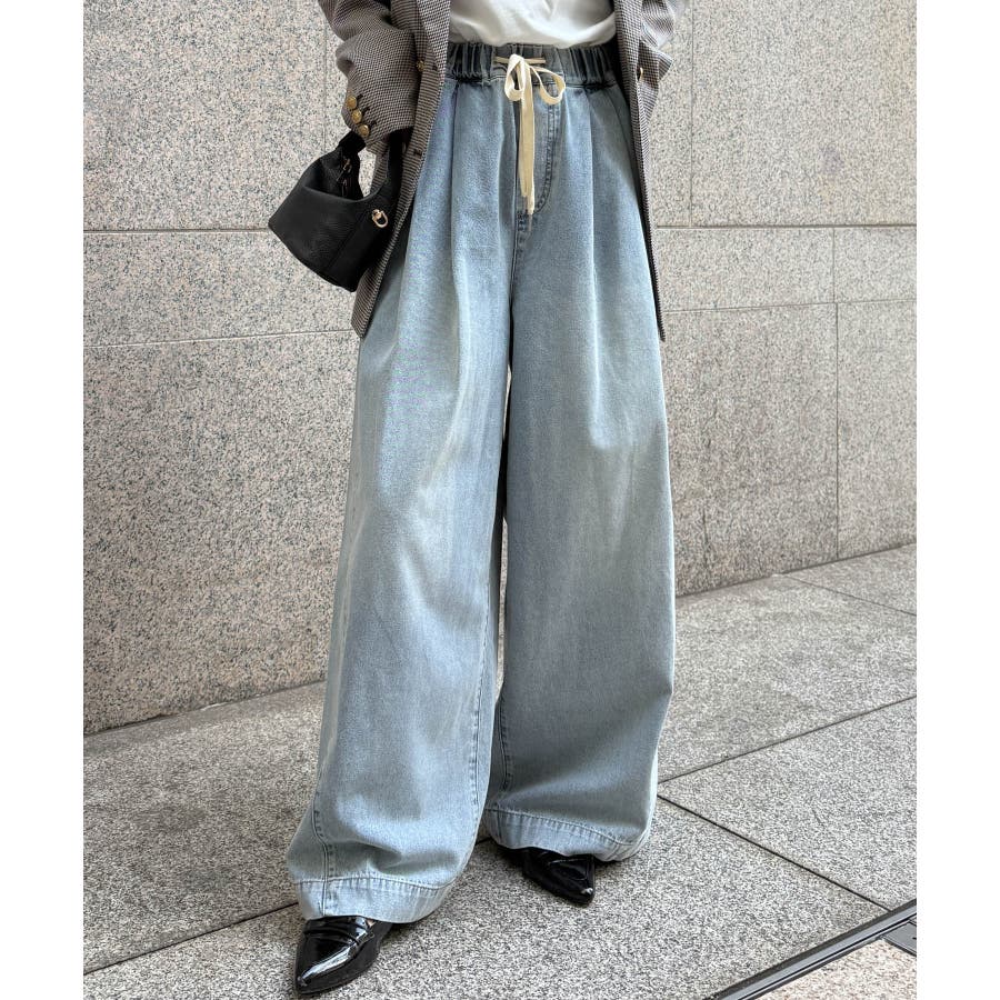 ワイドシルエットなので、少し丈が短いトップスとも相性抜群です◎