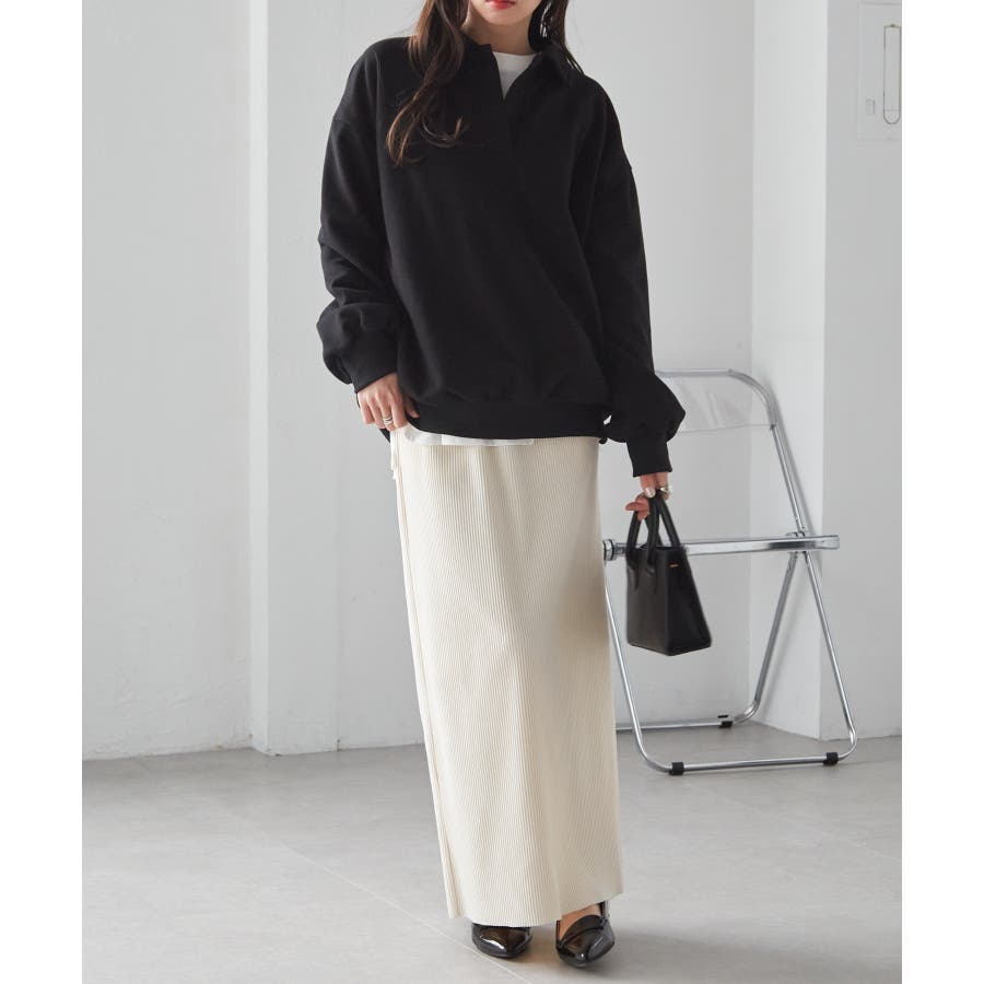 シーズンレスに着用できるので、ニットやアウターと合わせてもすっきりまとまります。