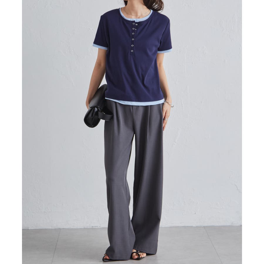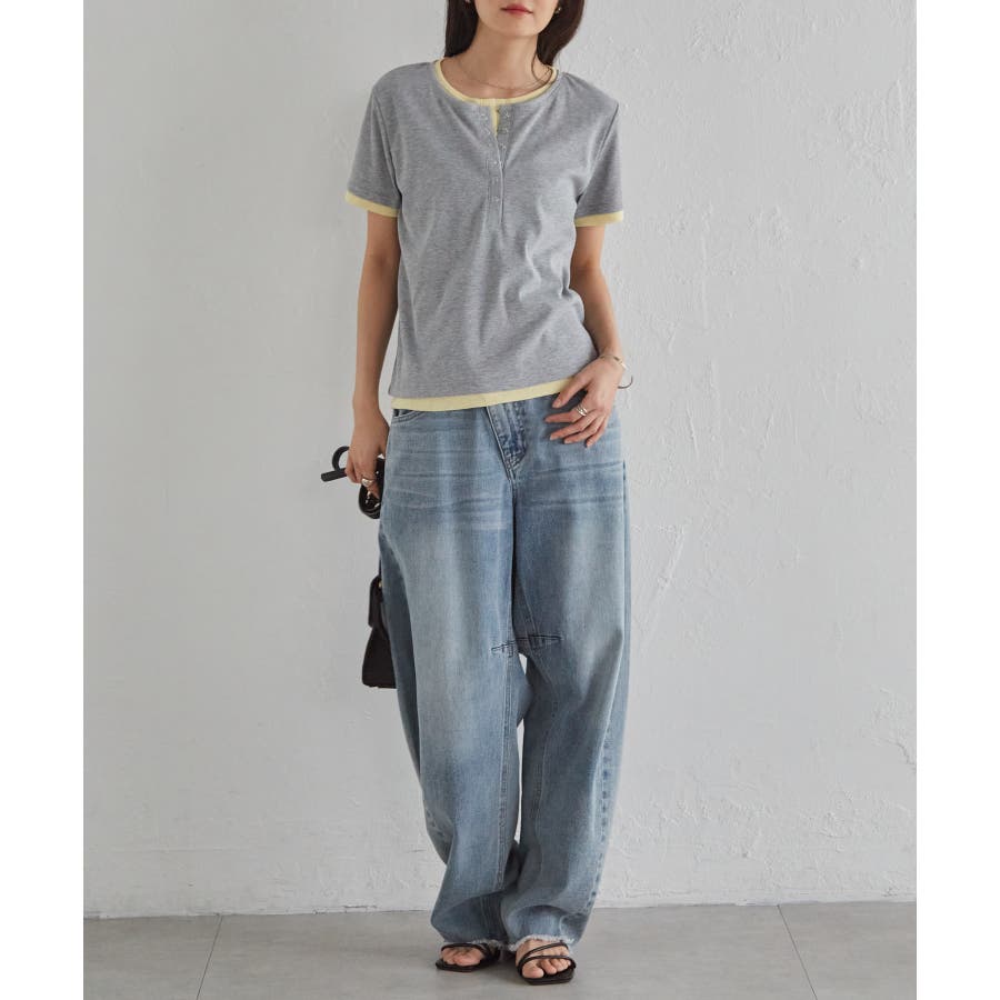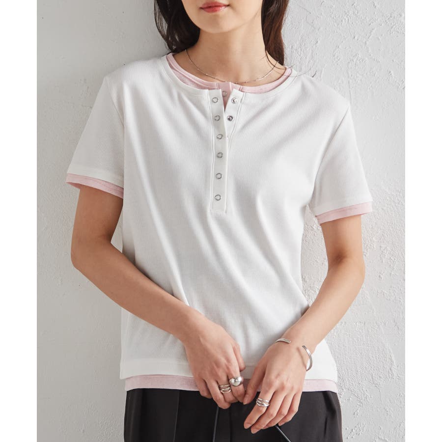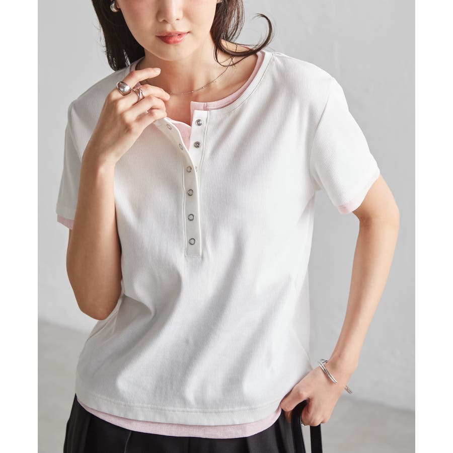 レイヤードヘンリーネックTシャツ