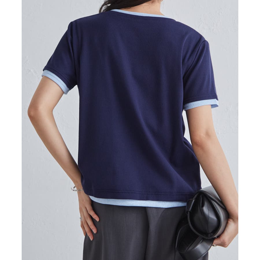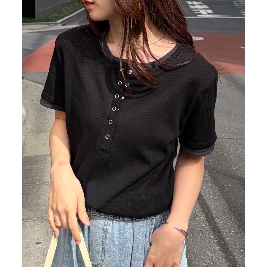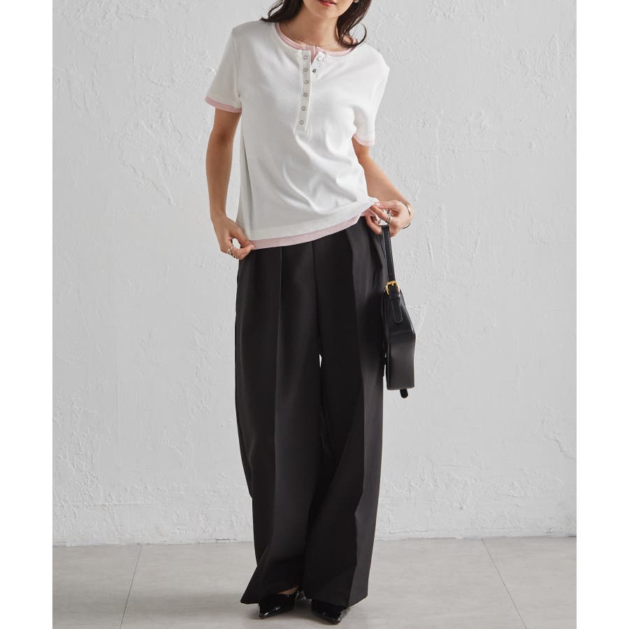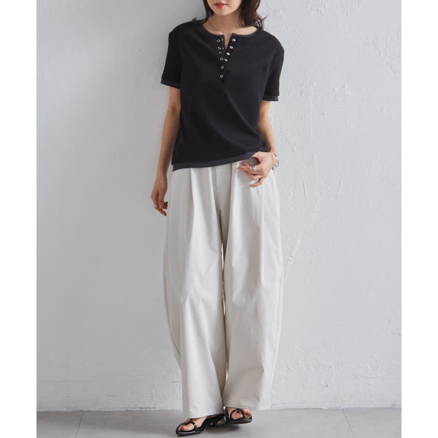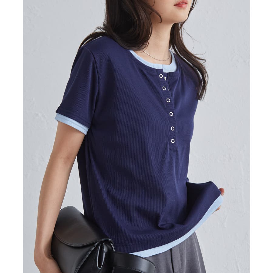 レイヤードヘンリーネックTシャツ