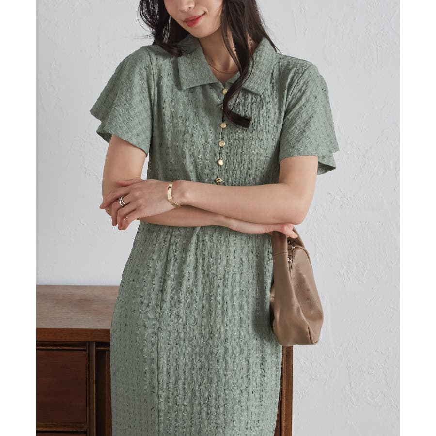 フレアスリーブマーメードポロワンピース