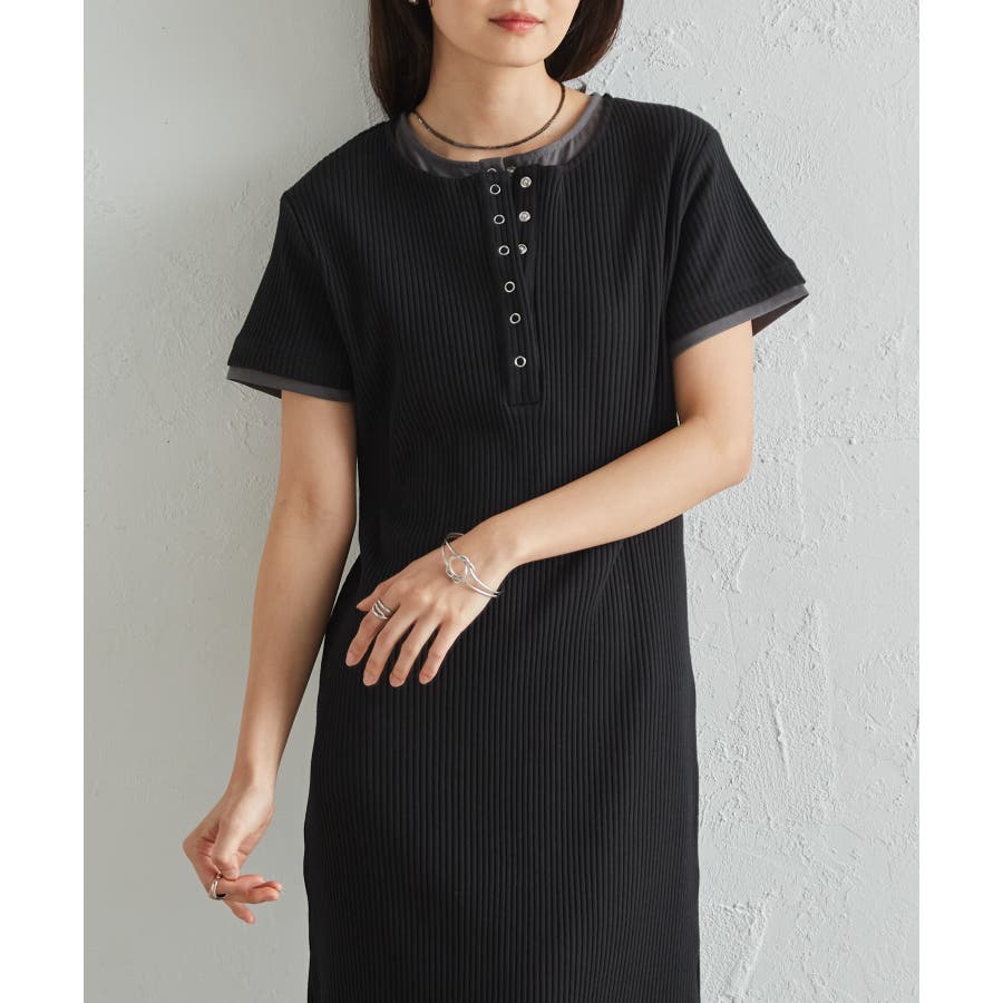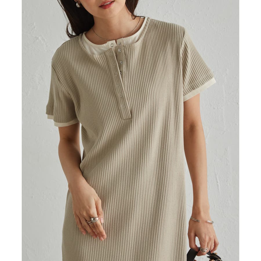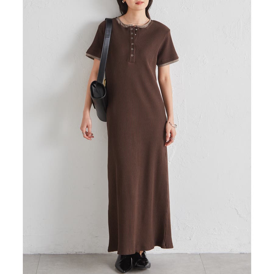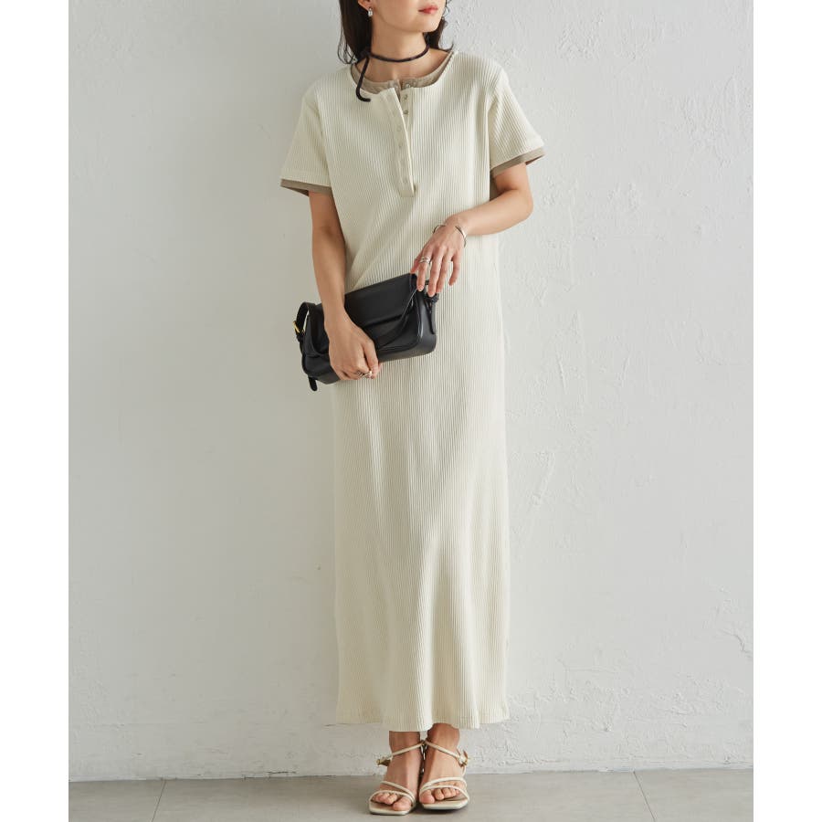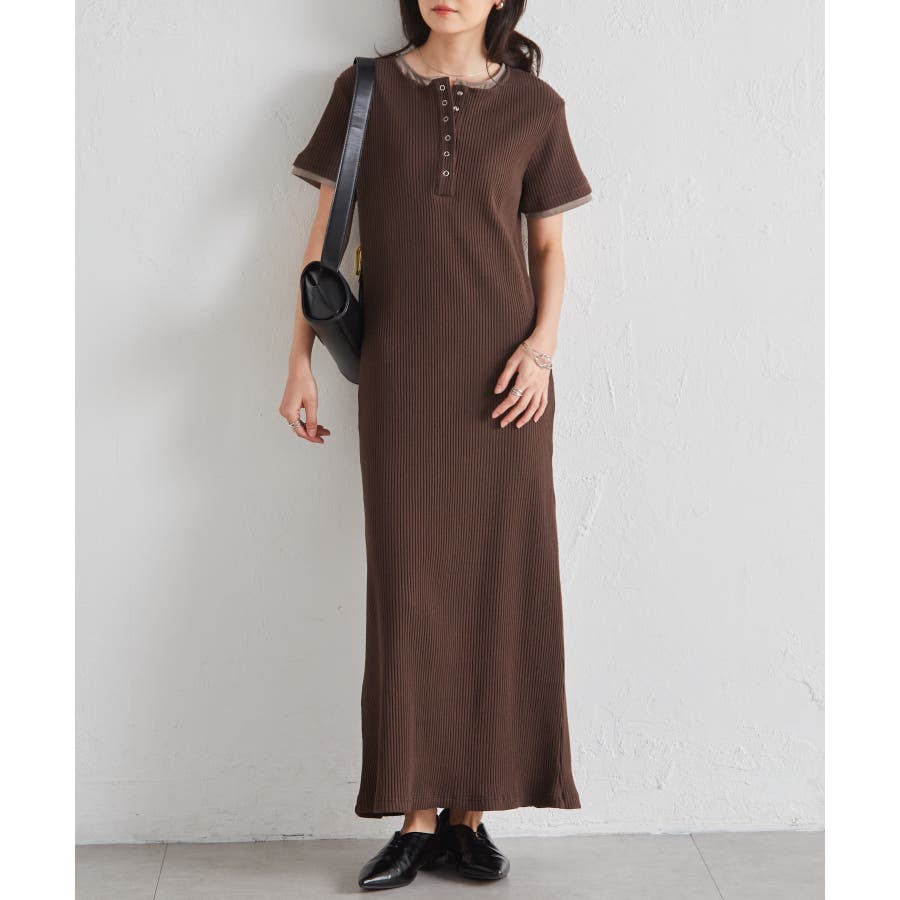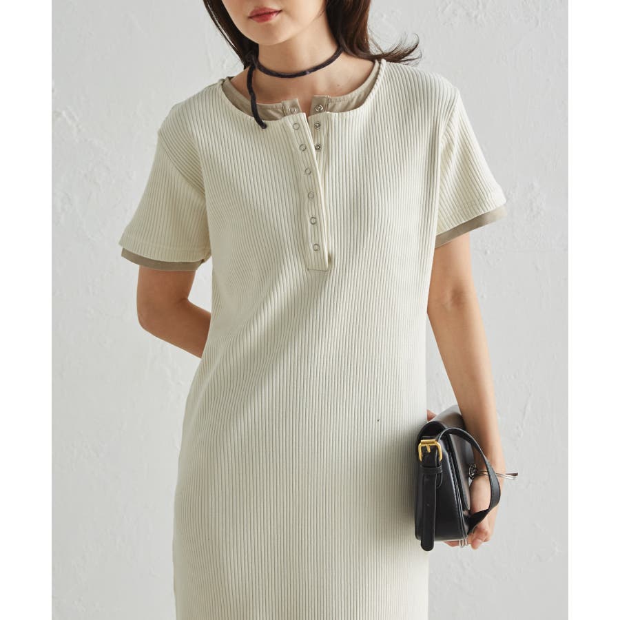 レイヤードヘンリーネックリブワンピース