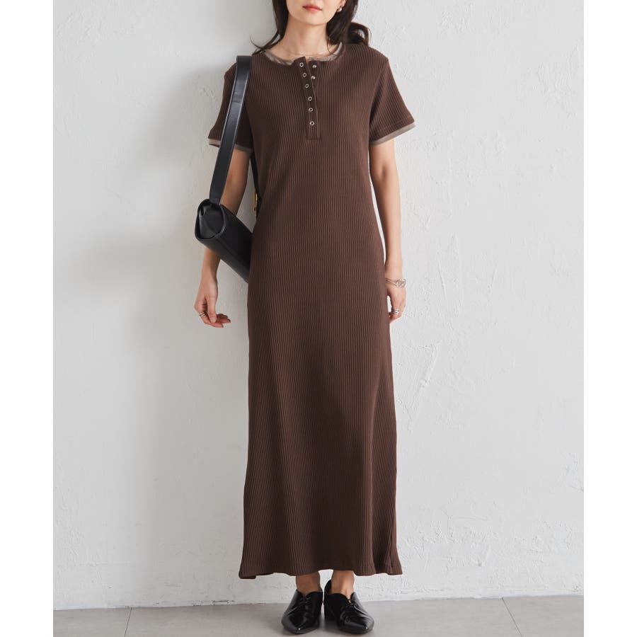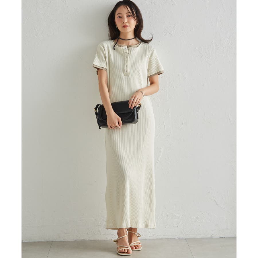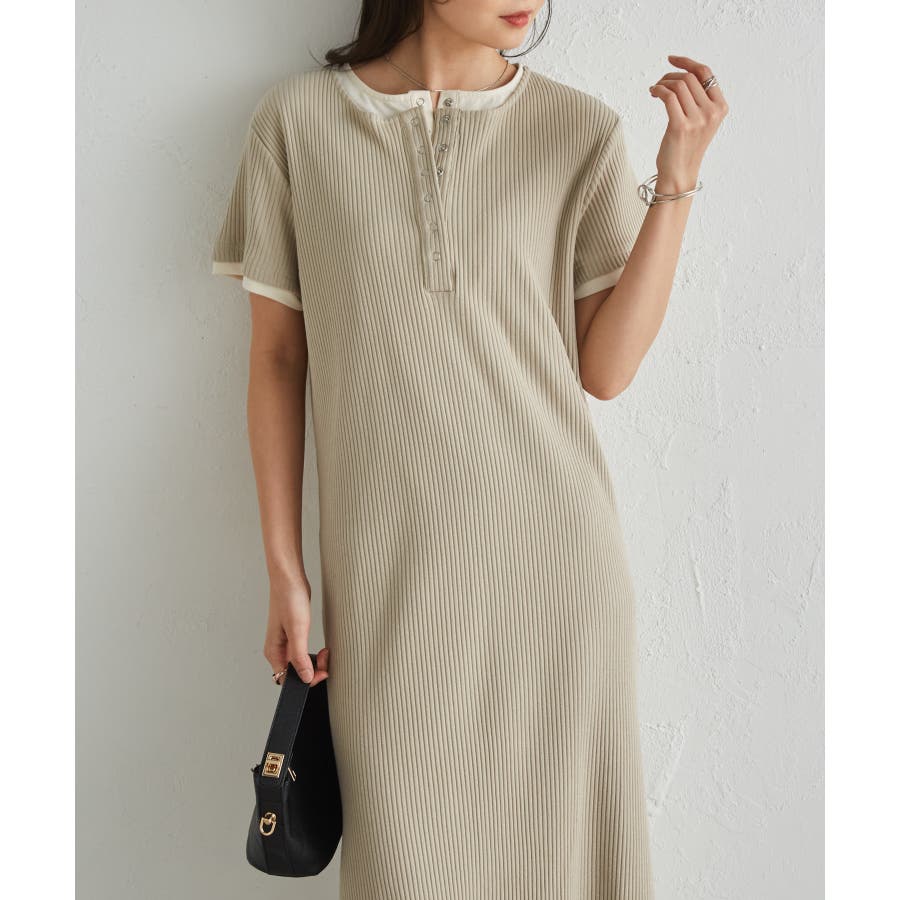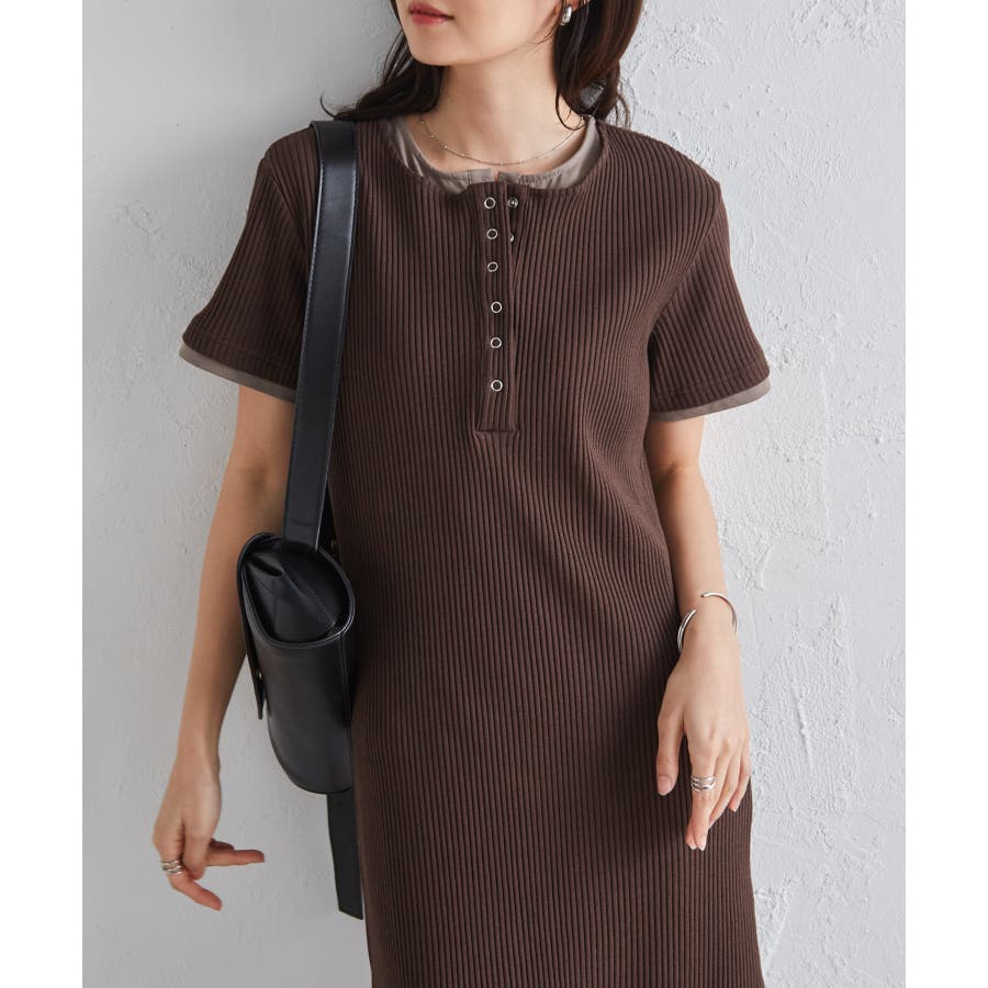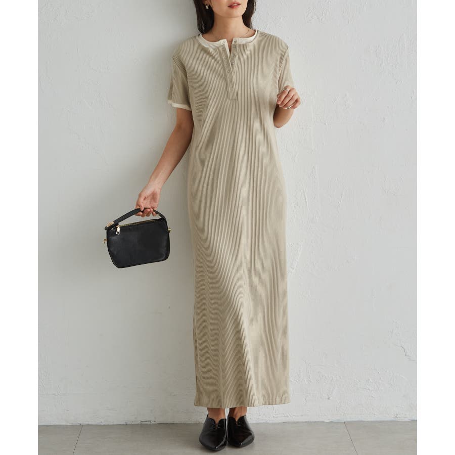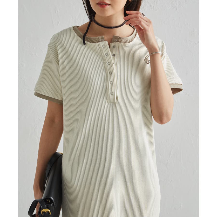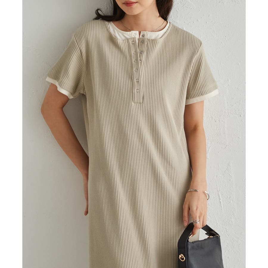 レイヤードヘンリーネックリブワンピース