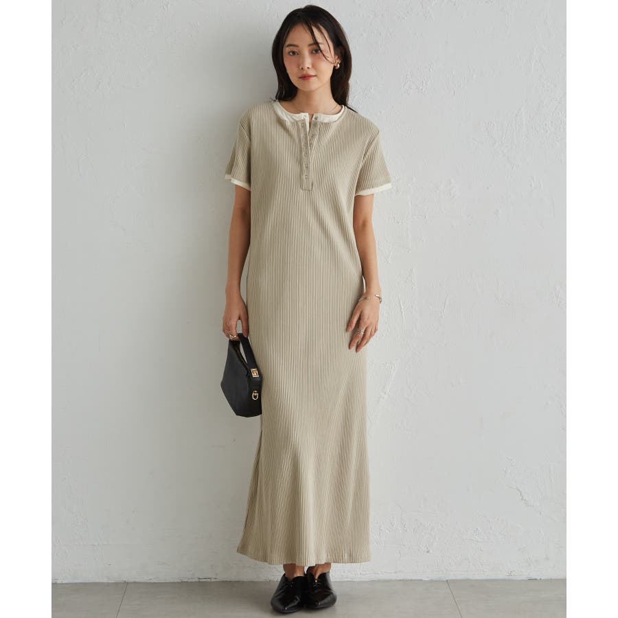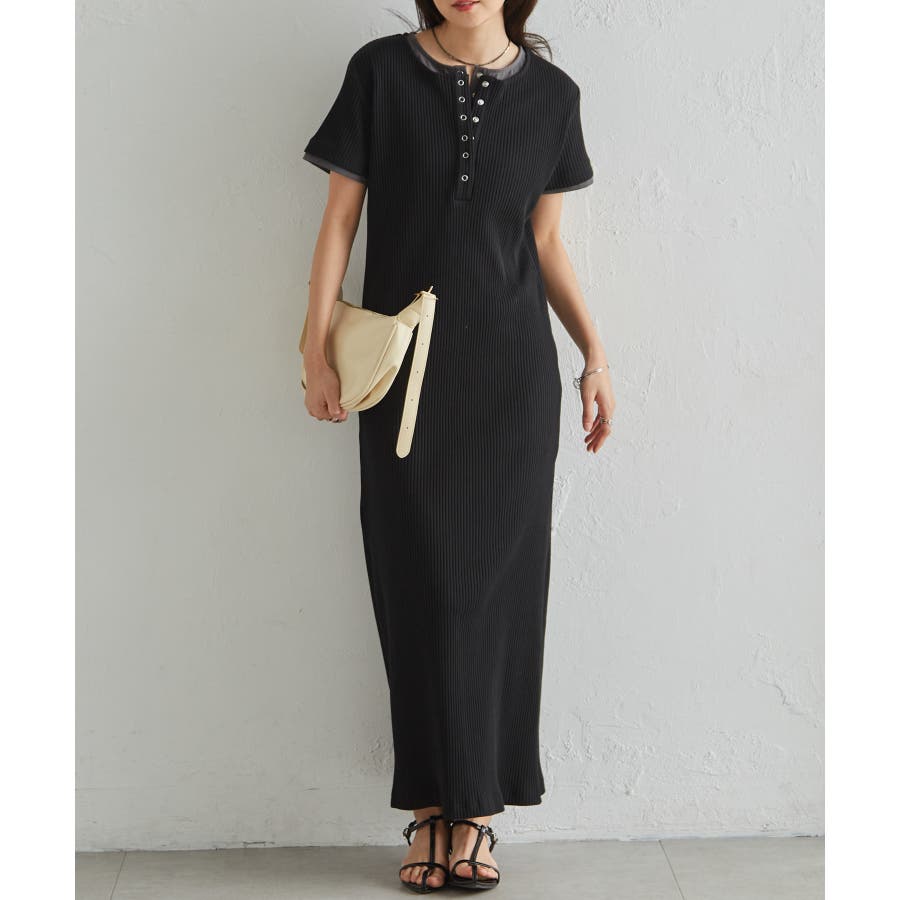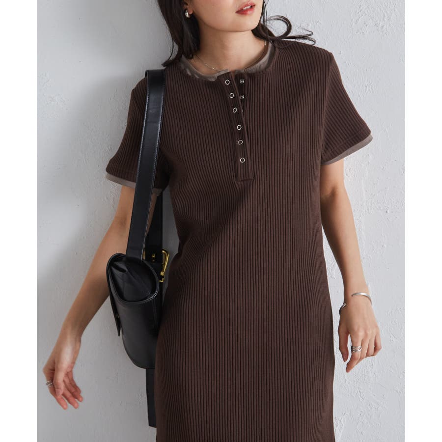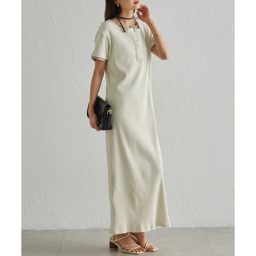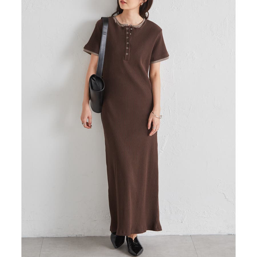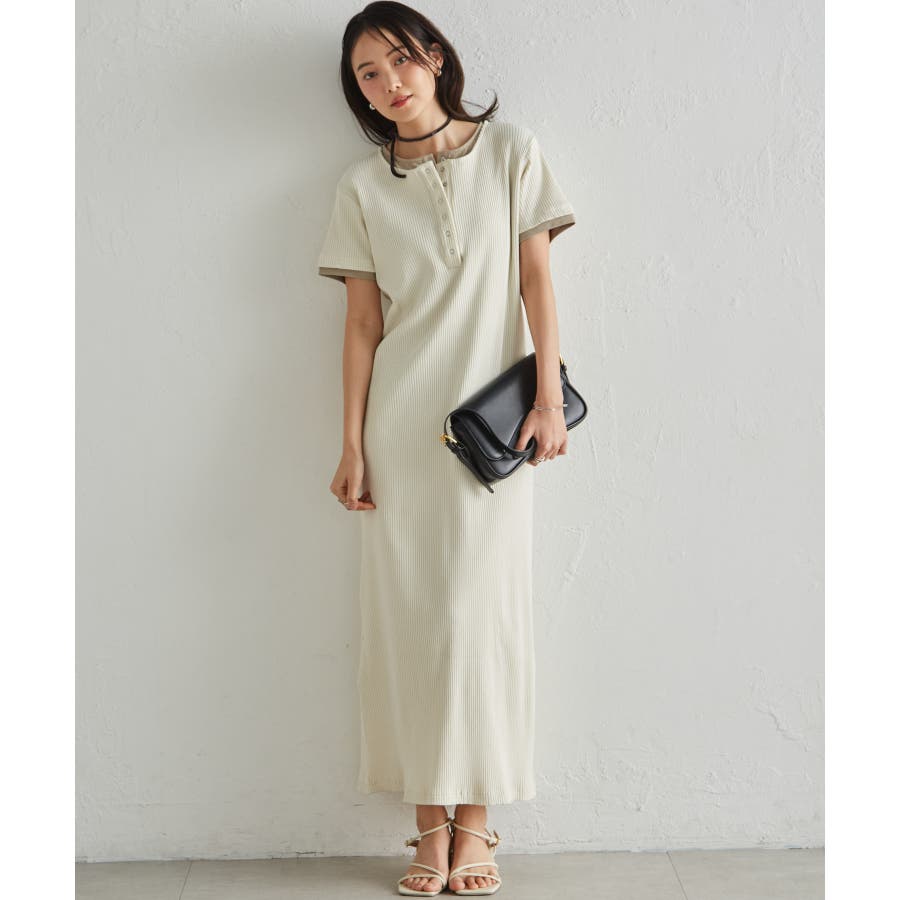 レイヤードヘンリーネックリブワンピース