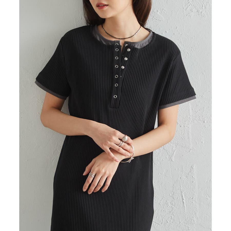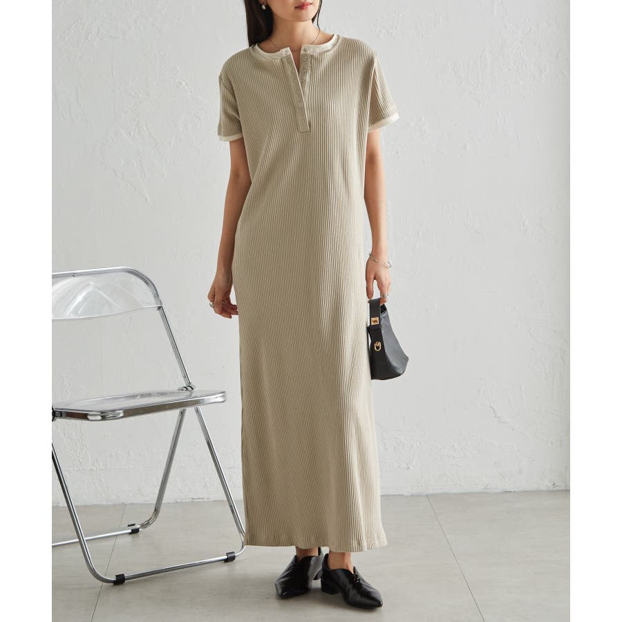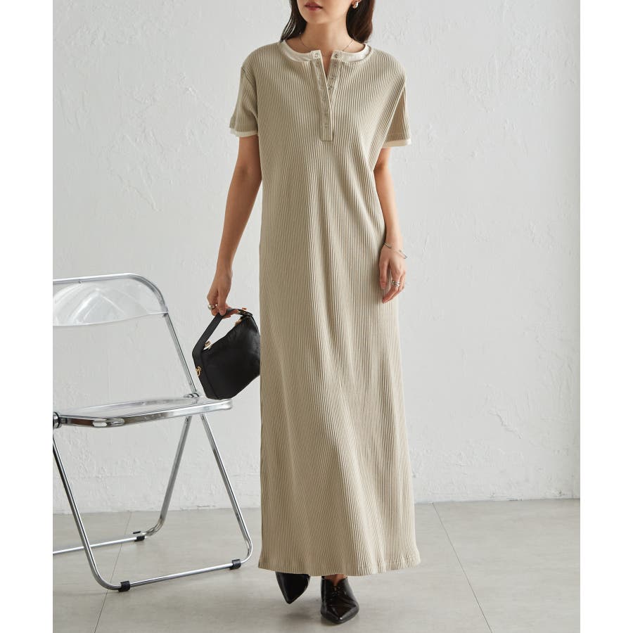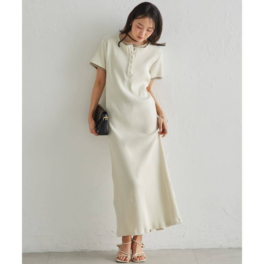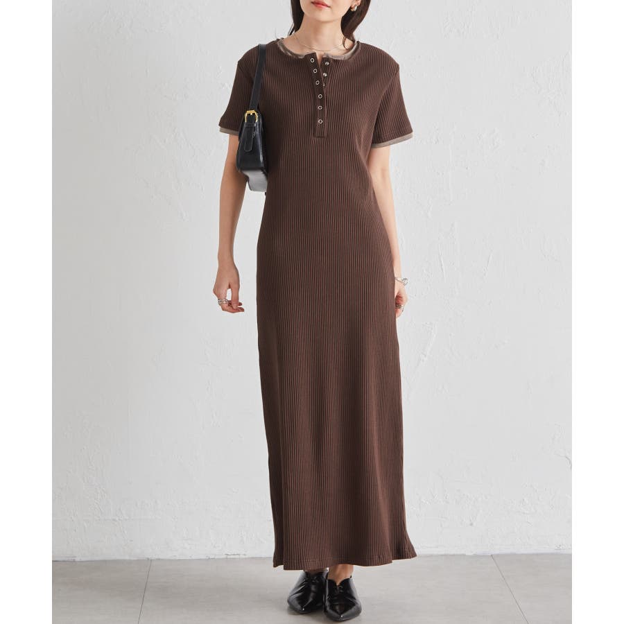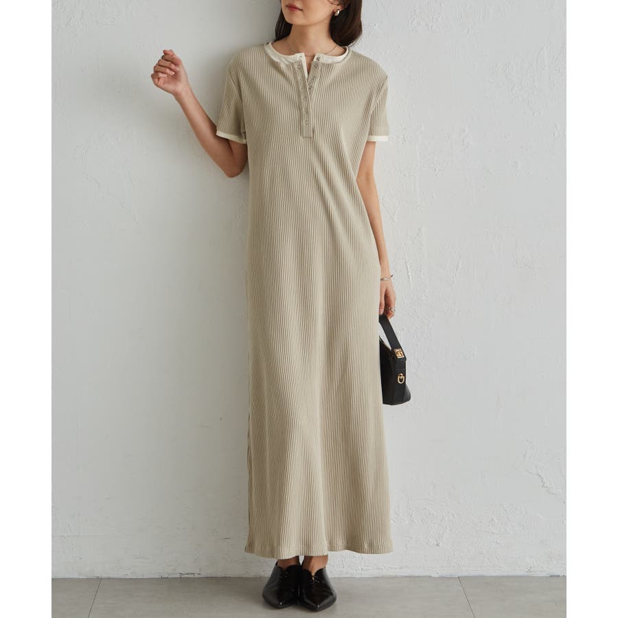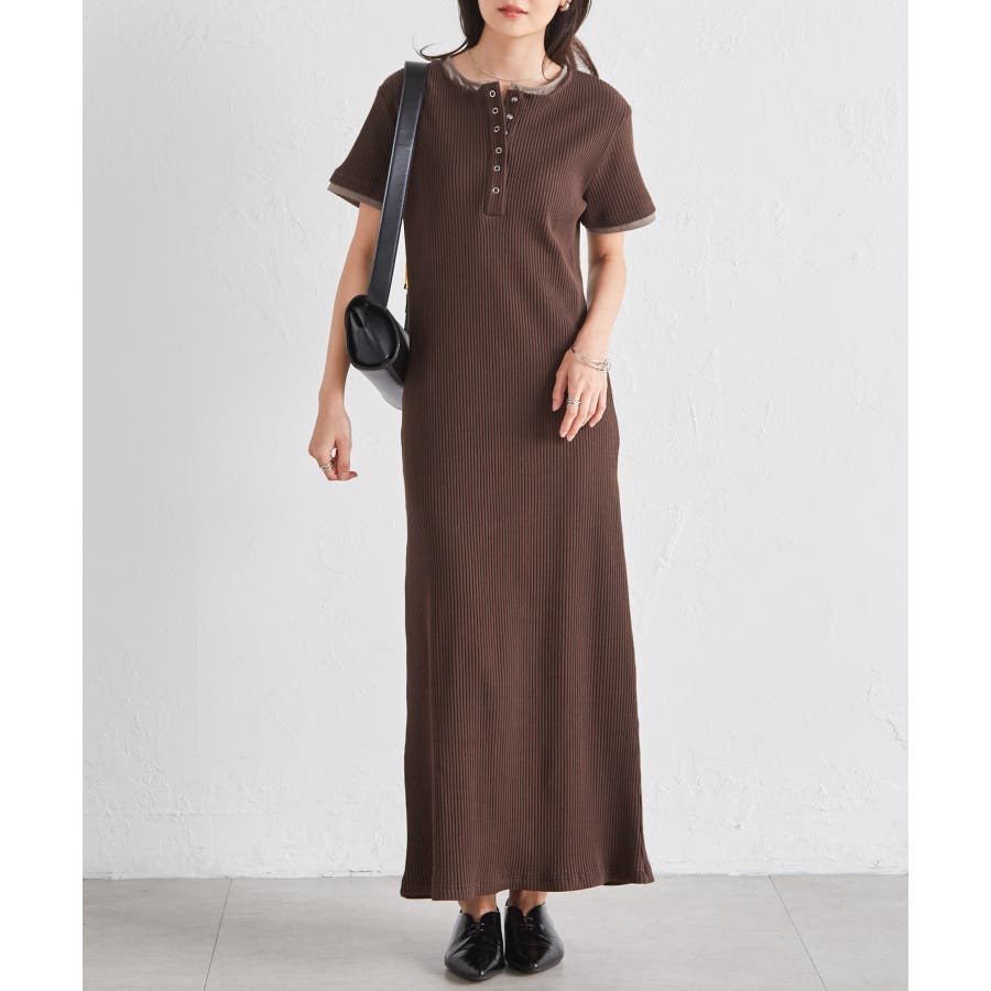 レイヤードヘンリーネックリブワンピース