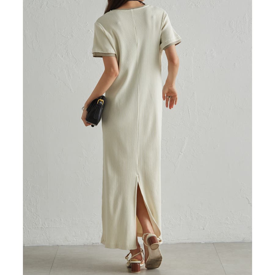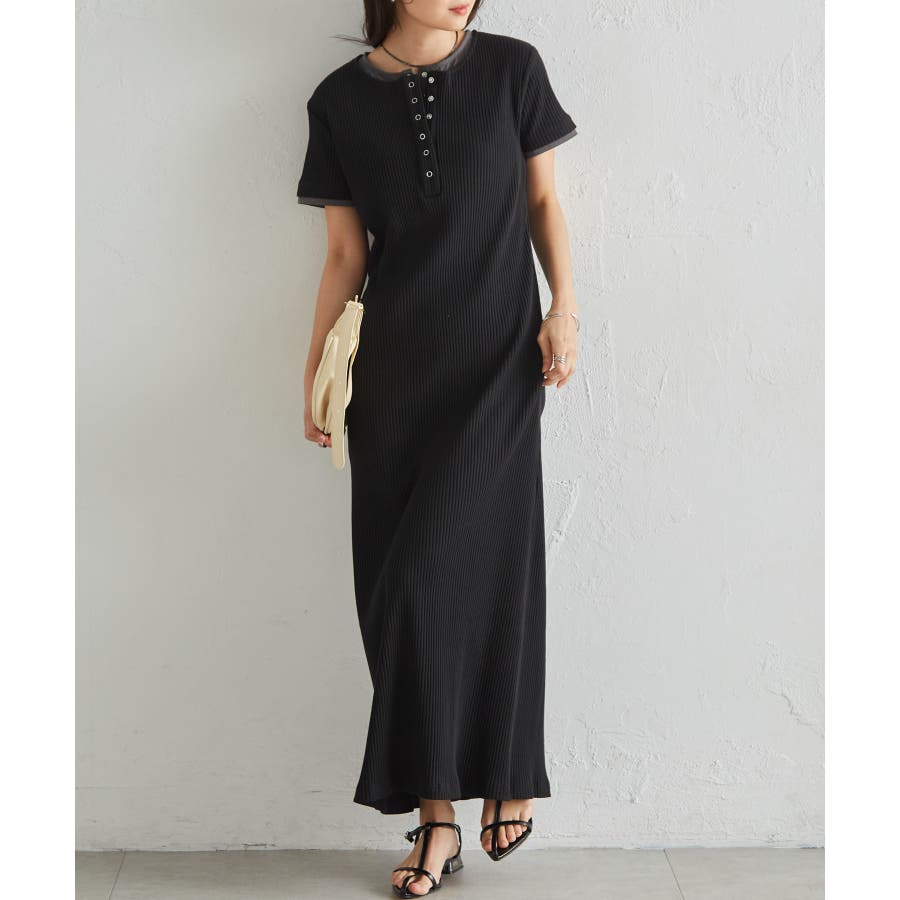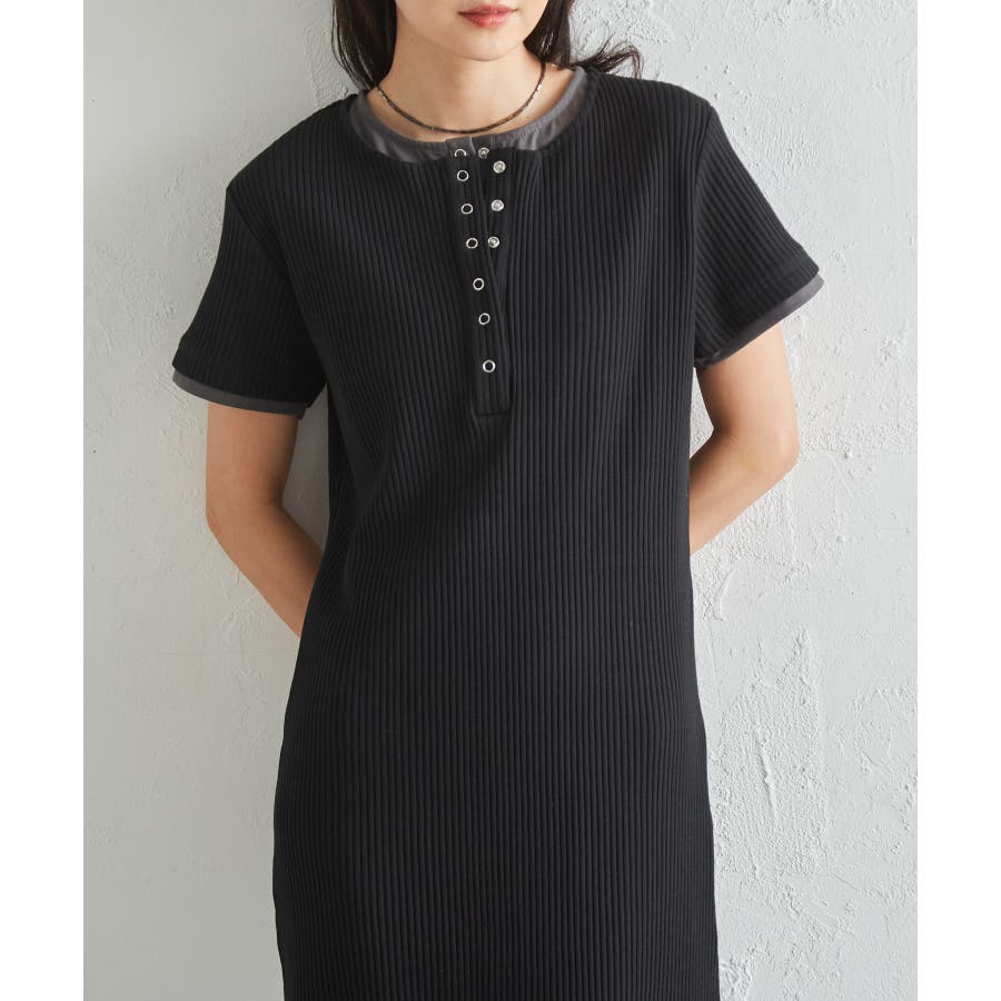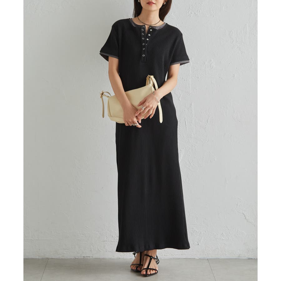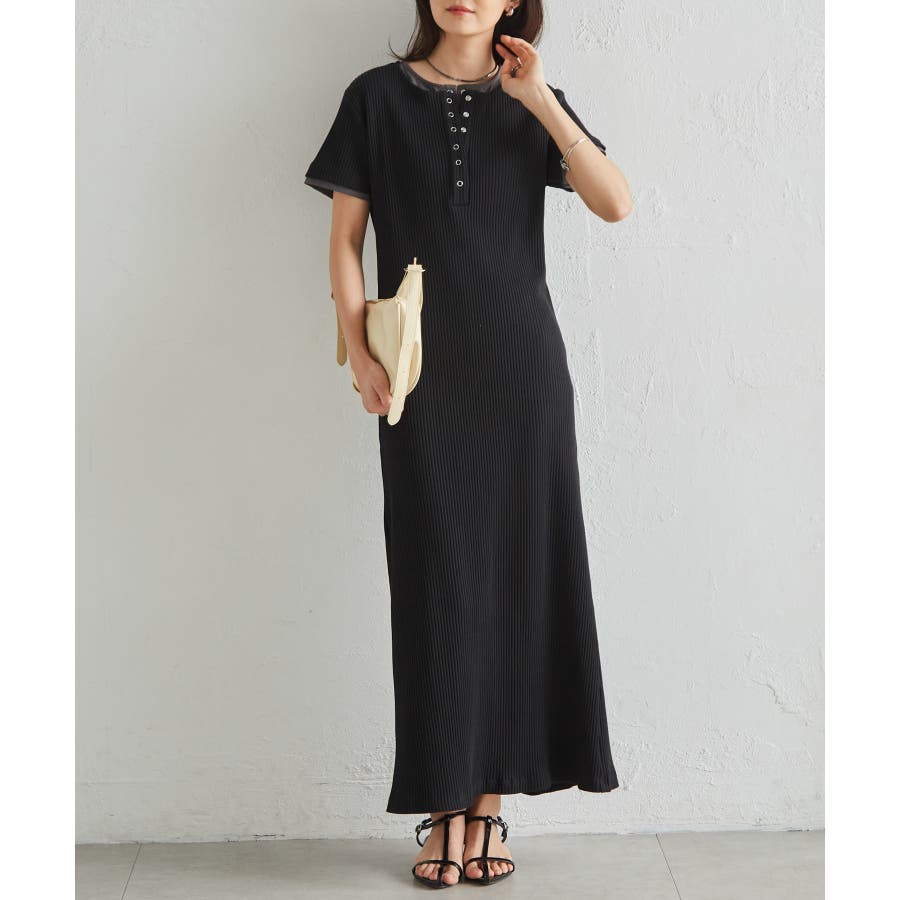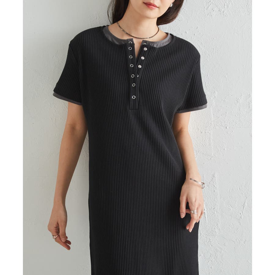 レイヤードヘンリーネックリブワンピース