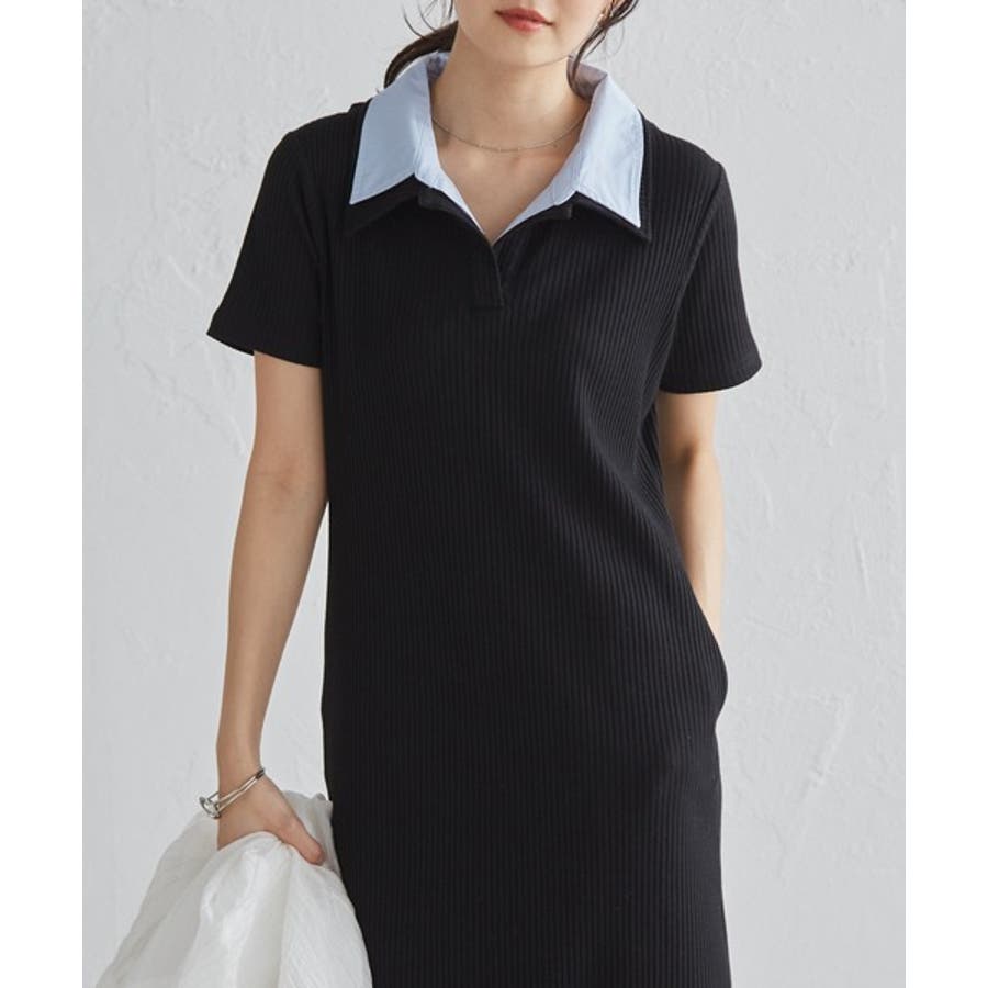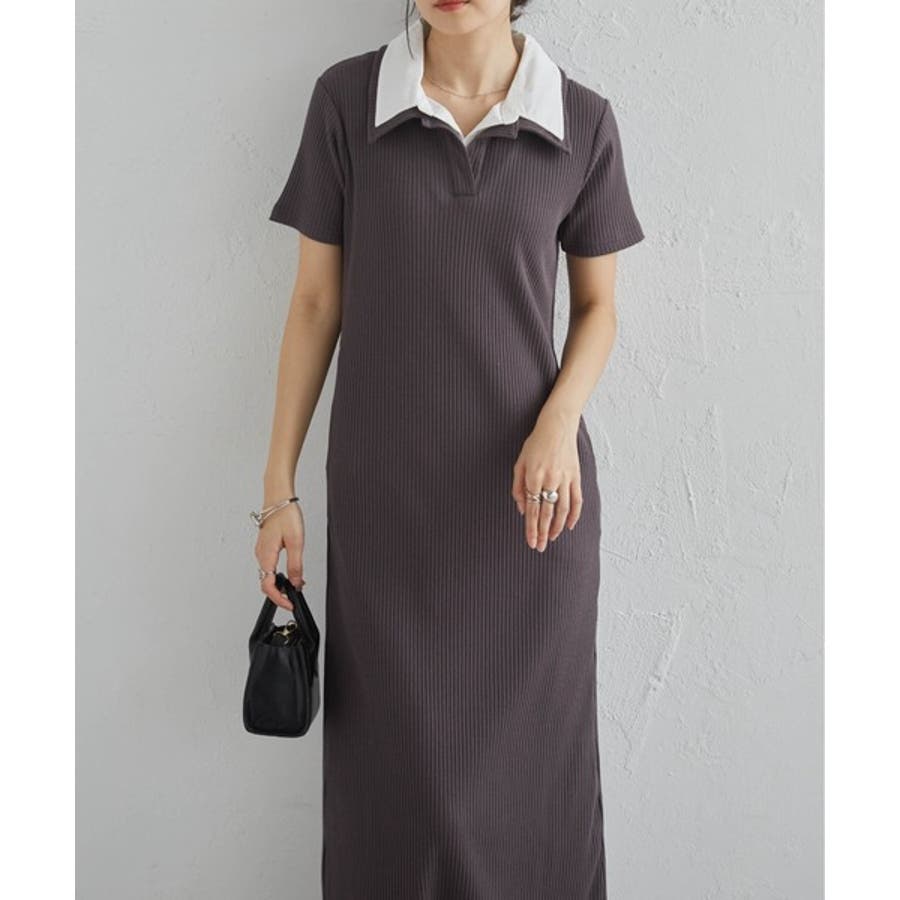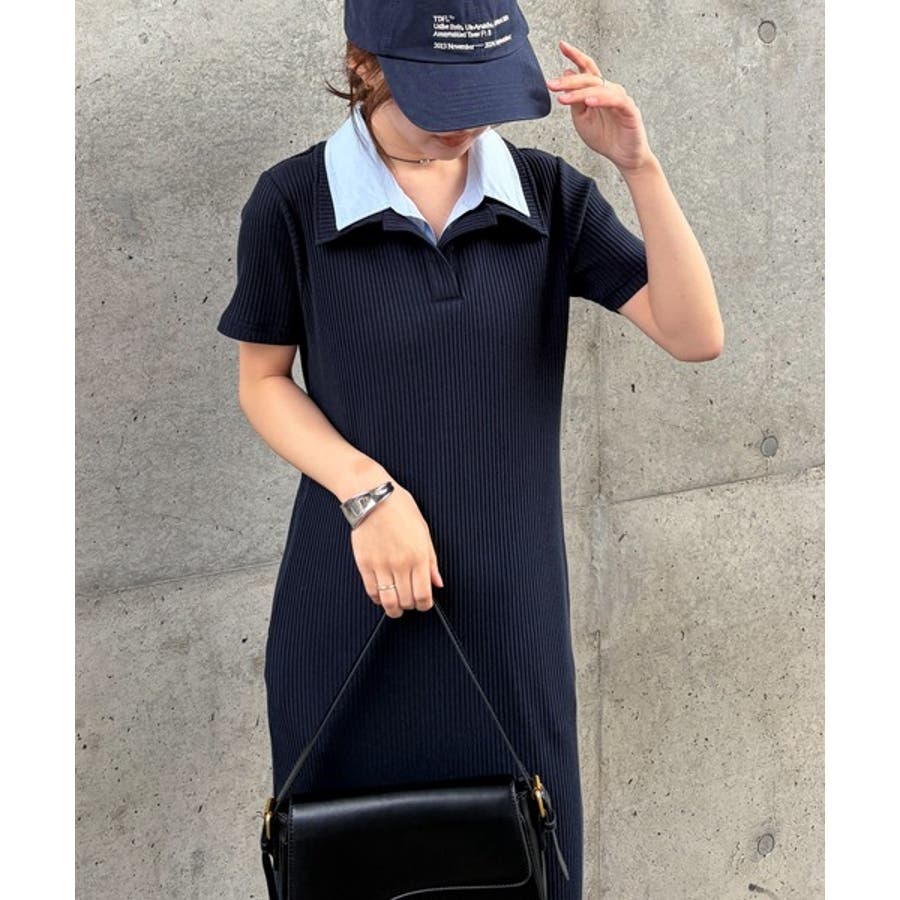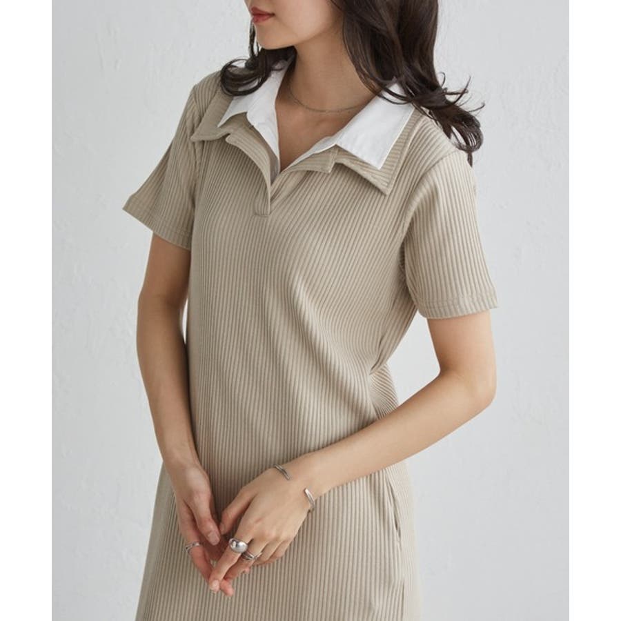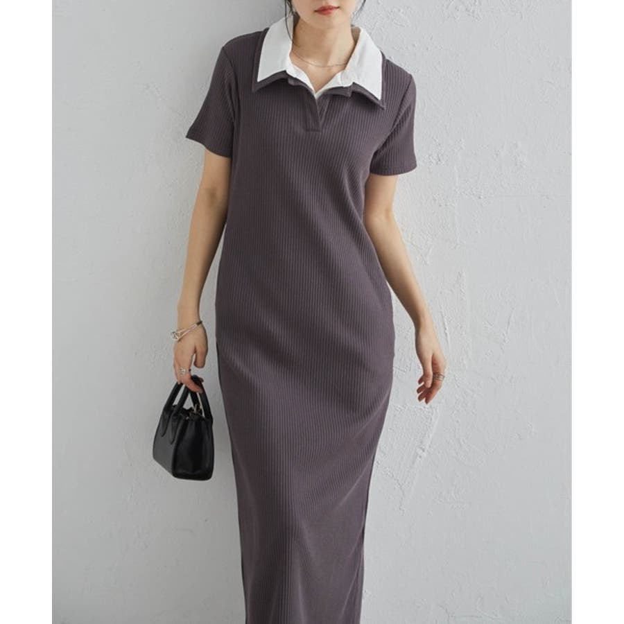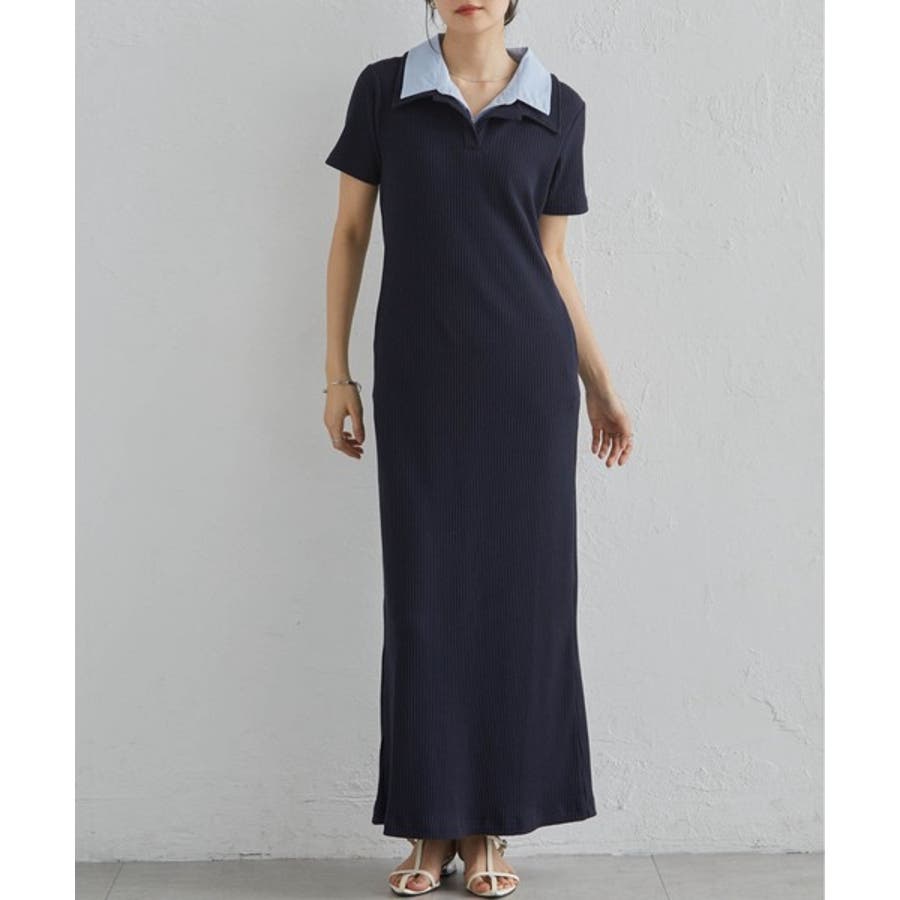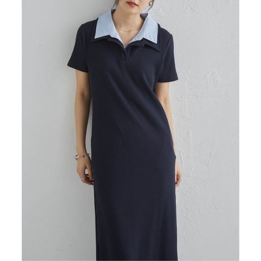 ダブルカラーリブワンピース