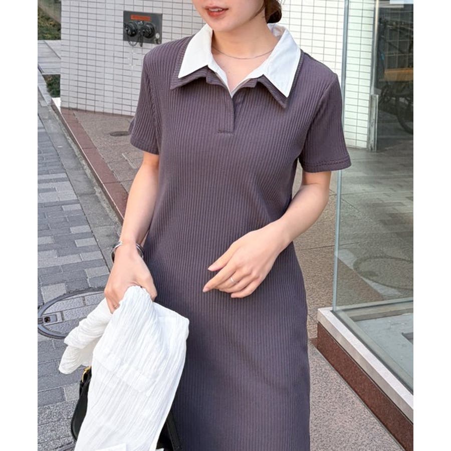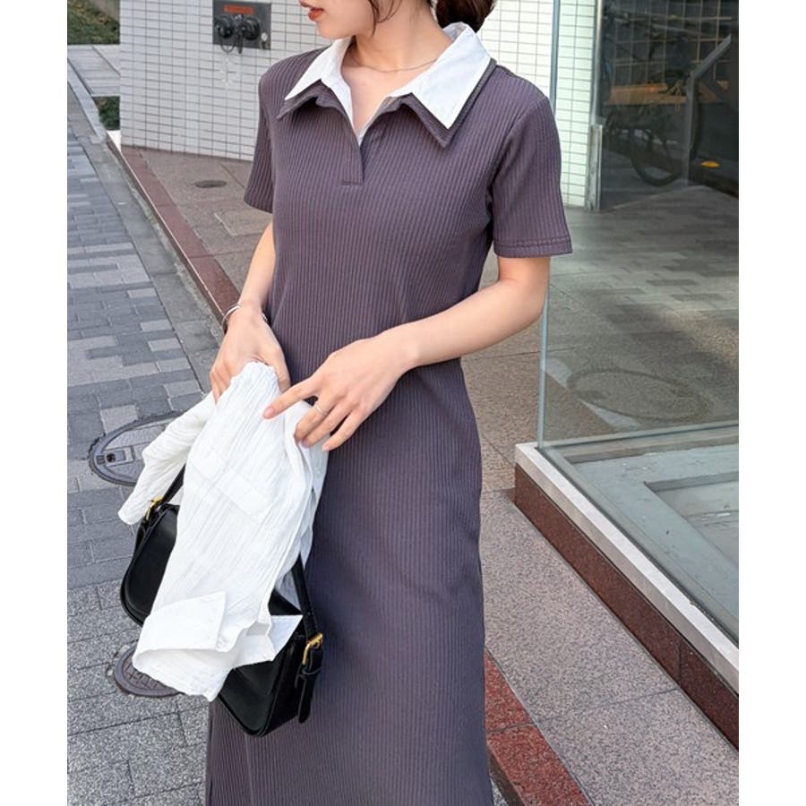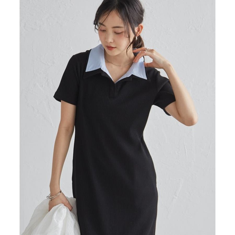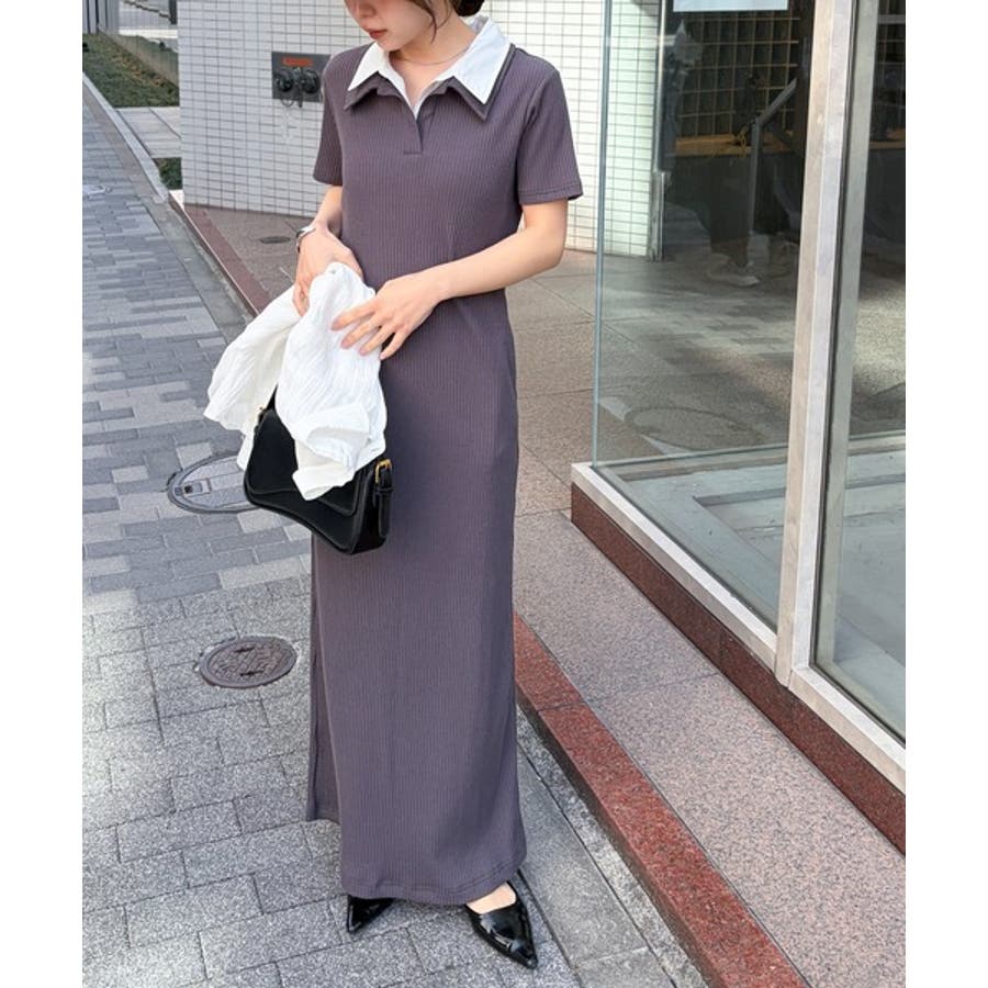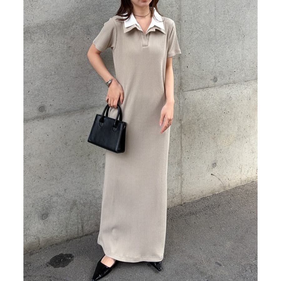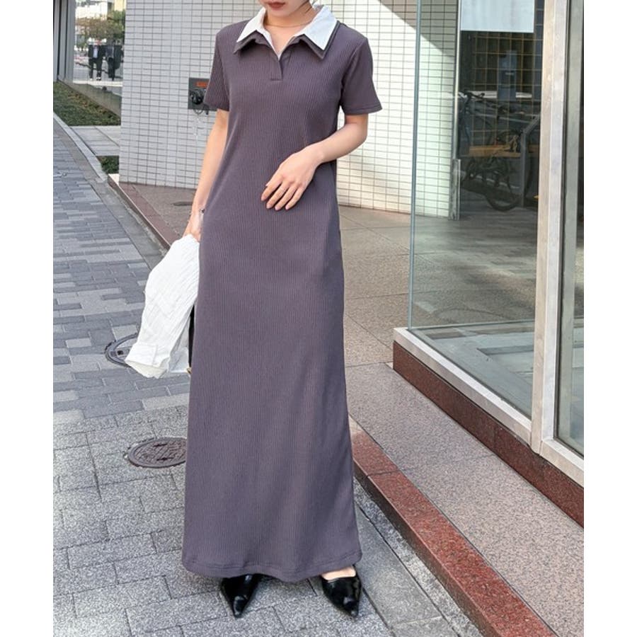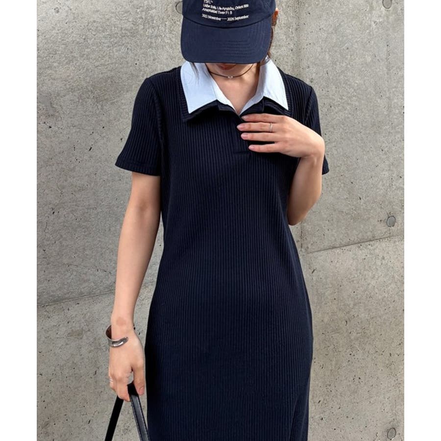 ダブルカラーリブワンピース
