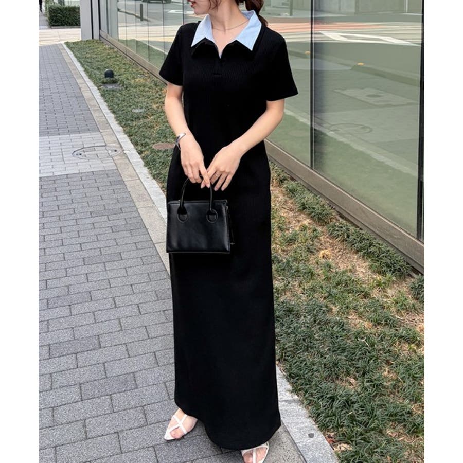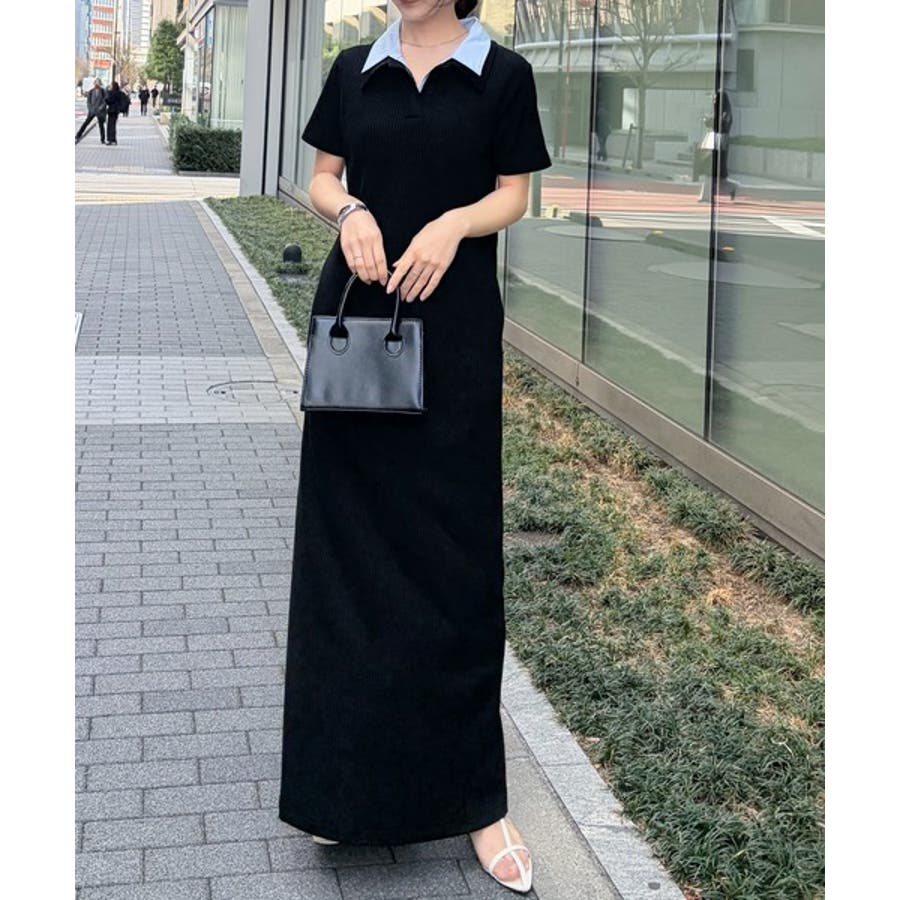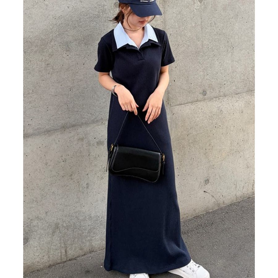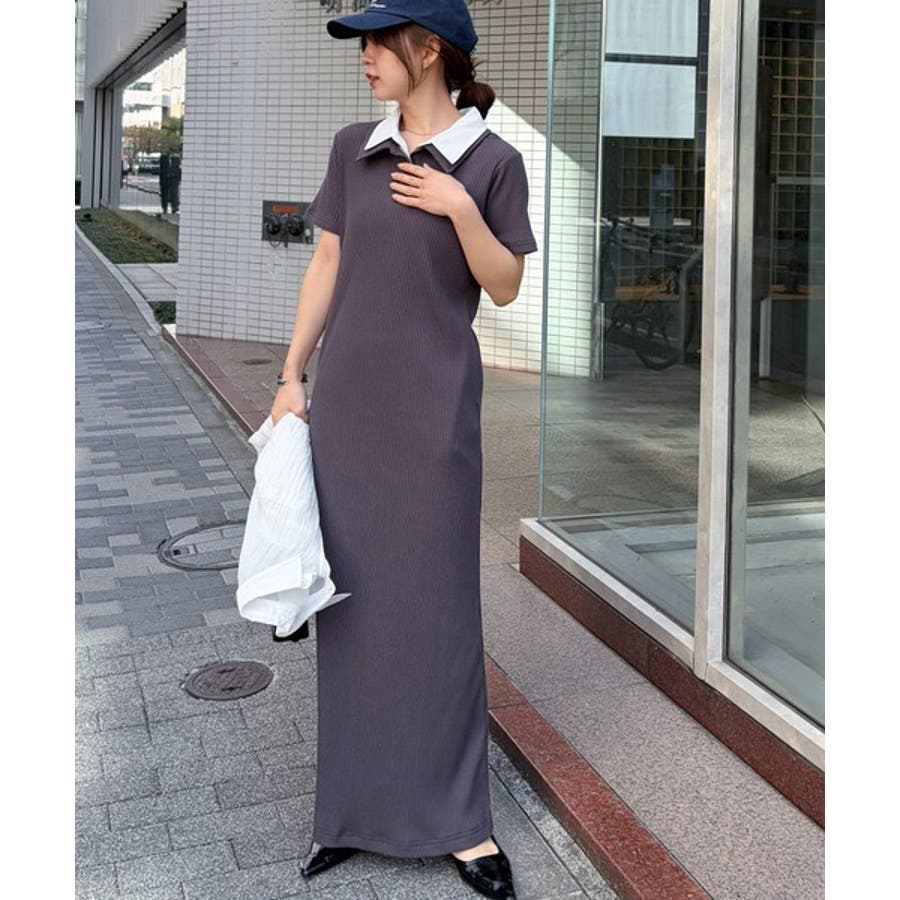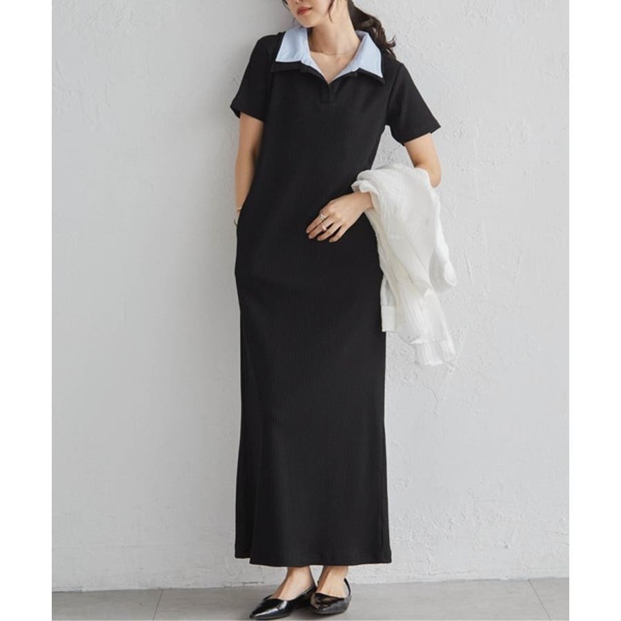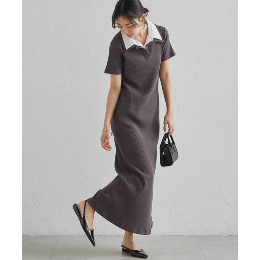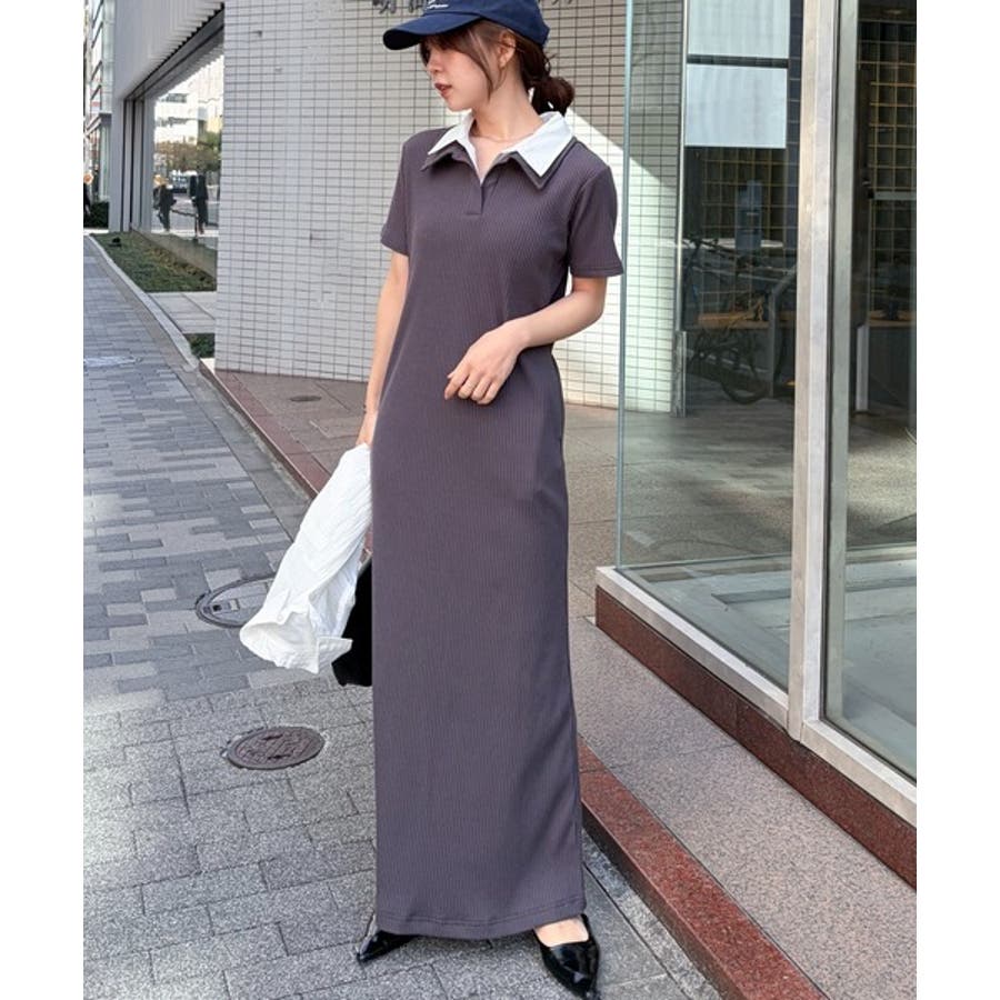ダブルカラーリブワンピース