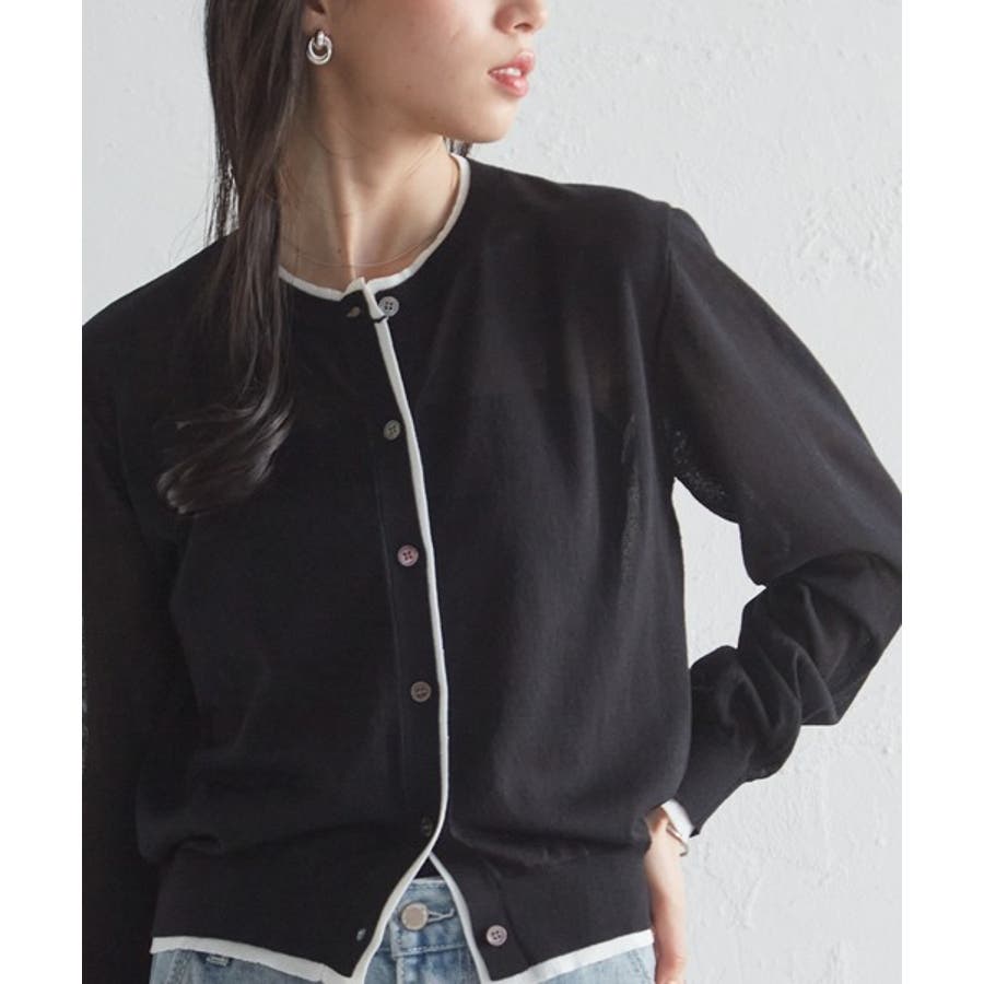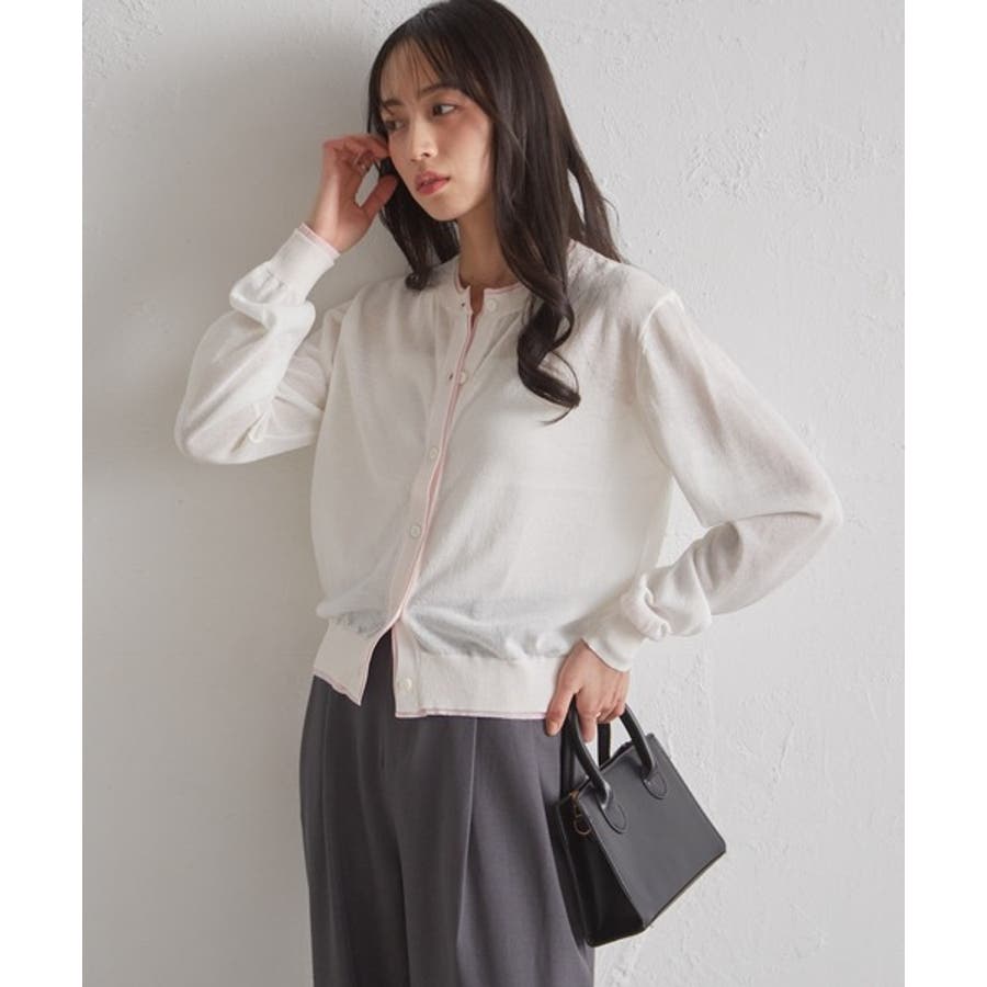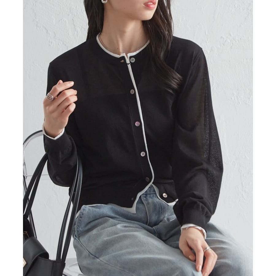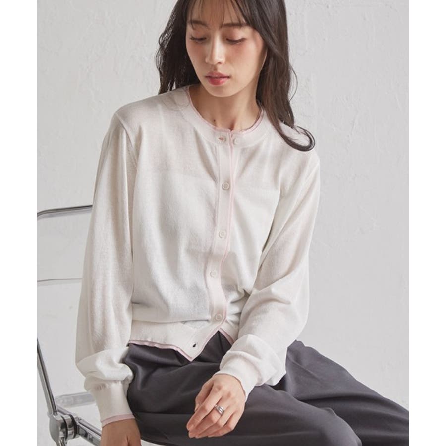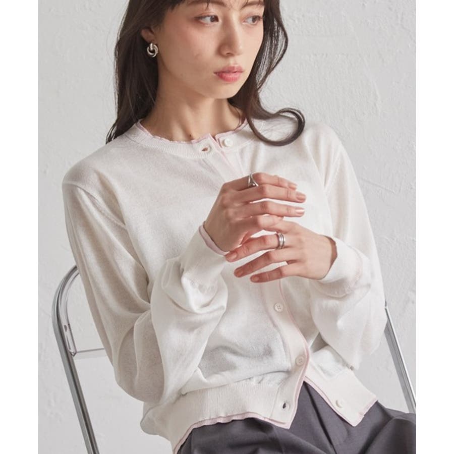 レイヤード風バイカラーシアーカーディガン