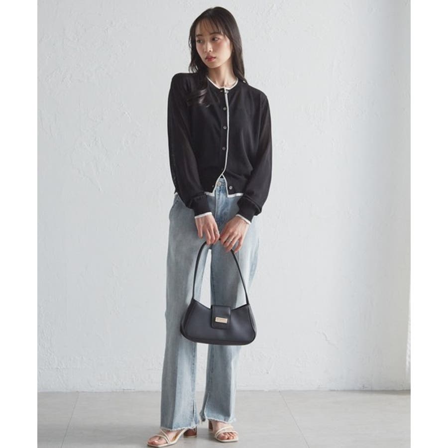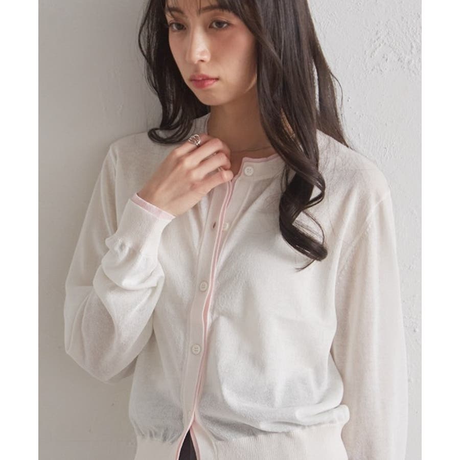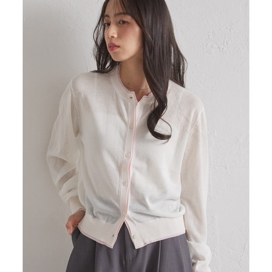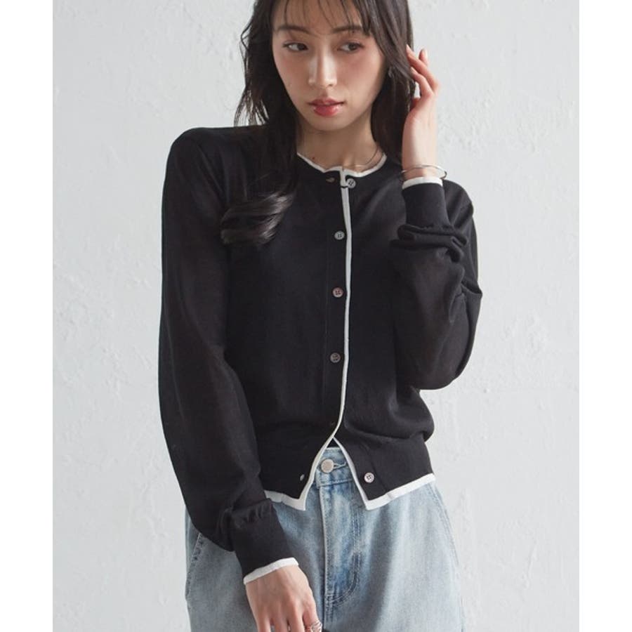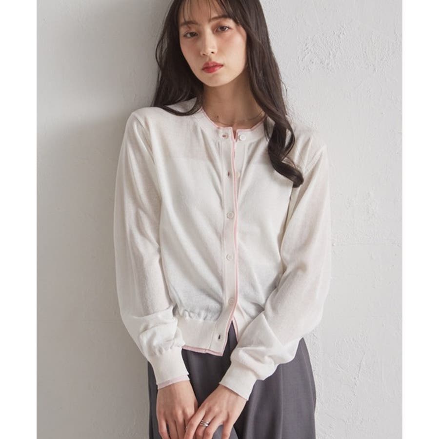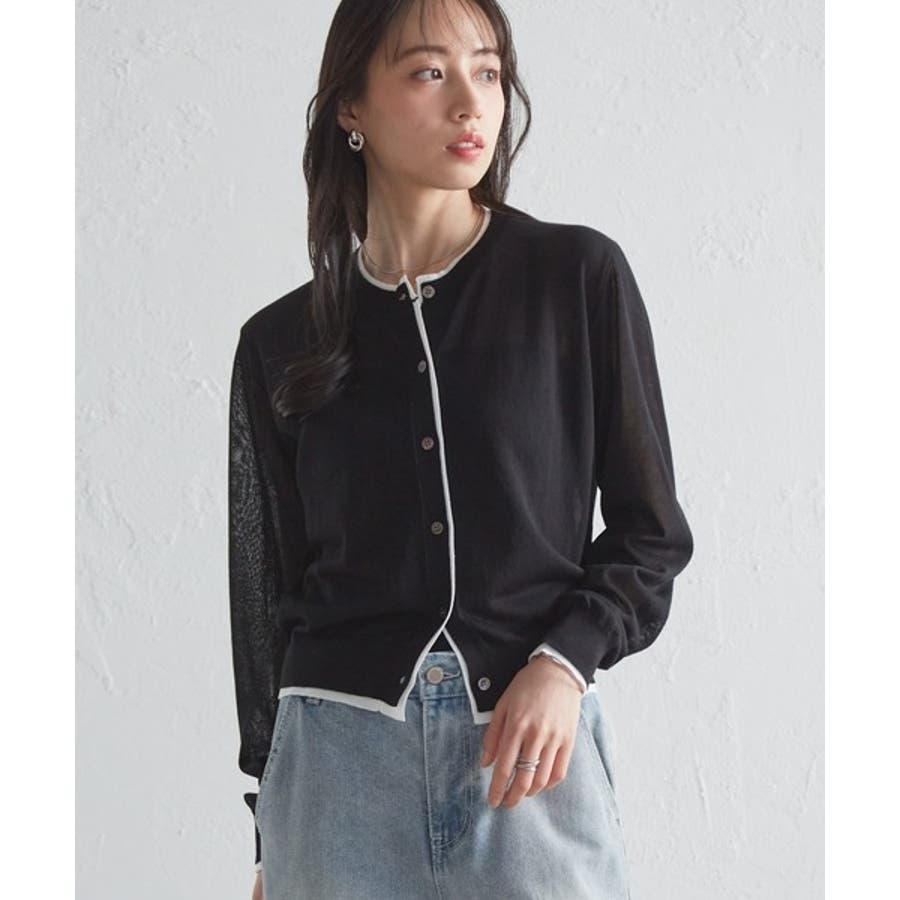 レイヤード風バイカラーシアーカーディガン