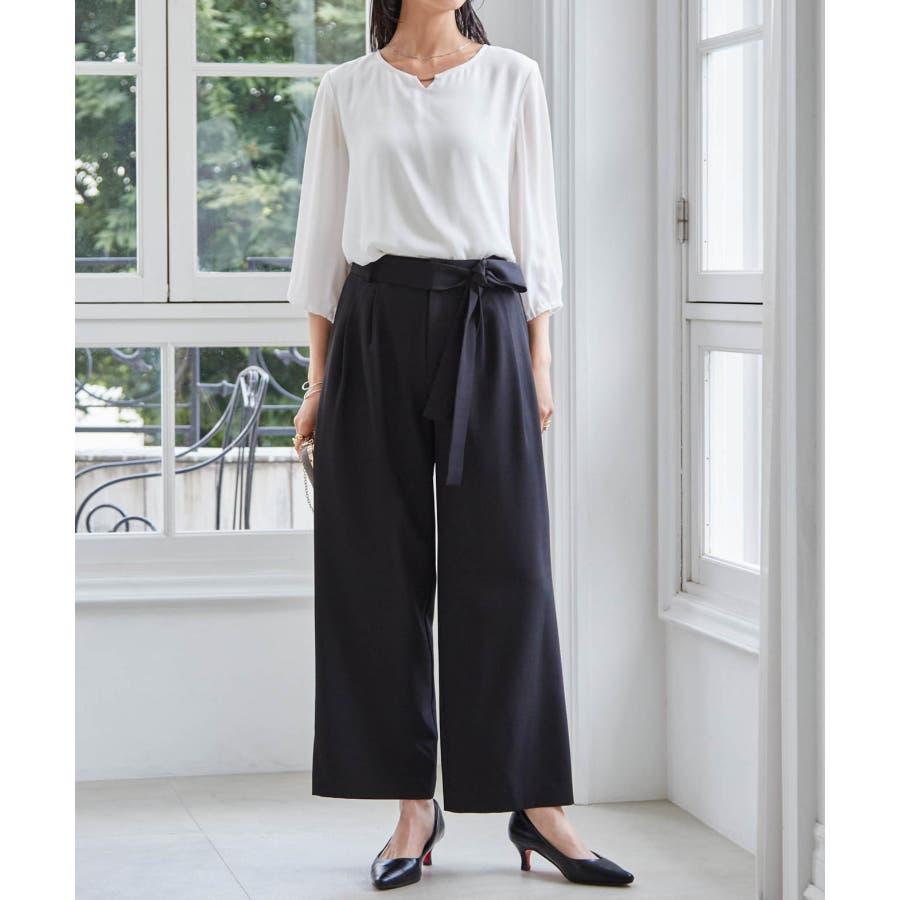 絶妙なシルエットの太すぎないワイドパンツで、こなれ感アップ。