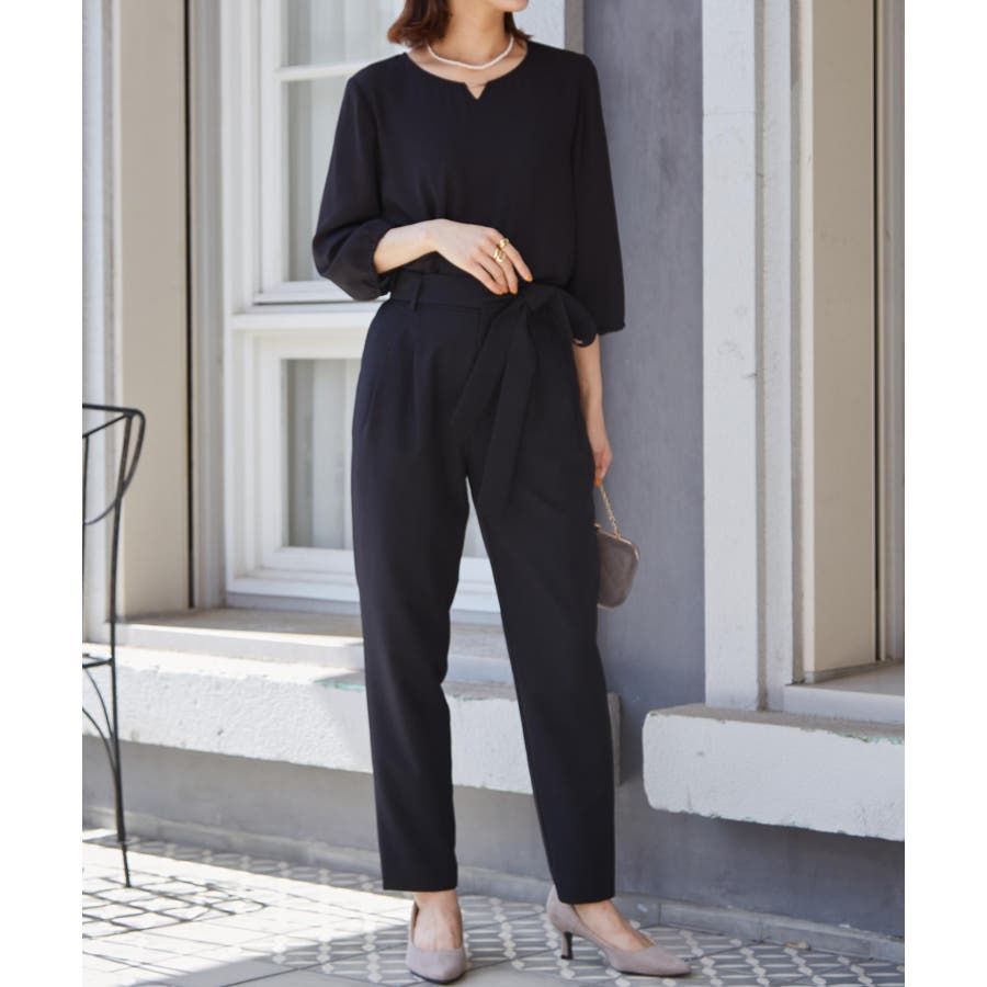 裾に向かって細くなる王道テーパードは、美脚見えシルエット。